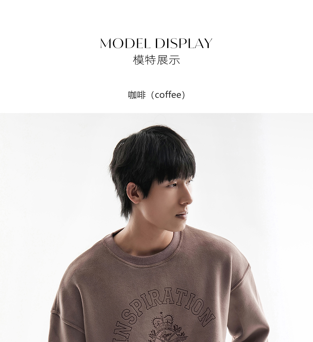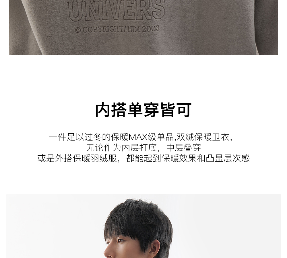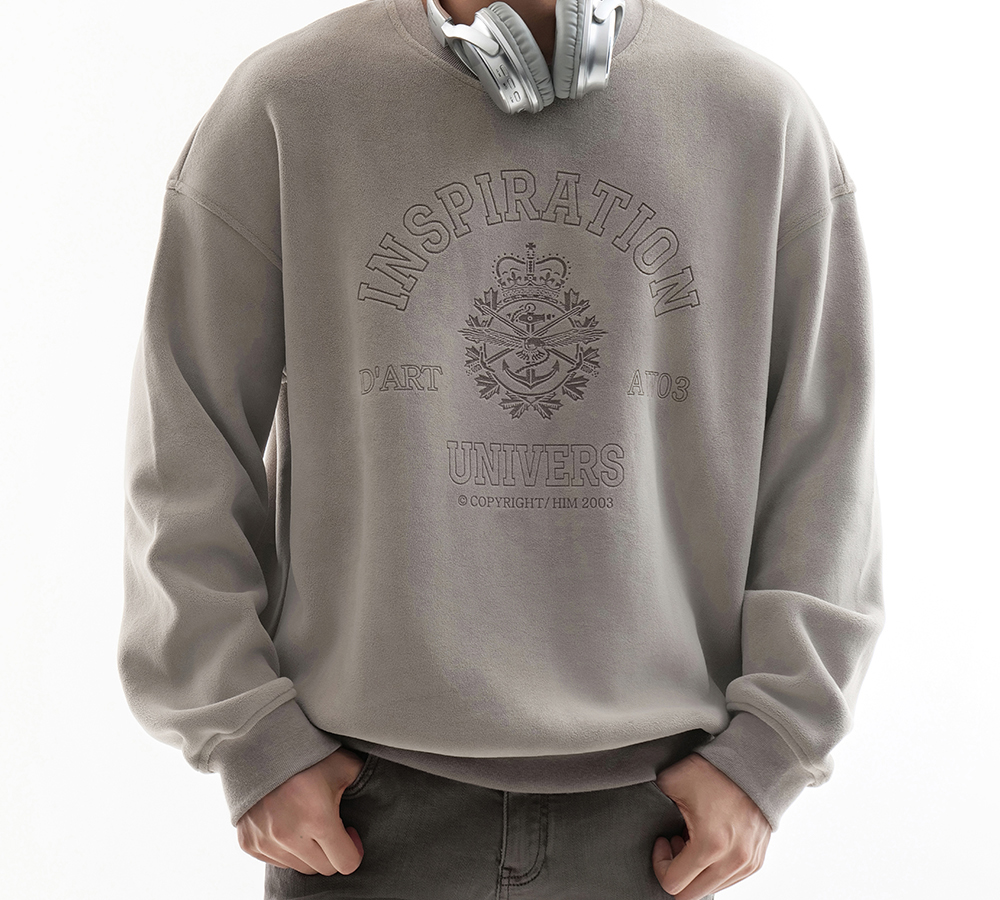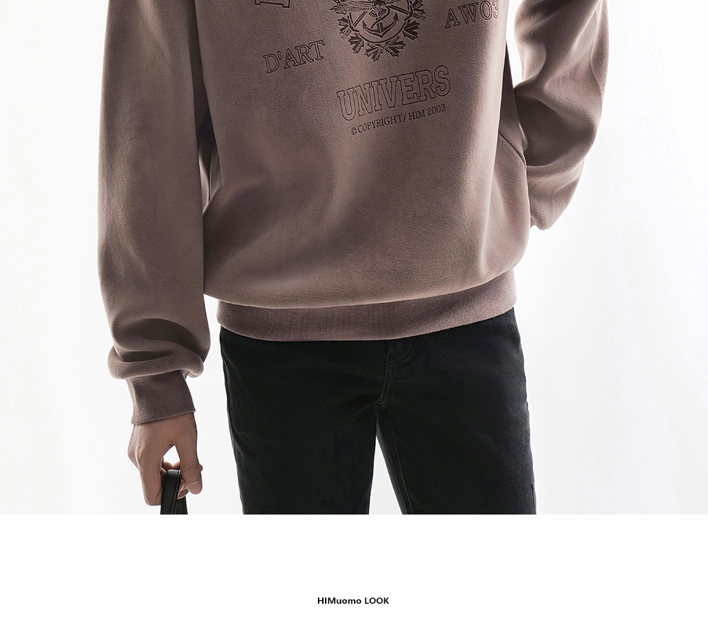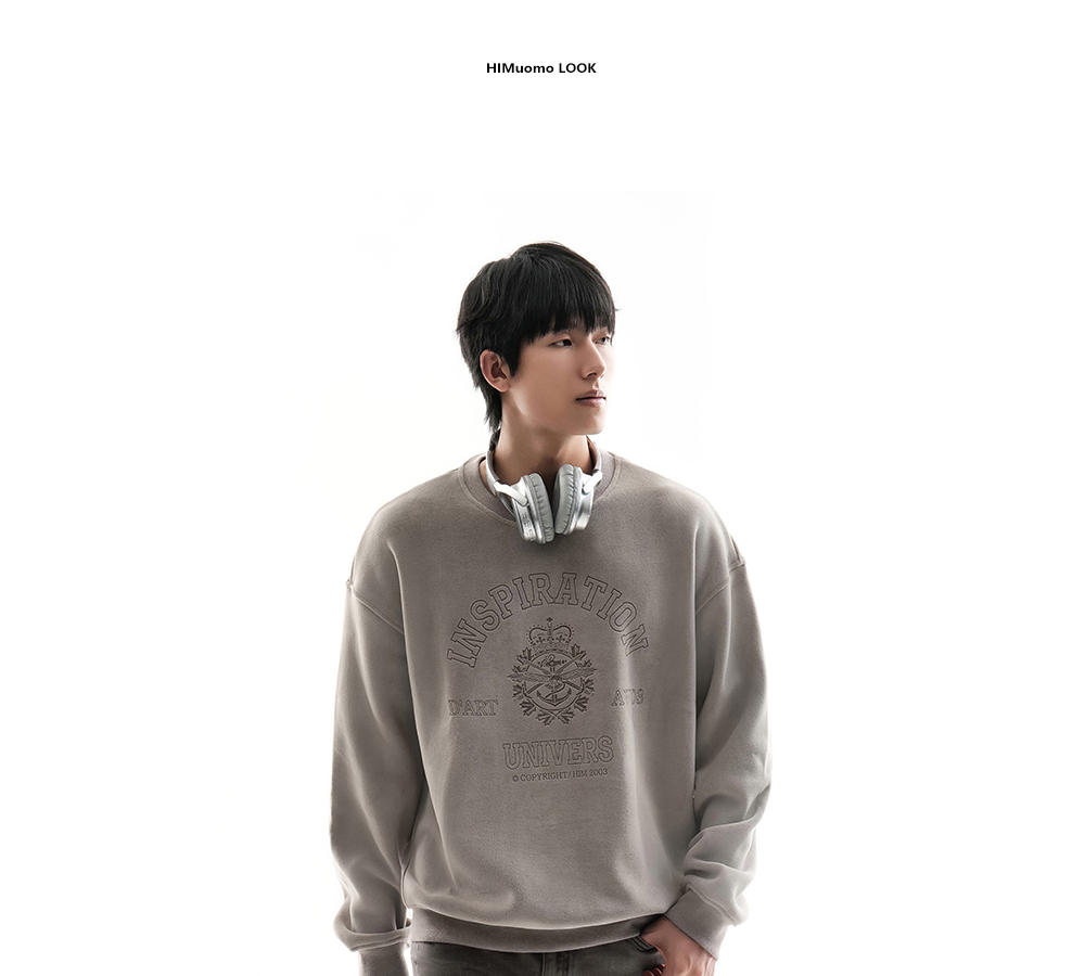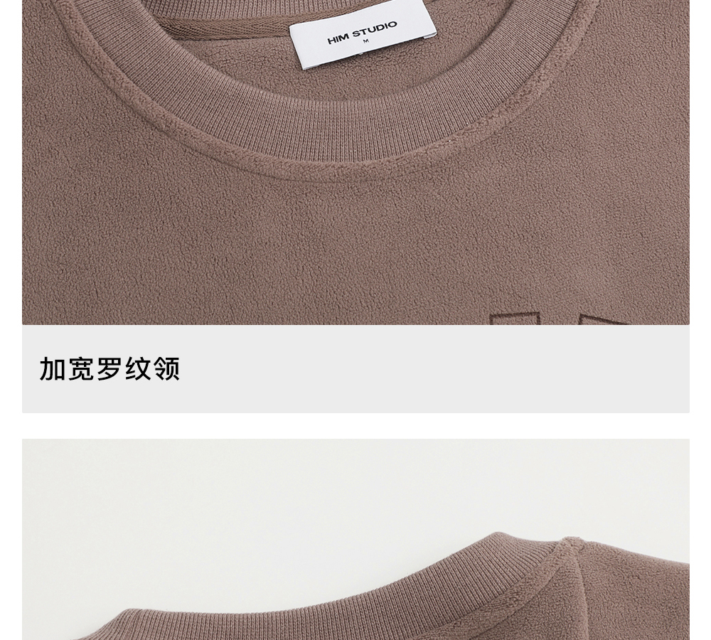 HIM漢崇 定制皮标压花卫衣男休闲双面针织圆领套头上衣 2025秋季