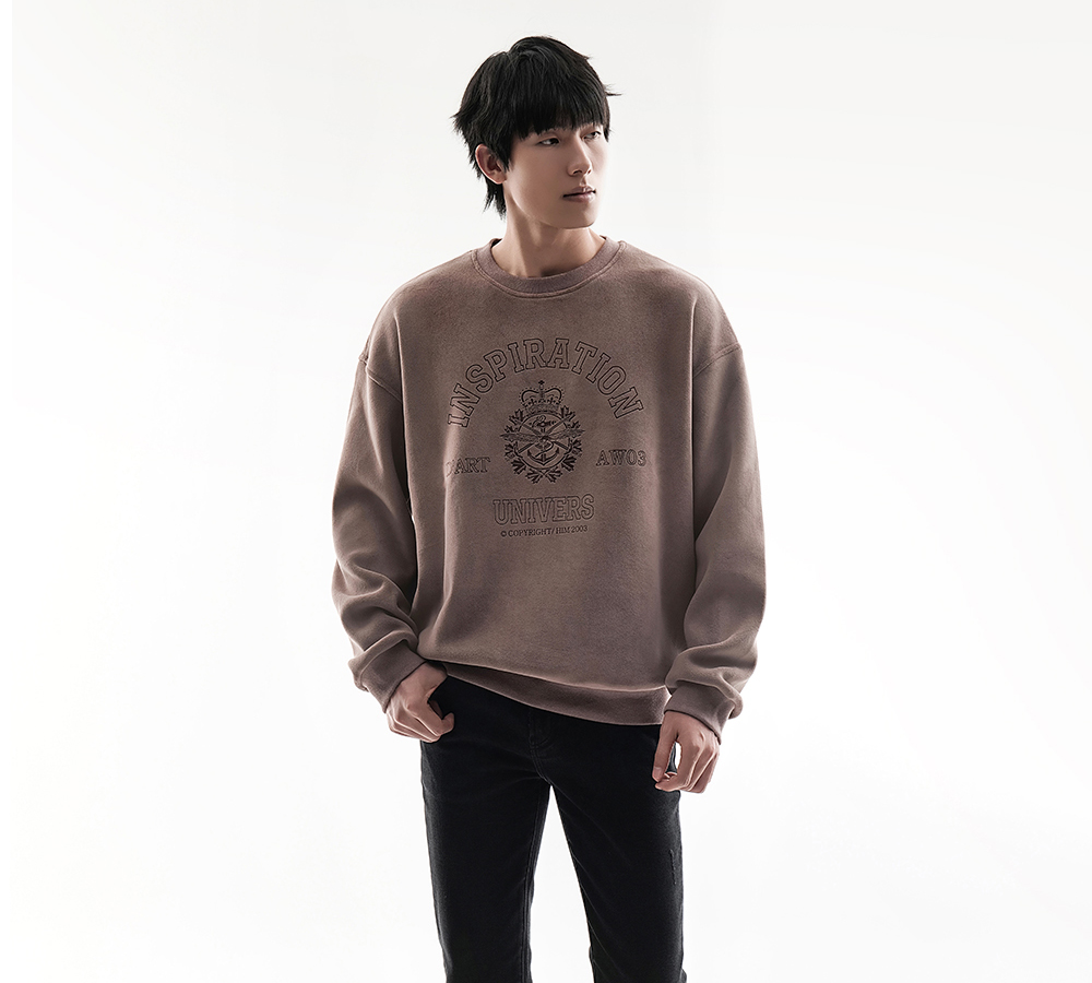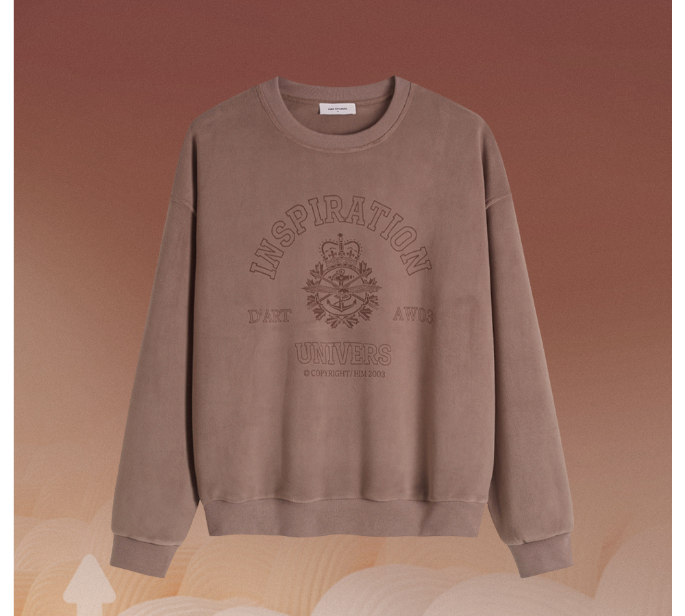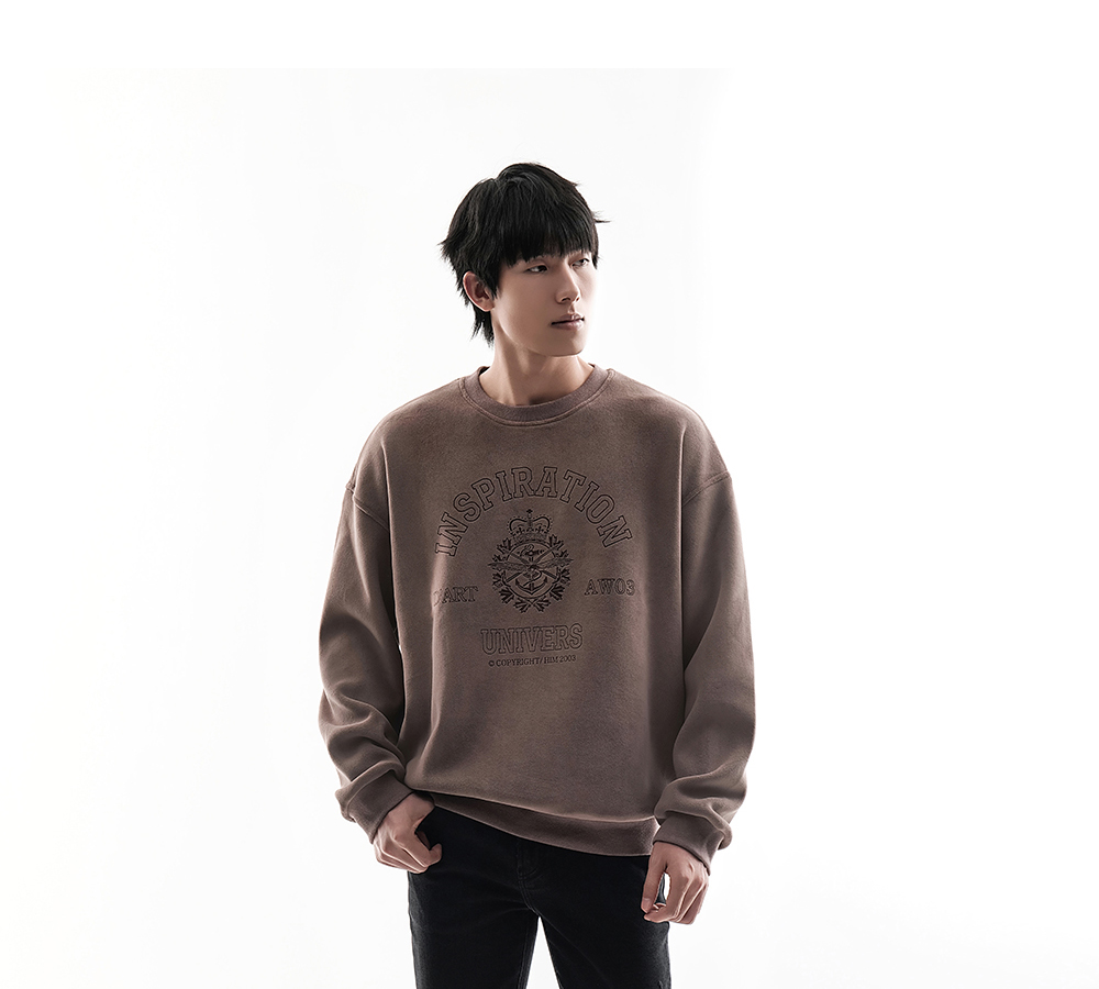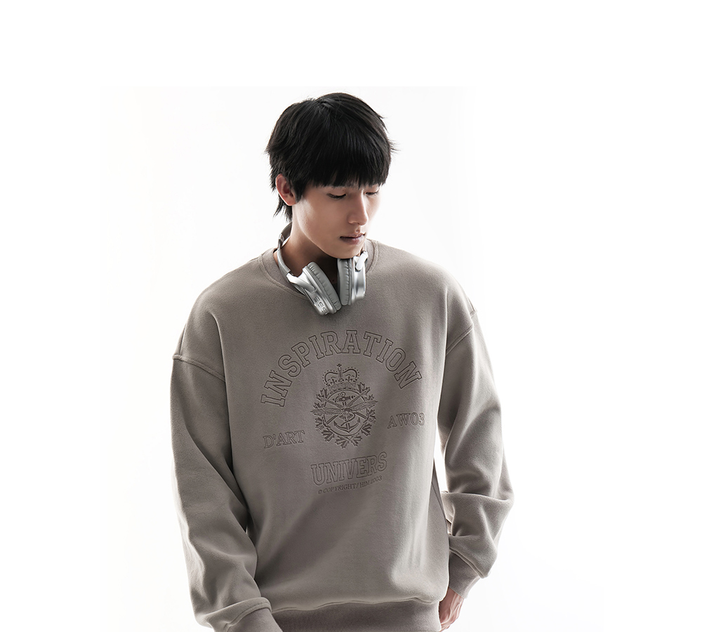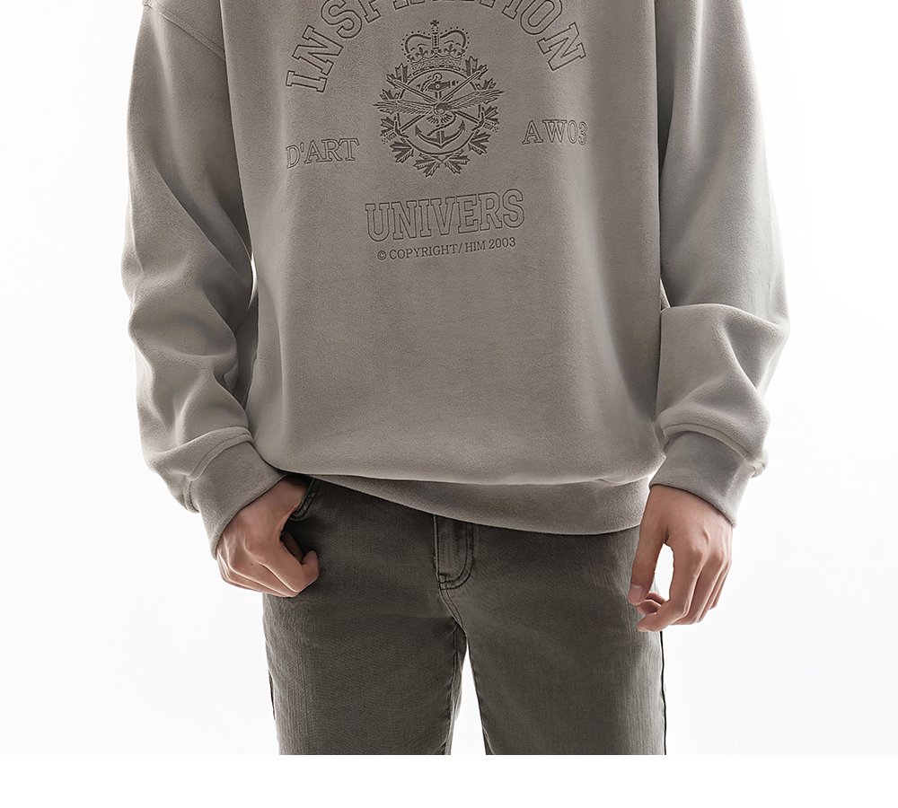 HIM漢崇 定制皮标压花卫衣男休闲双面针织圆领套头上衣 2025秋季