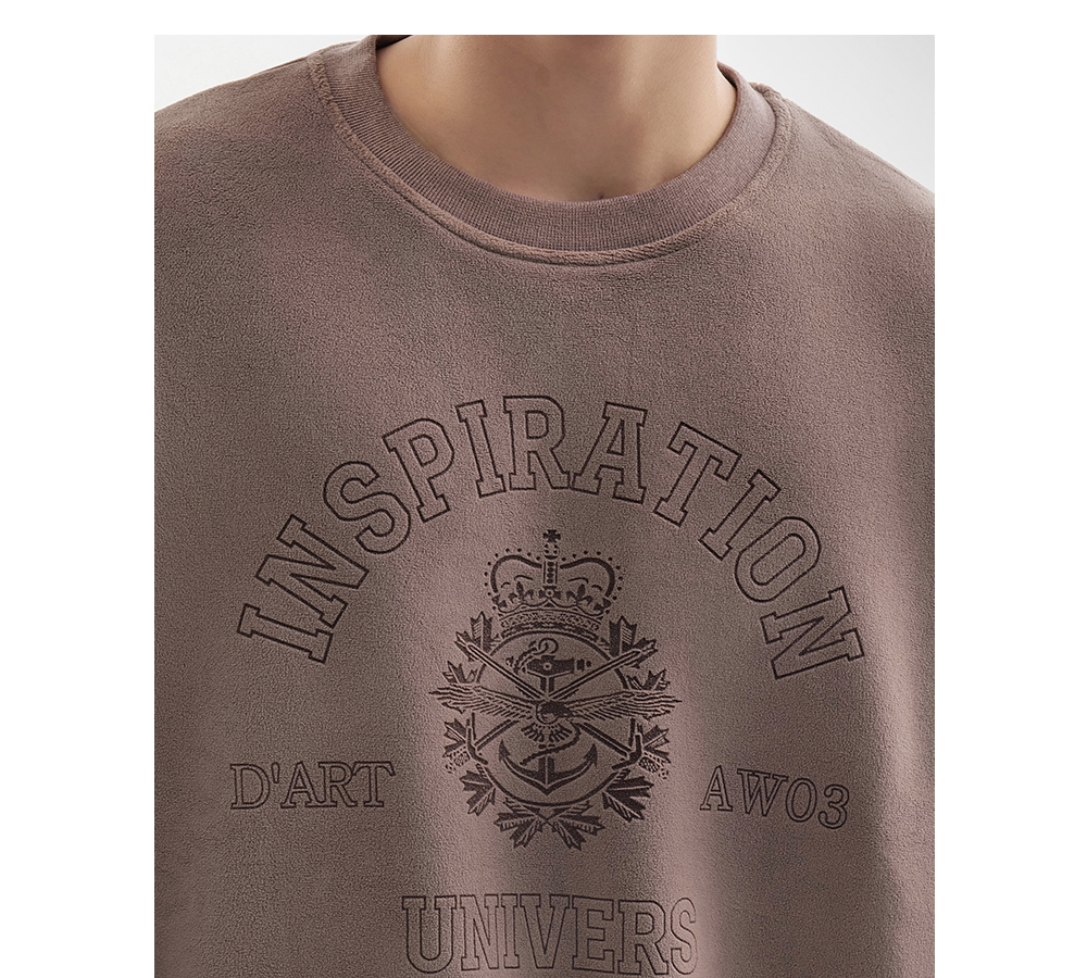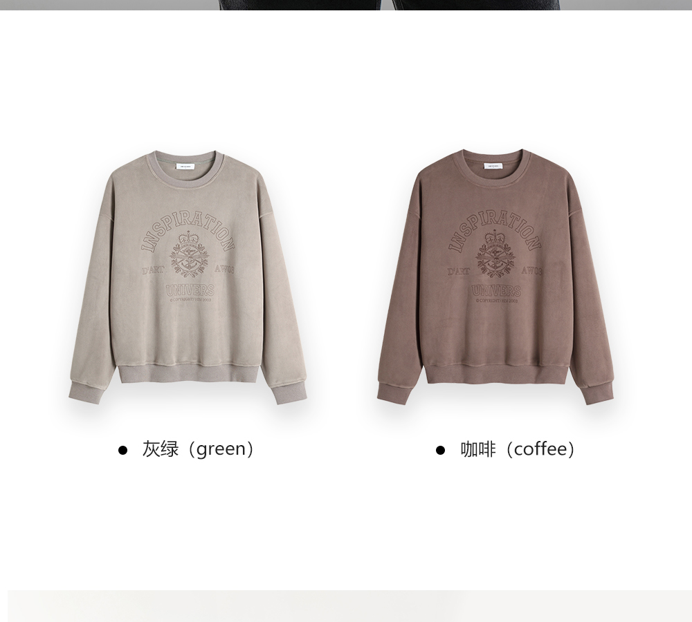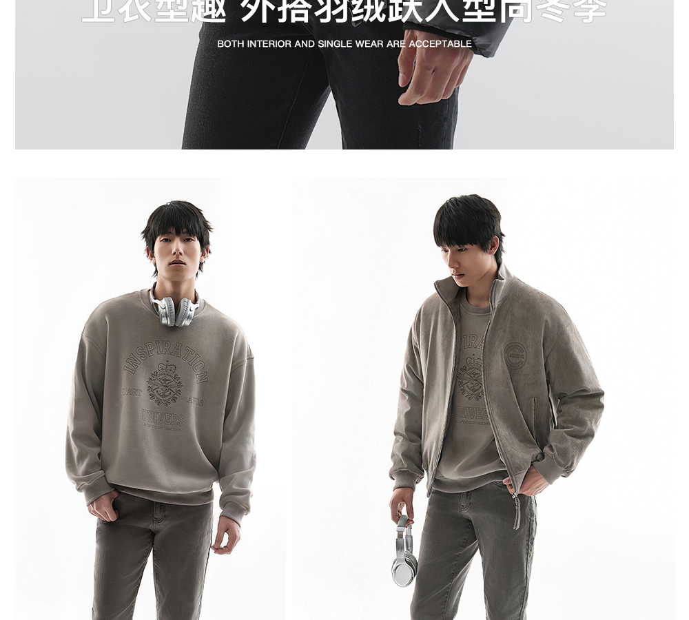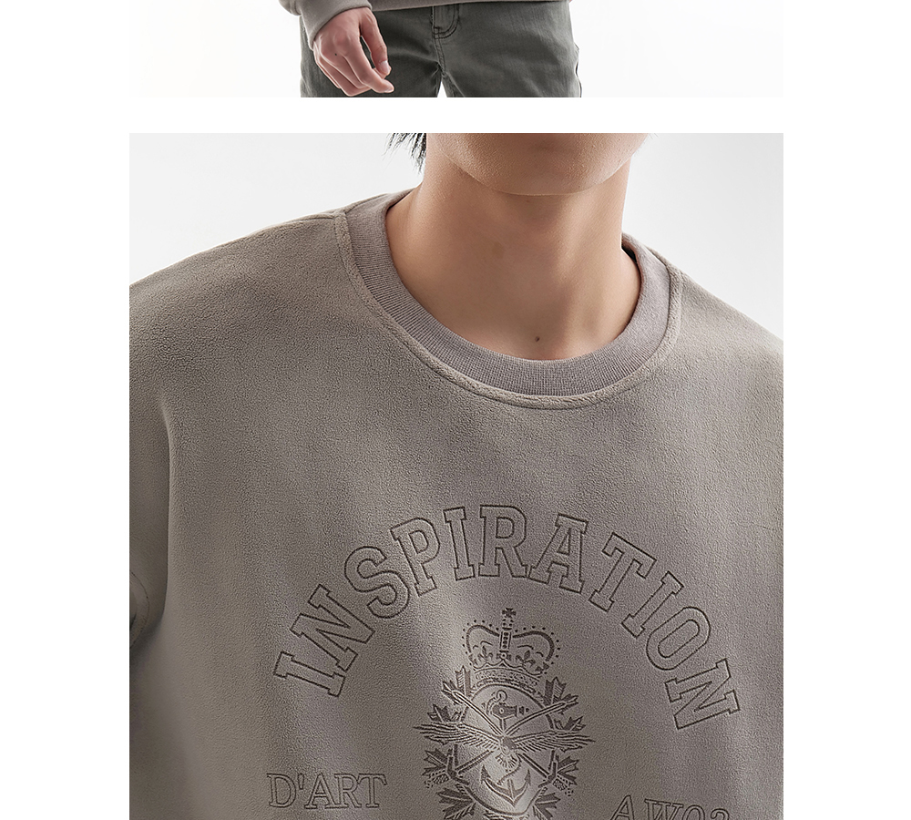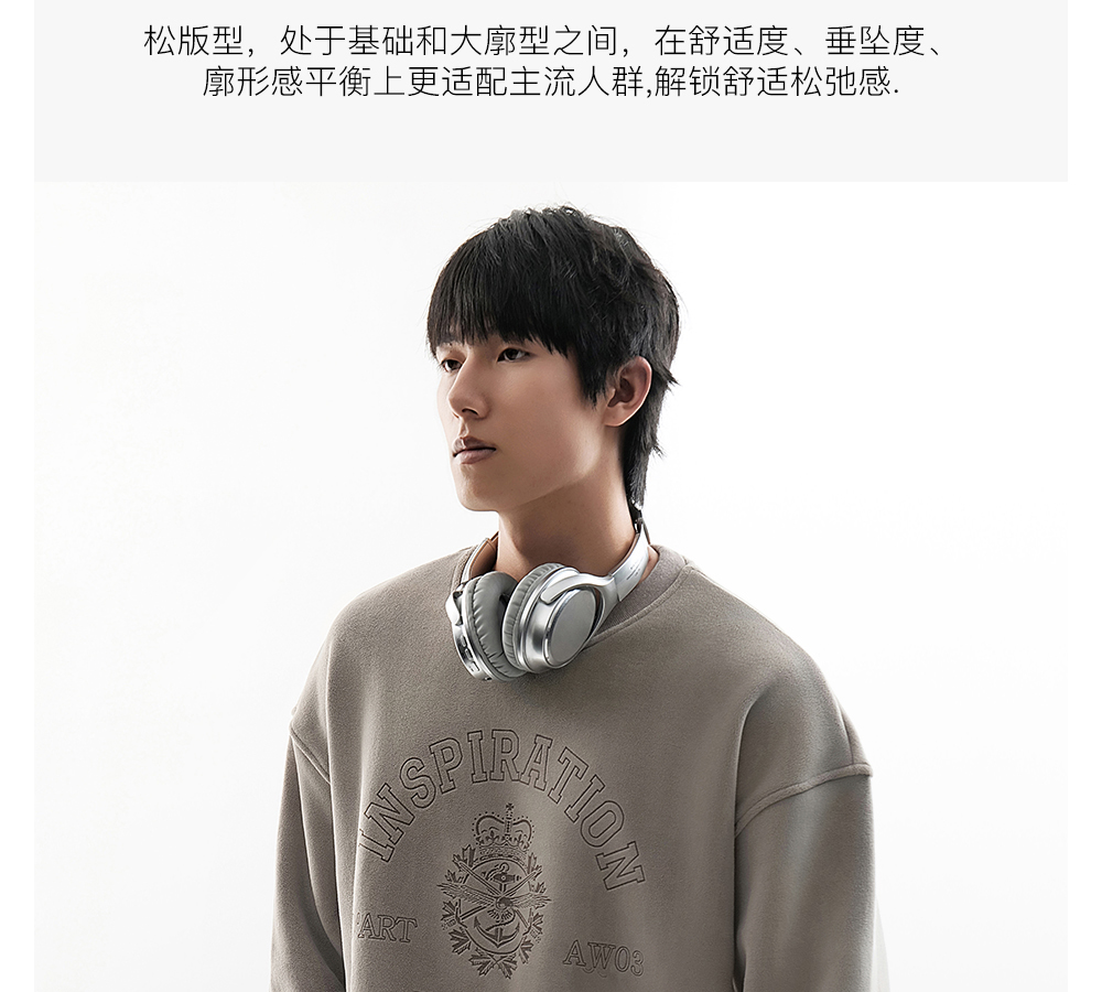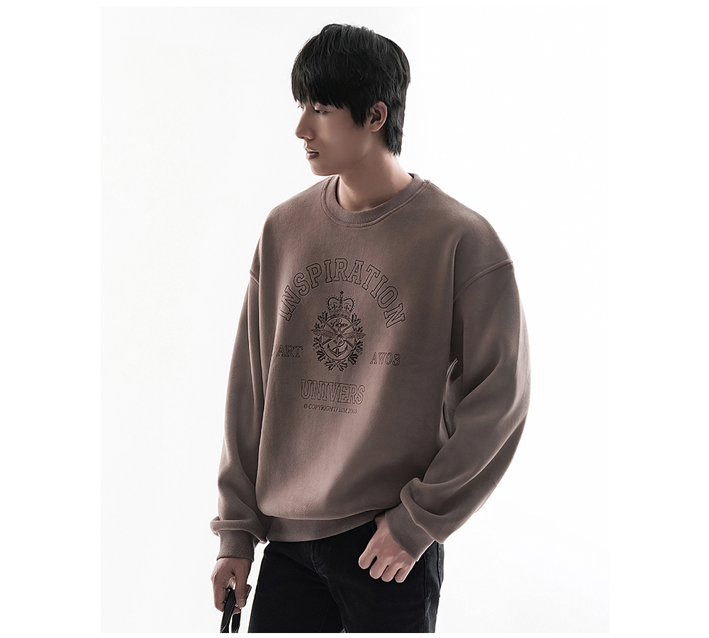 HIM漢崇 定制皮标压花卫衣男休闲双面针织圆领套头上衣 2025秋季