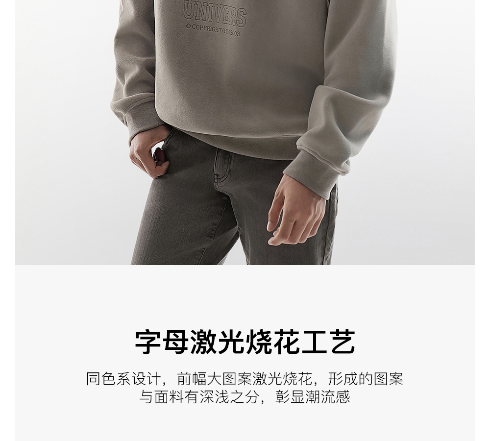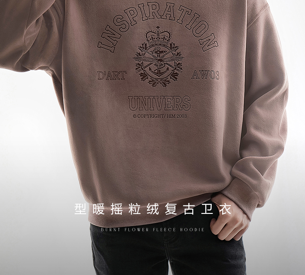HIM漢崇 云感软糯摇粒绒圆领卫衣男激光字母烧花休闲宽松2025冬季