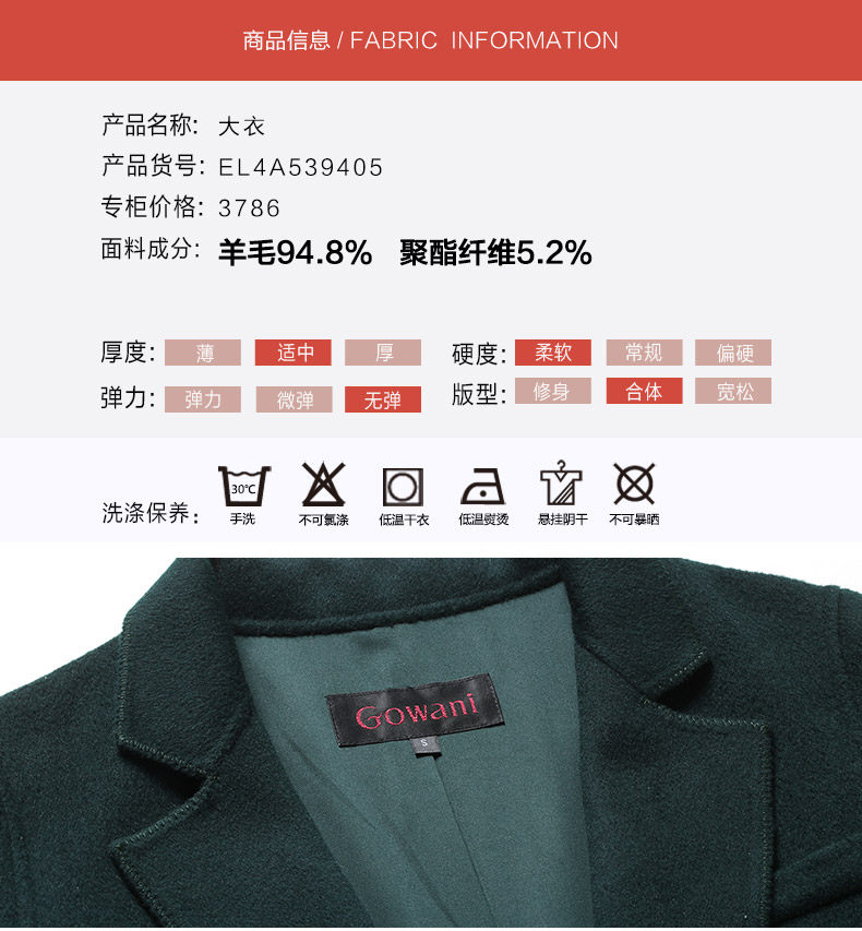 【100%绵羊毛】乔万尼冬季高级感100绵羊毛商务休闲设计感保暖抗寒大衣ES4A348