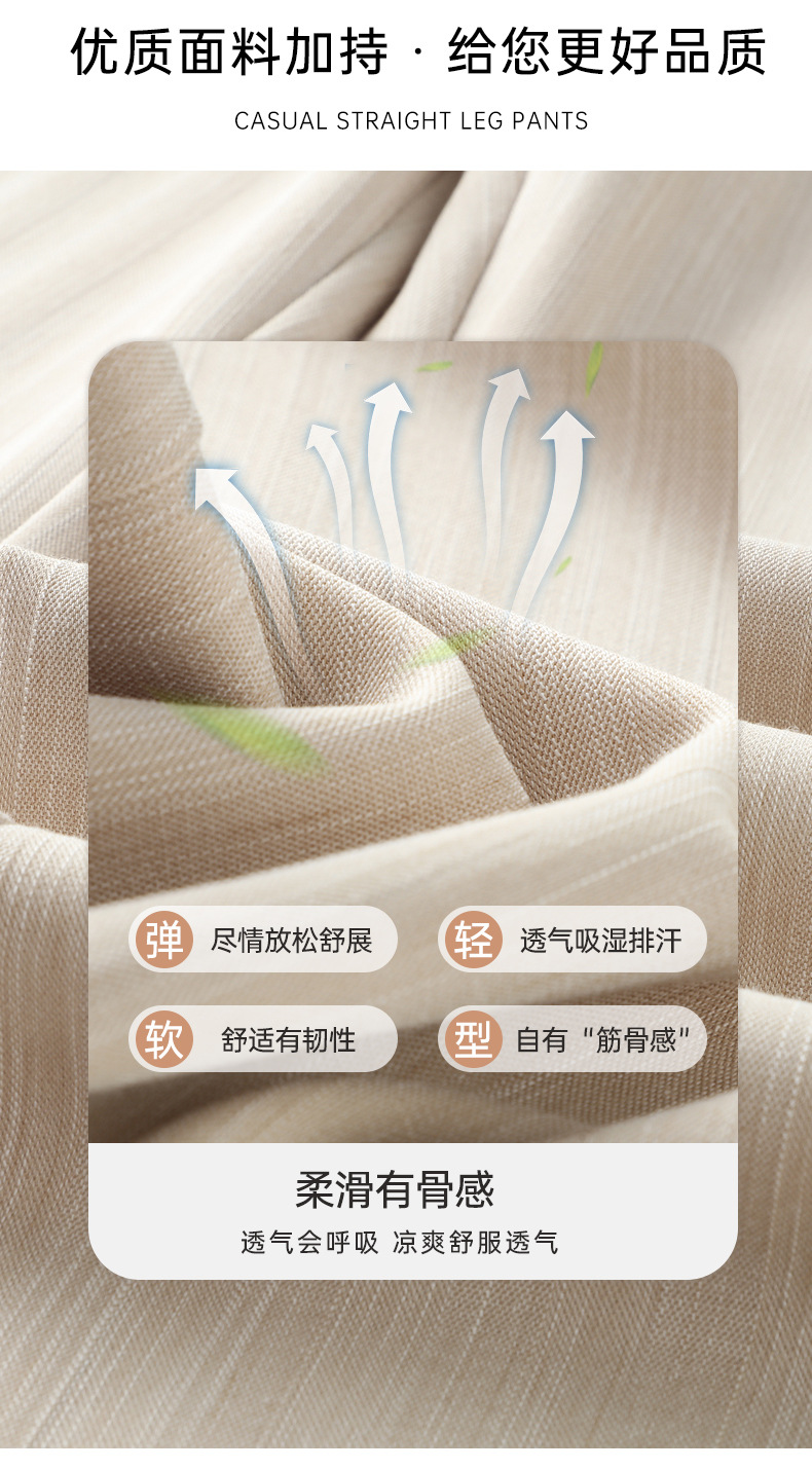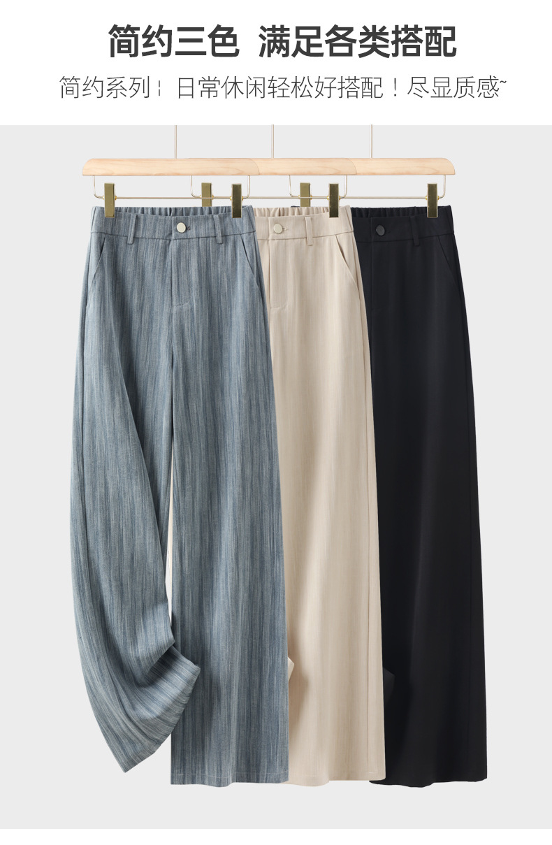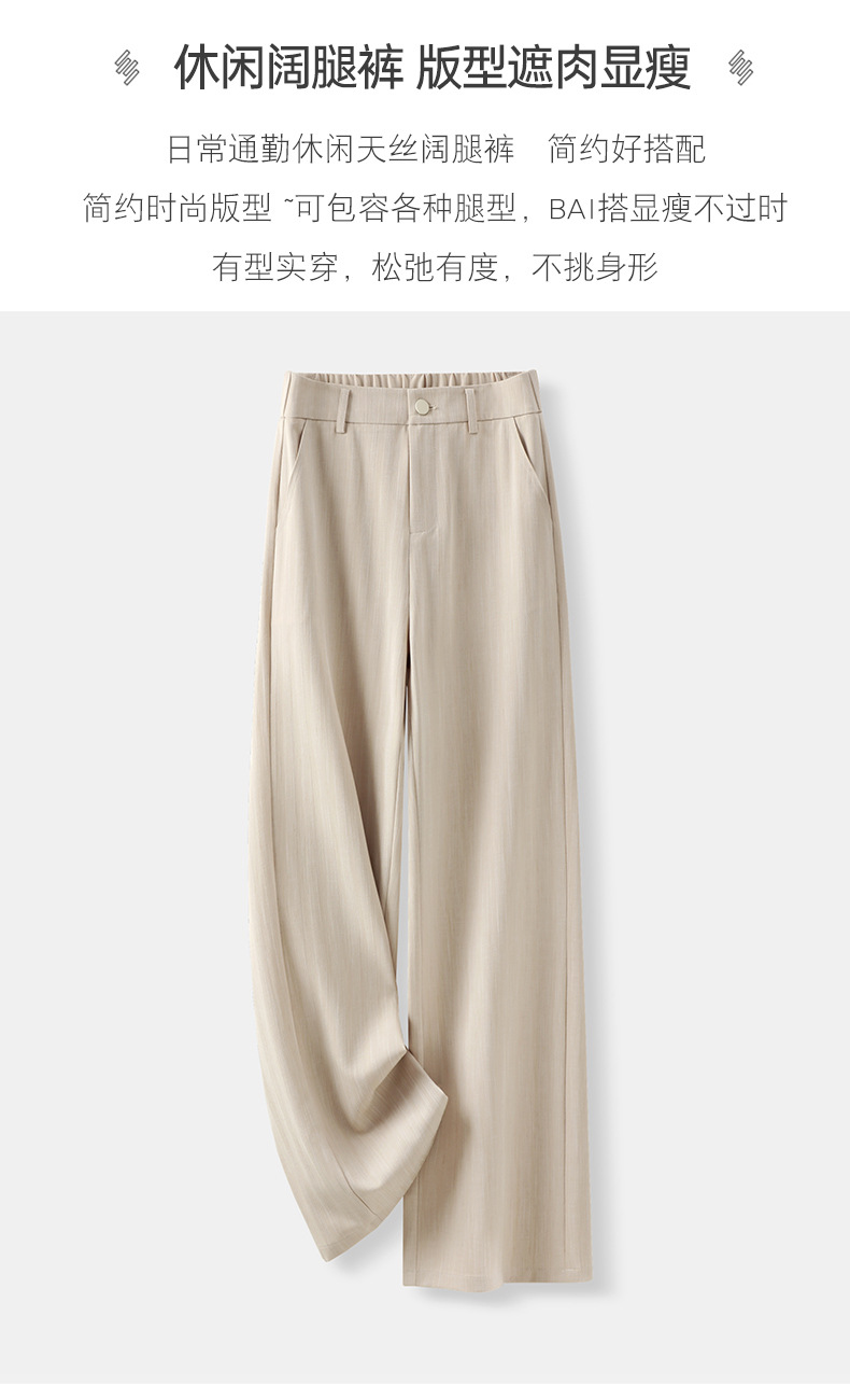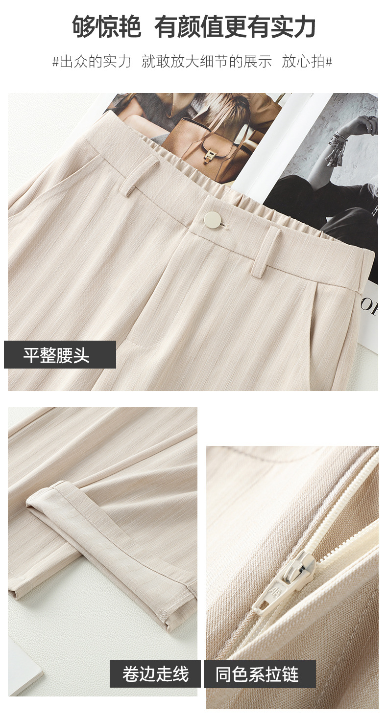 HSS2866 麻感天丝裤休闲裤女2024夏季新款高腰薄款宽松显瘦窄版阔腿长裤子