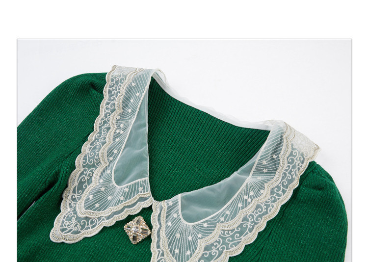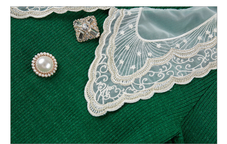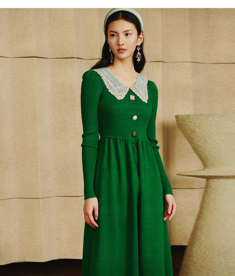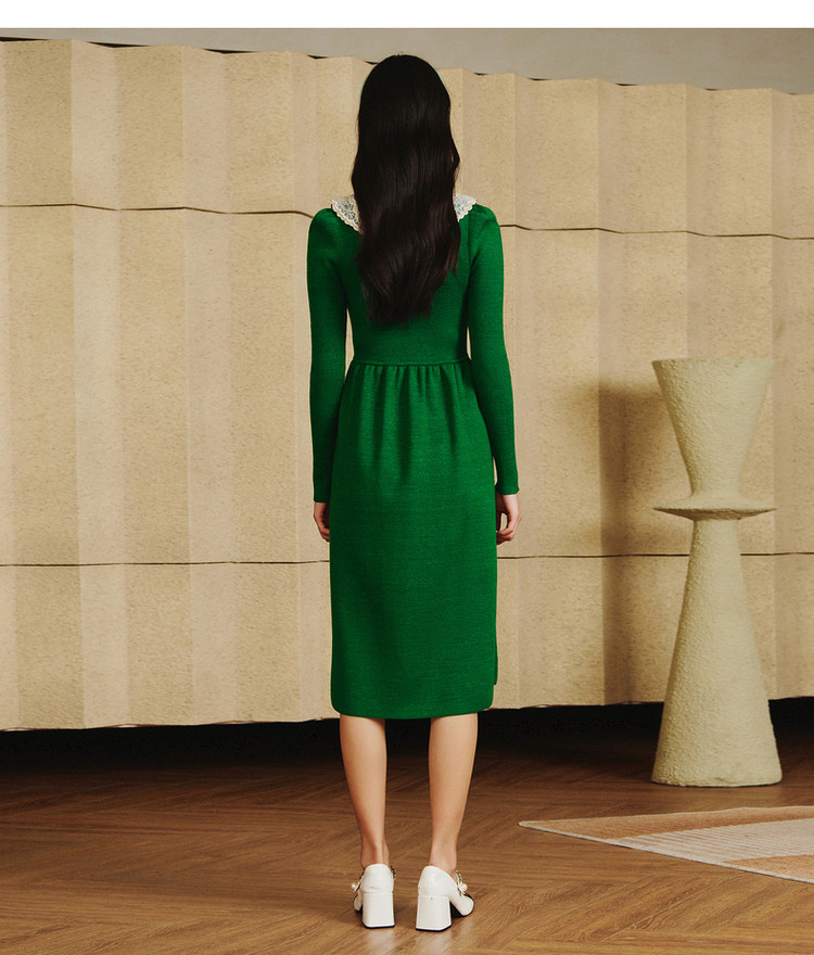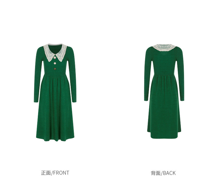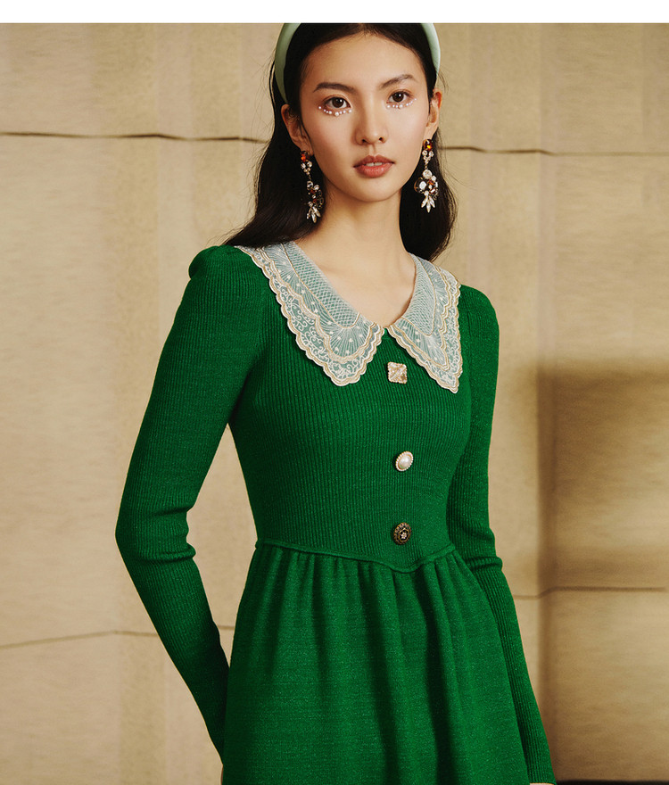 法式复古刺绣领松石绿毛针织连衣裙秋季裙子