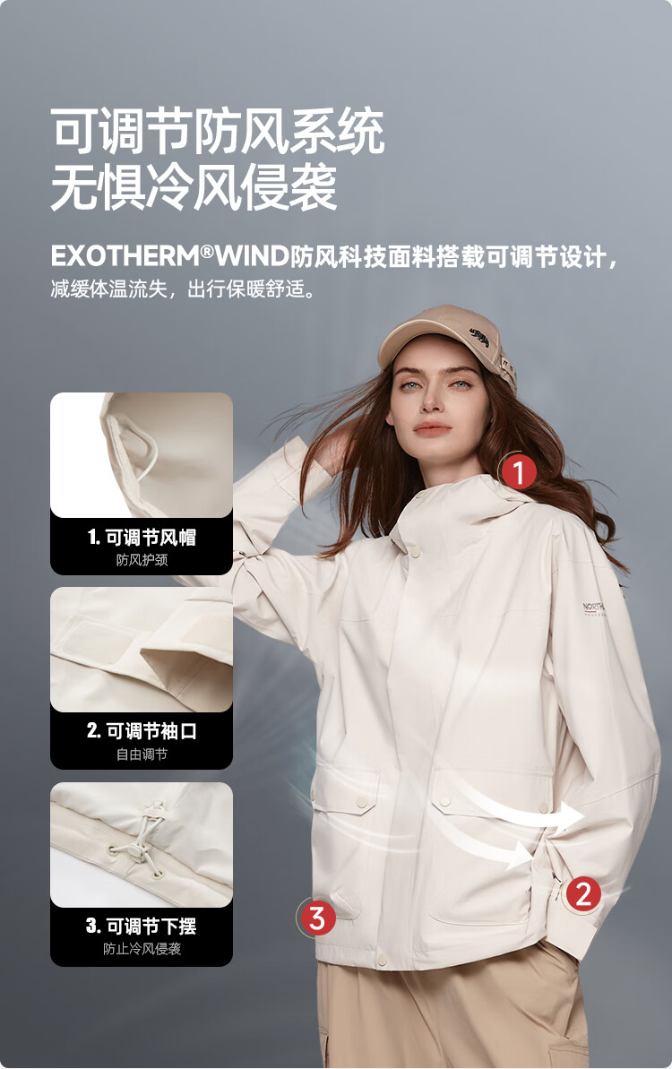 诺诗兰 洛文女式冲锋衣 可调节风帽、袖口与下摆,锁住温度,抵御冷风。舒适版型与隐藏式帽兜,兼顾美观与实用,无论日常通勤还是户外旅行,都能全天候干爽守护 NWJET2105E