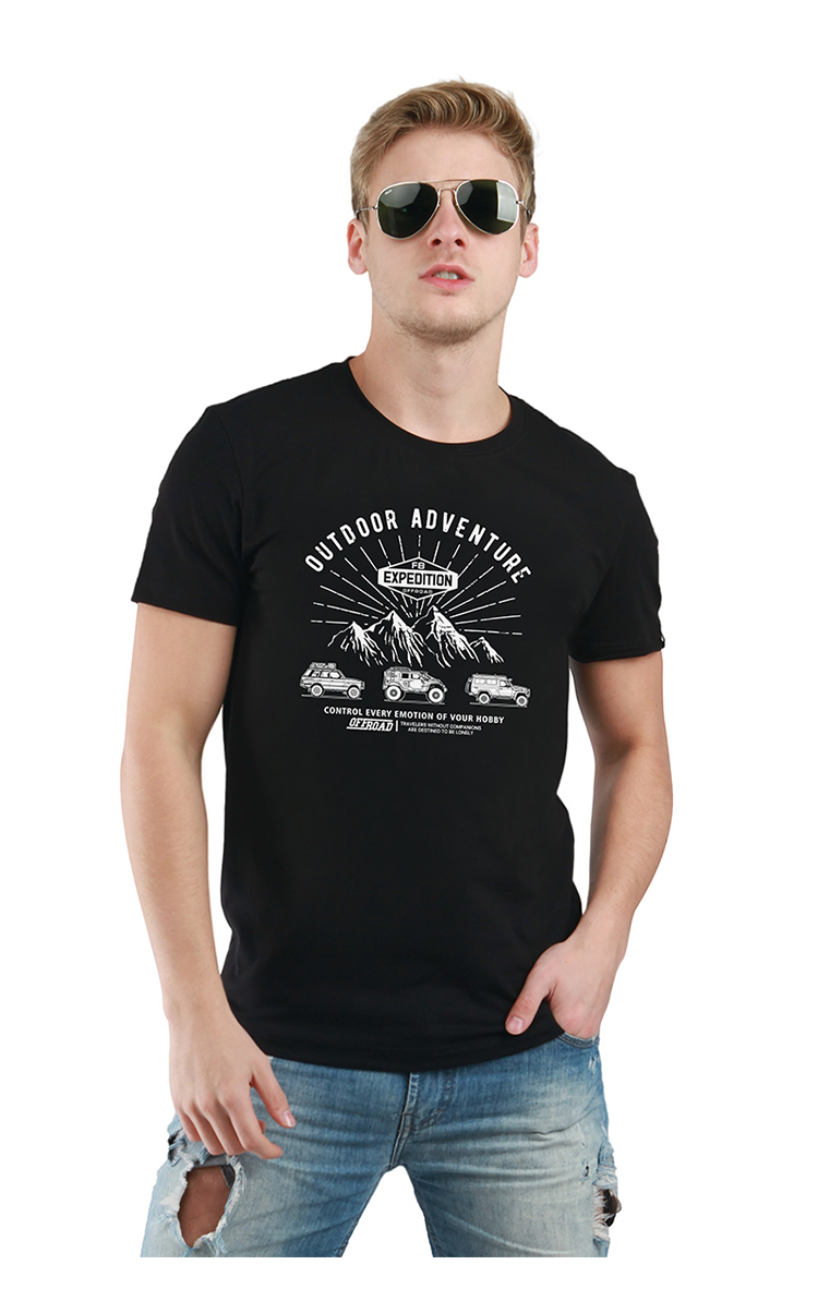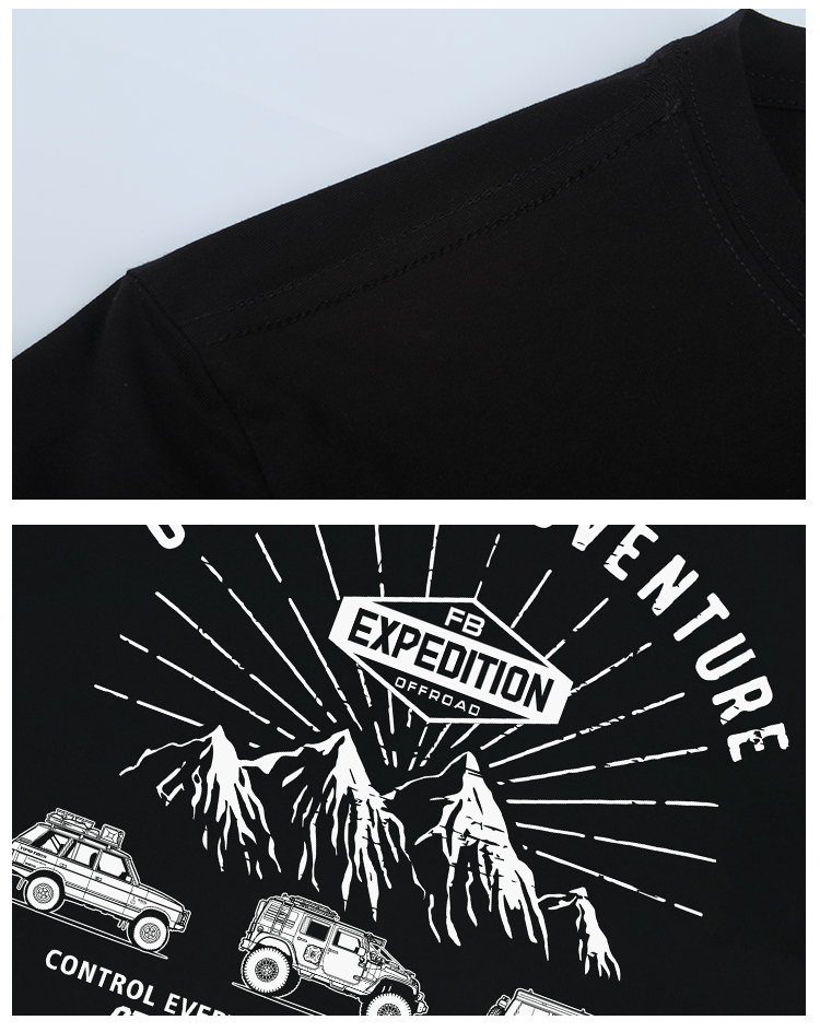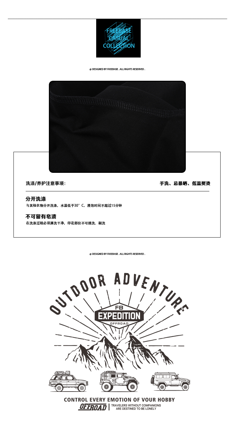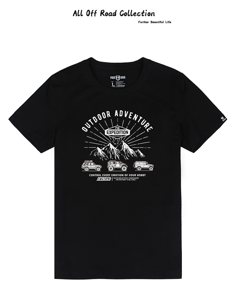 自由基地简约美式复古越野户外印花短袖T恤夏季男女通款合体圆领T NMT-1878