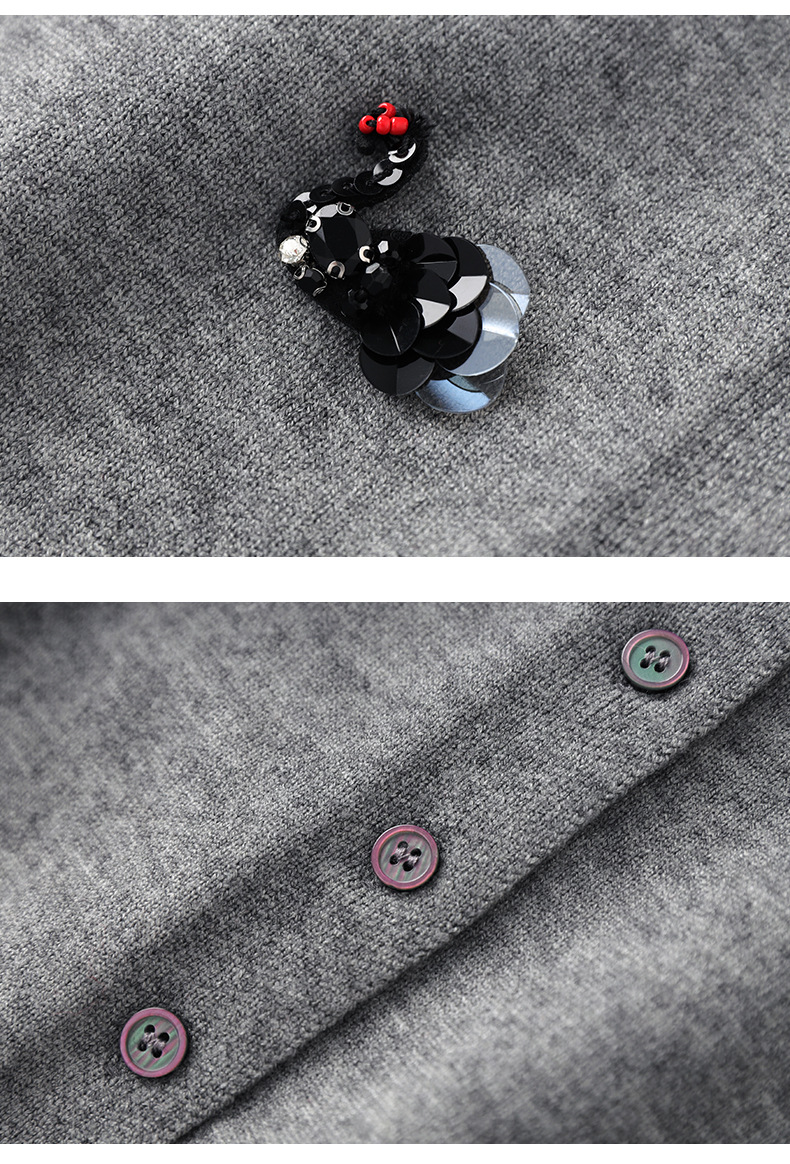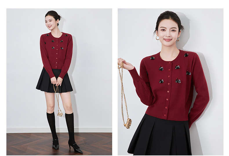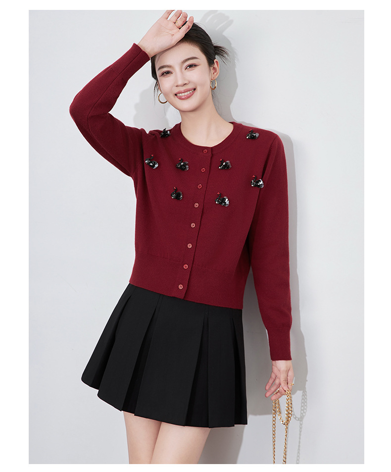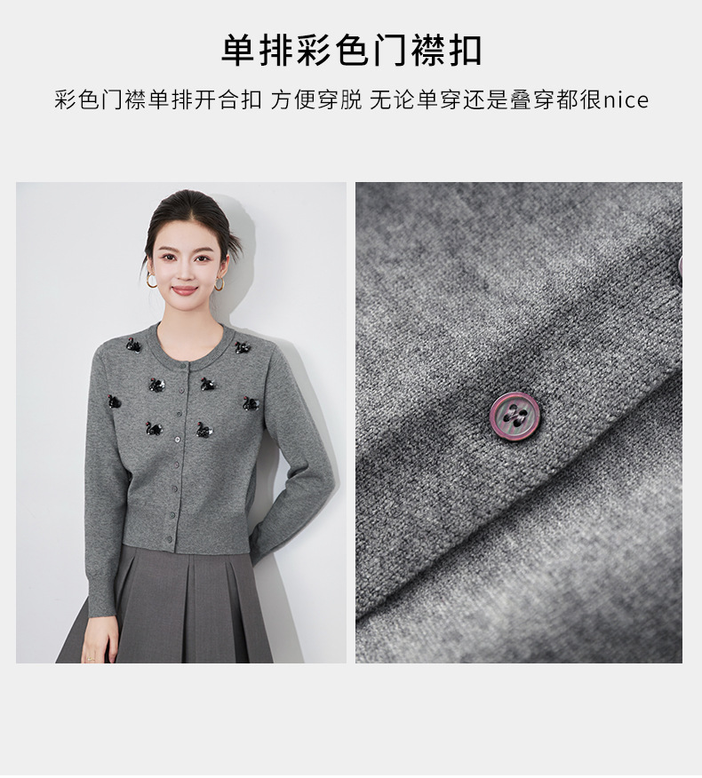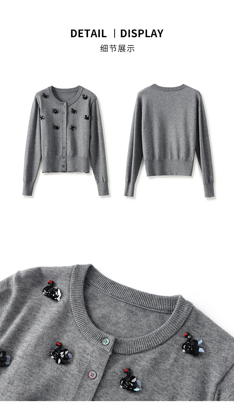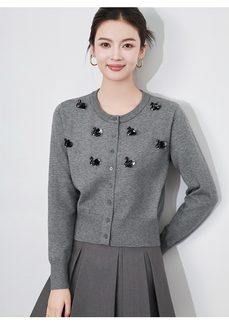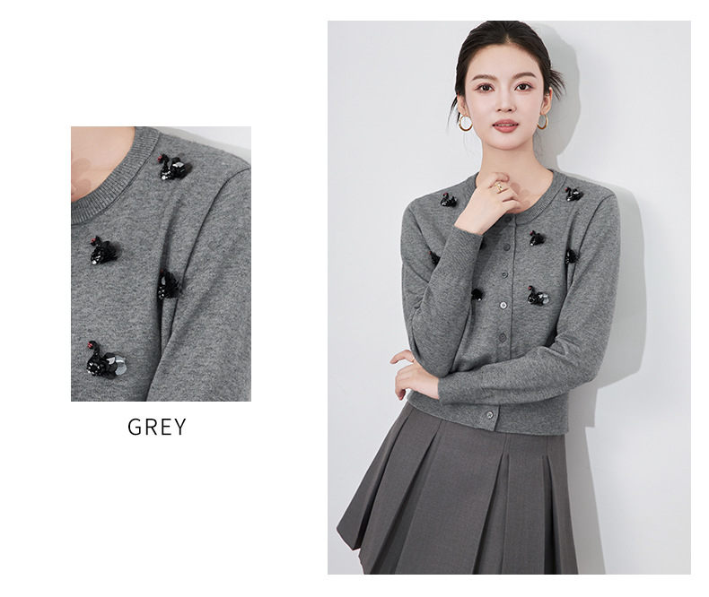 圆领重工立体镶钻,亮片黑天鹅针织开衫外套WLZD-2433205