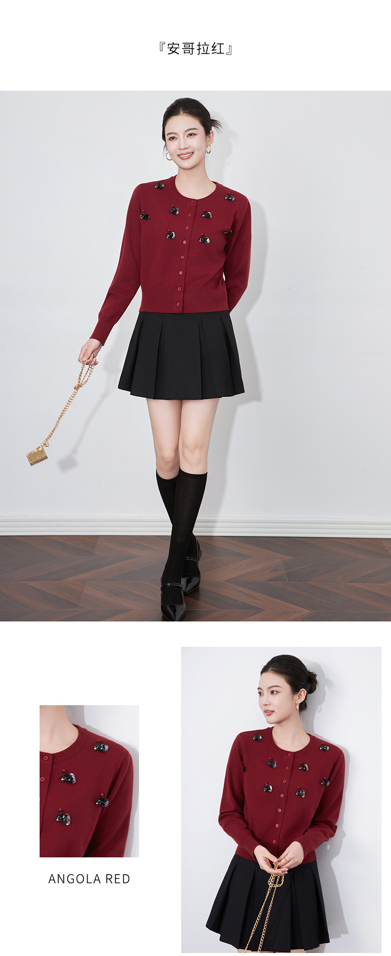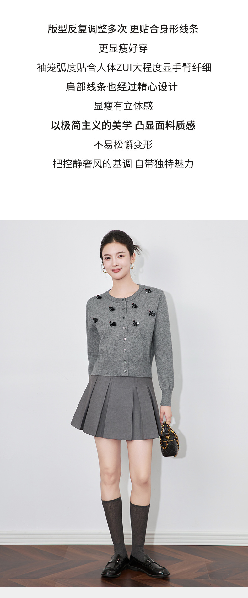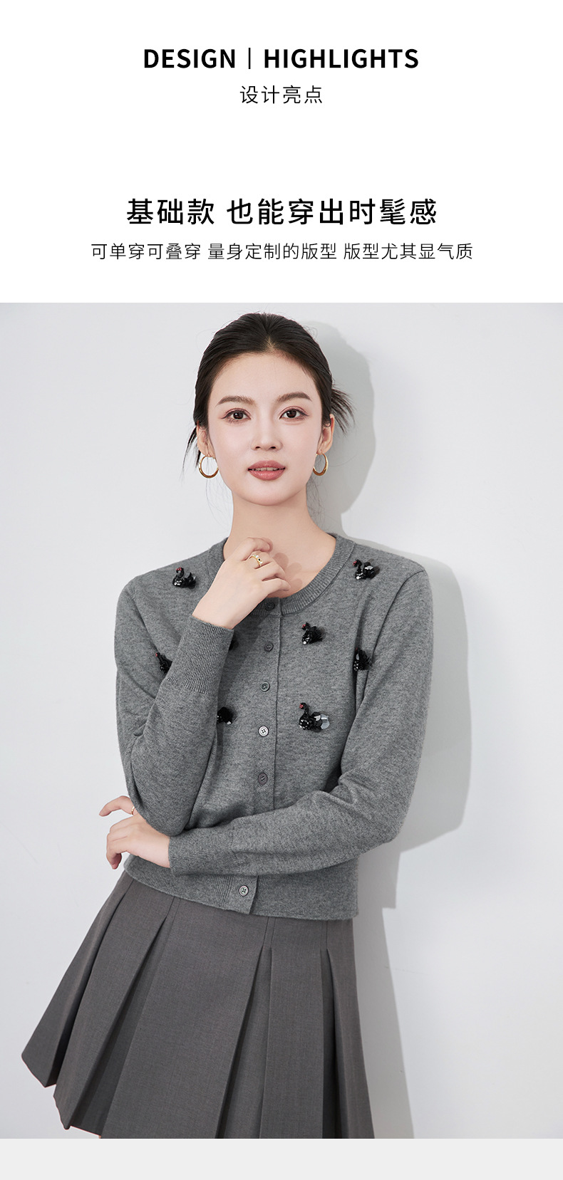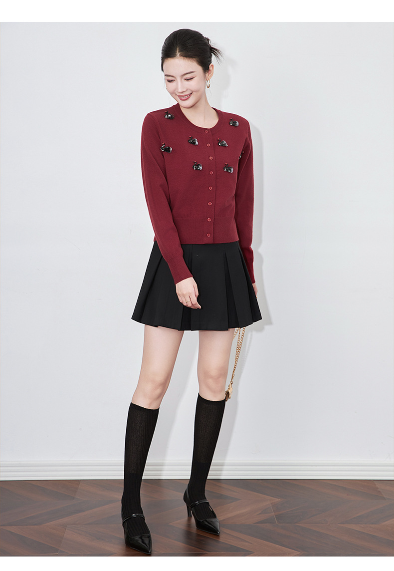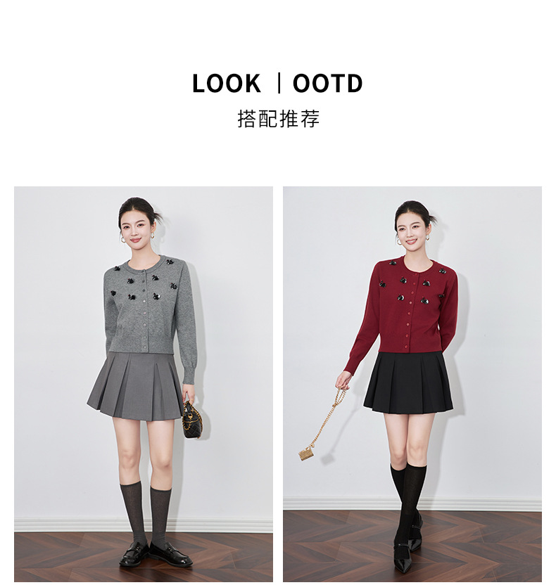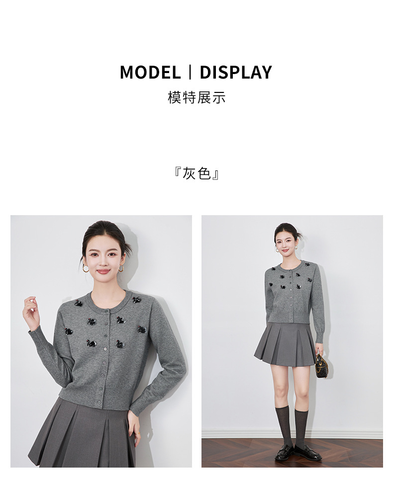 圆领重工立体镶钻,亮片黑天鹅针织开衫外套WLZD-2433205