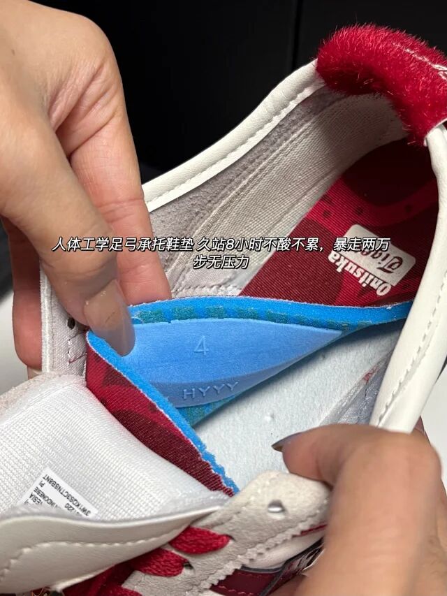 鞋垫是重点 脚感好的重要因素之一!柔软!透气!回弹!一踩一回弹 穿它每走一步都是享受,还有内侧的乳胶贴片 像「隐形腰靠」一样撑起足弓 暴走两万步也不酸不累!
