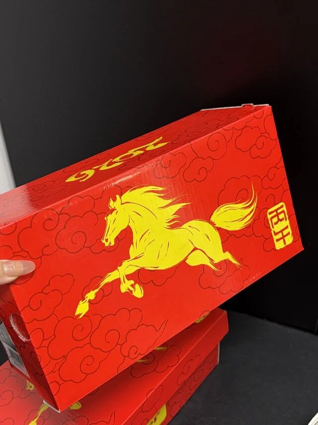 侧边经典虎爪纹,朱砂红+渐变设计 从浅到深晕染出骏马奔跃的动感,年味十足又不张扬!