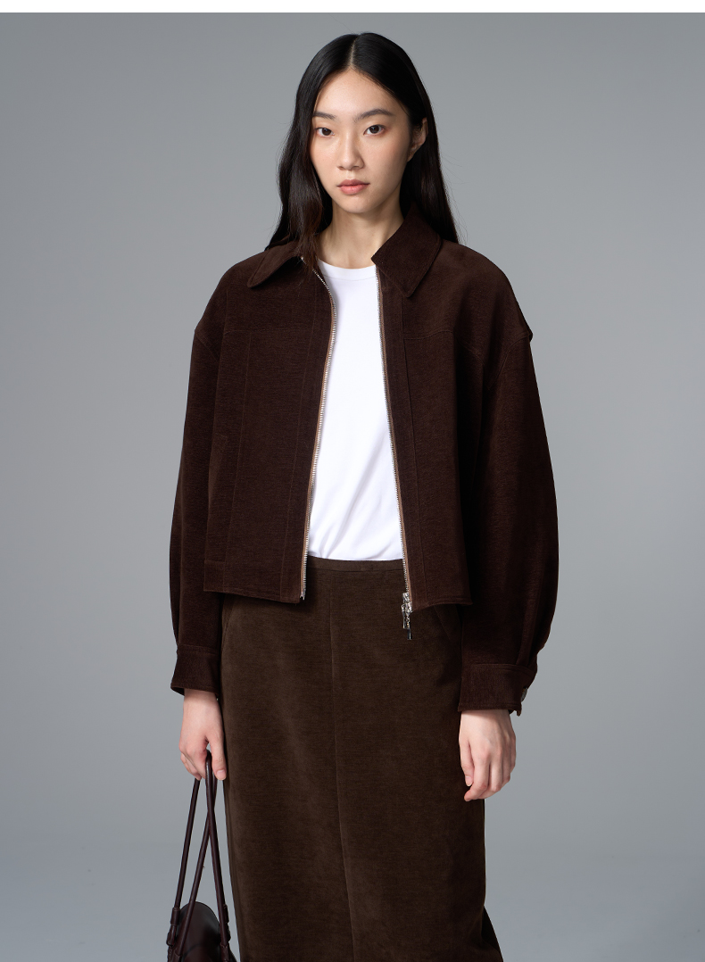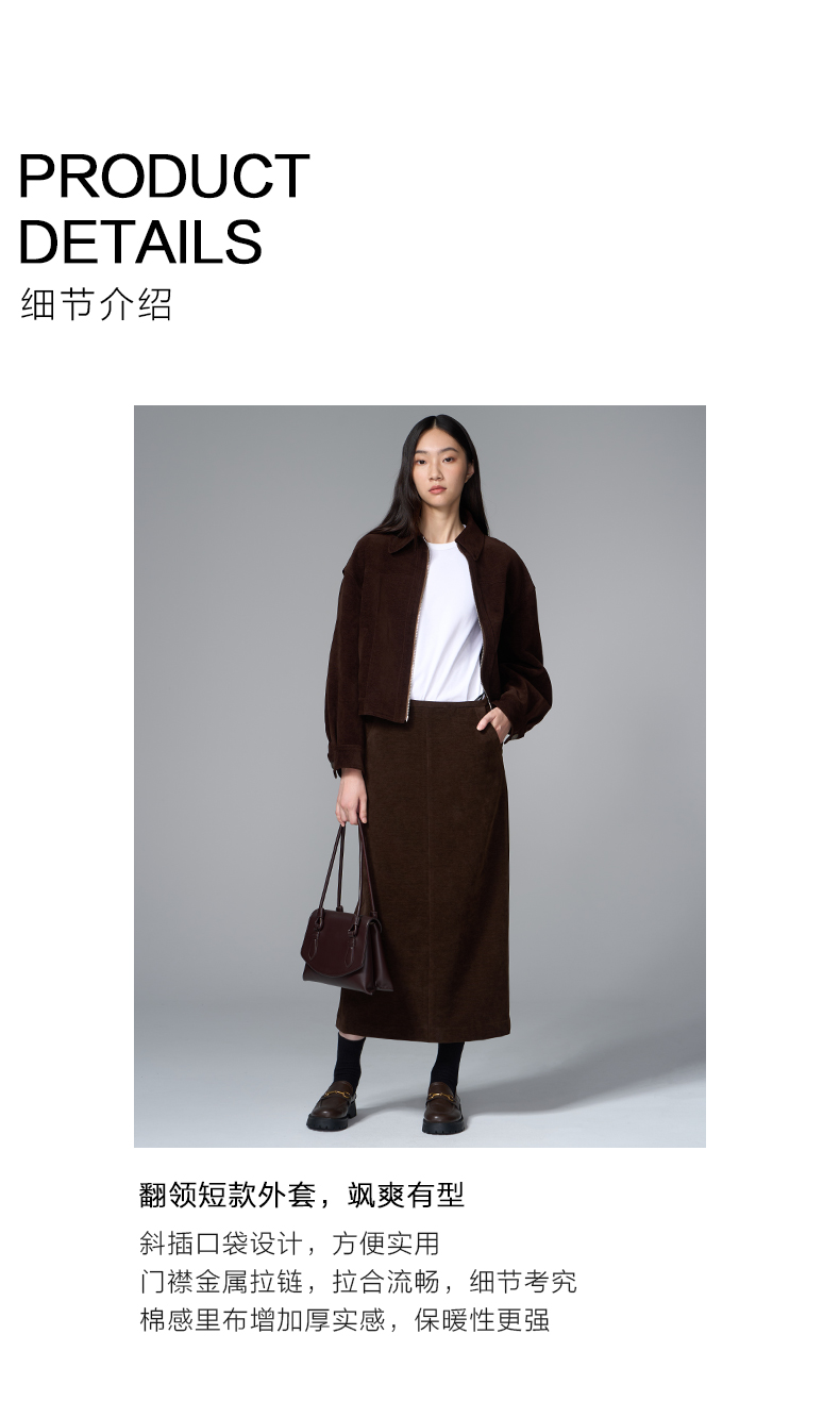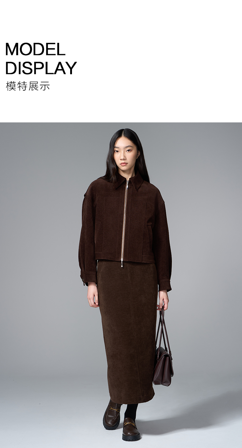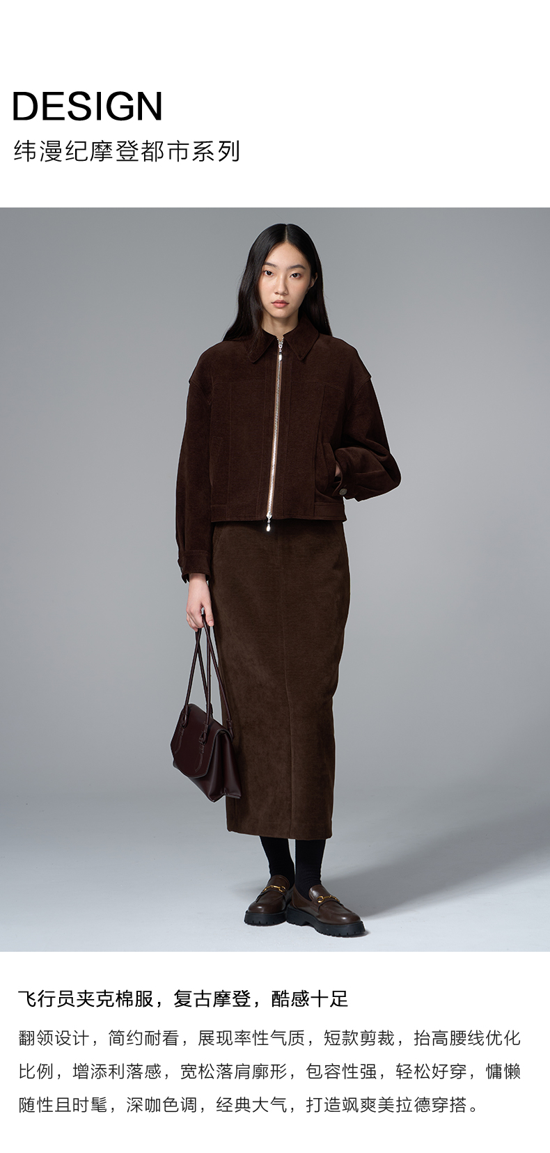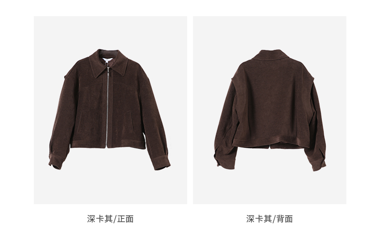 VIMAGE纬漫纪灯芯绒咖色休闲拉链复古翻领夹克外套女2025秋季新款V2410101