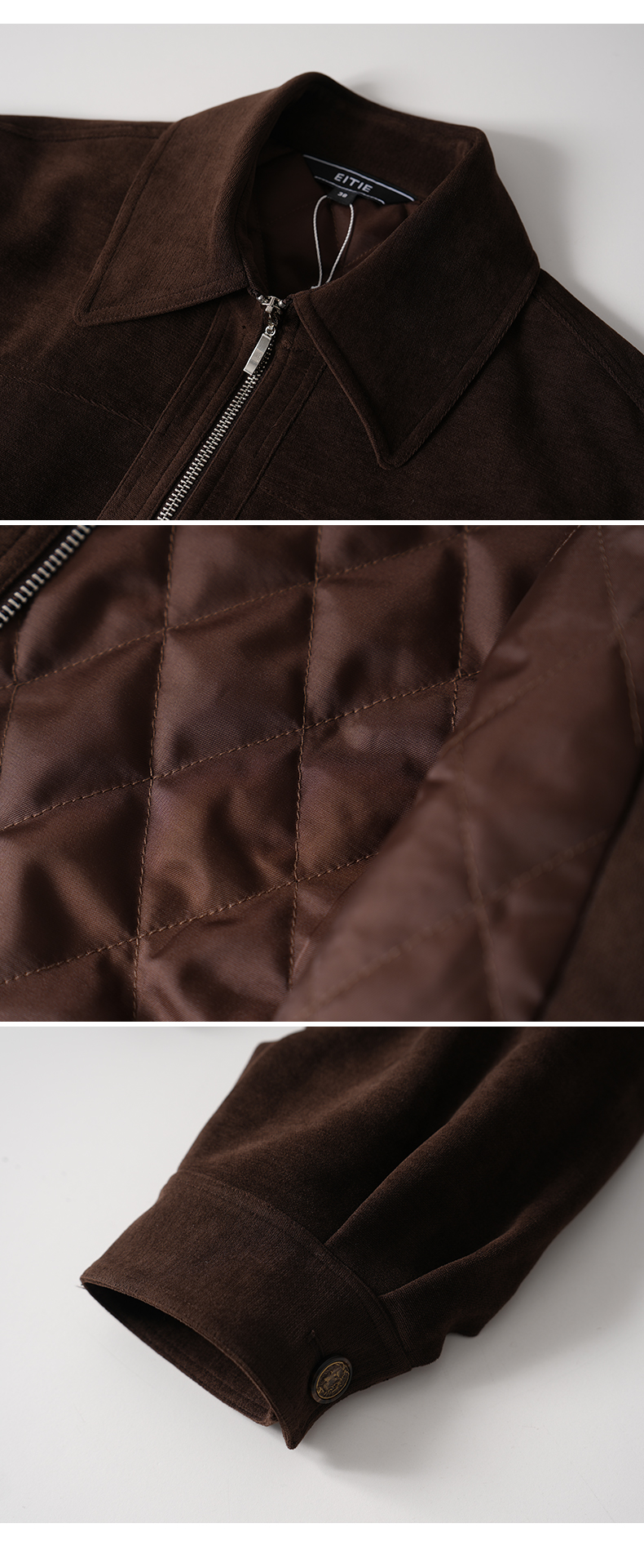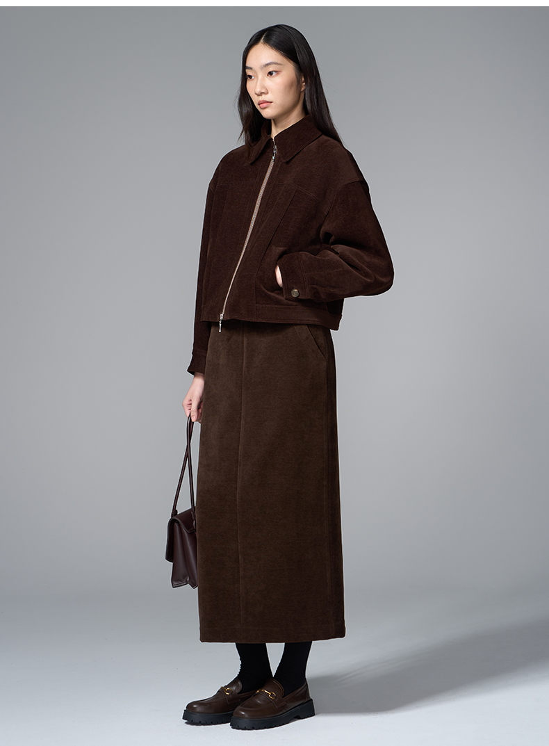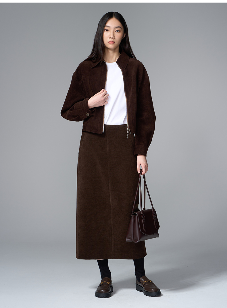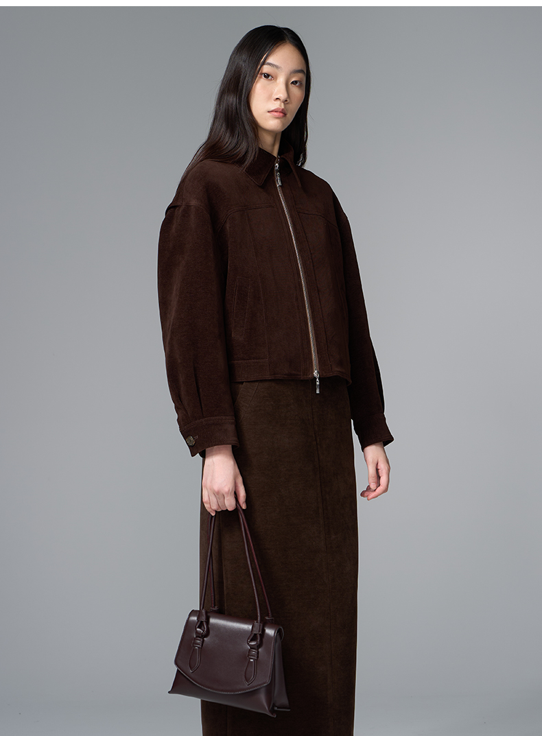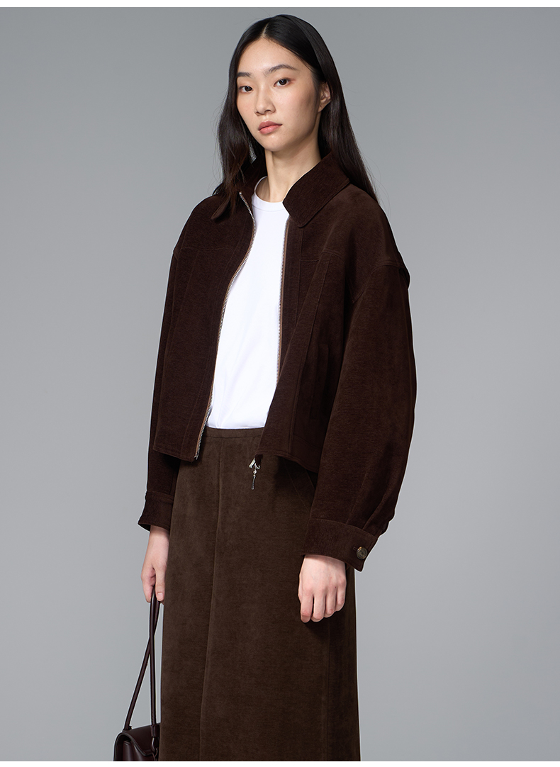 VIMAGE纬漫纪灯芯绒咖色休闲拉链复古翻领夹克外套女2025秋季新款V2410101