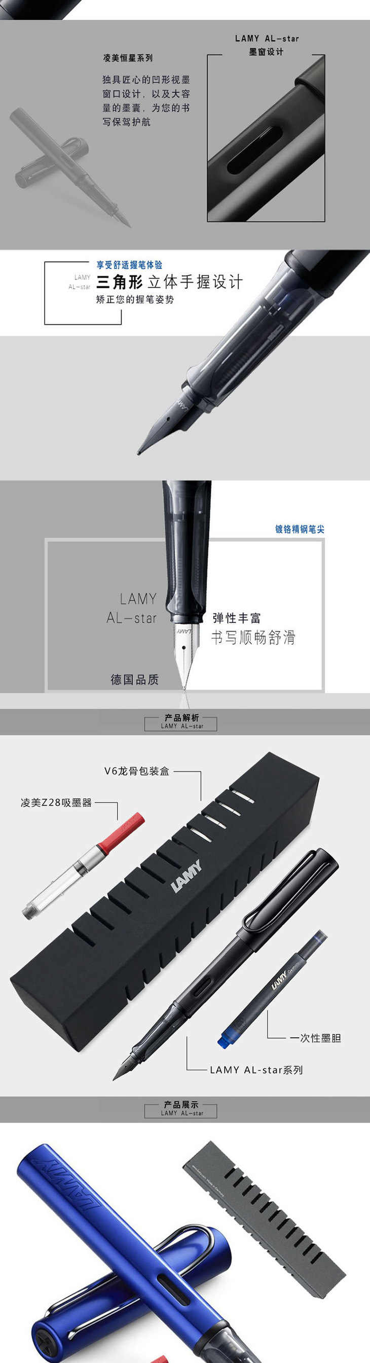 凌美(LAMY)Al-star恒星系列钢笔 宝石蓝 EF笔尖 钢笔套装(包含EF尖钢笔1支、吸墨器1支、一次性墨水胆1支、龙骨盒包装)