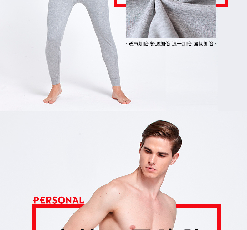 雀说男士秋裤纯棉男保暖裤冬季打底棉毛裤大码AL
