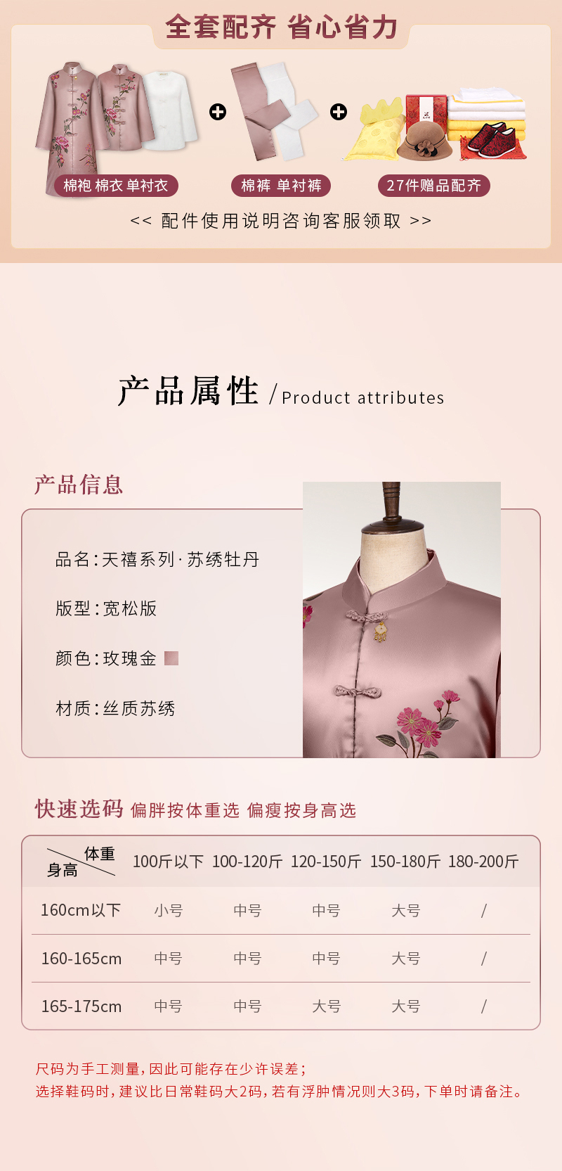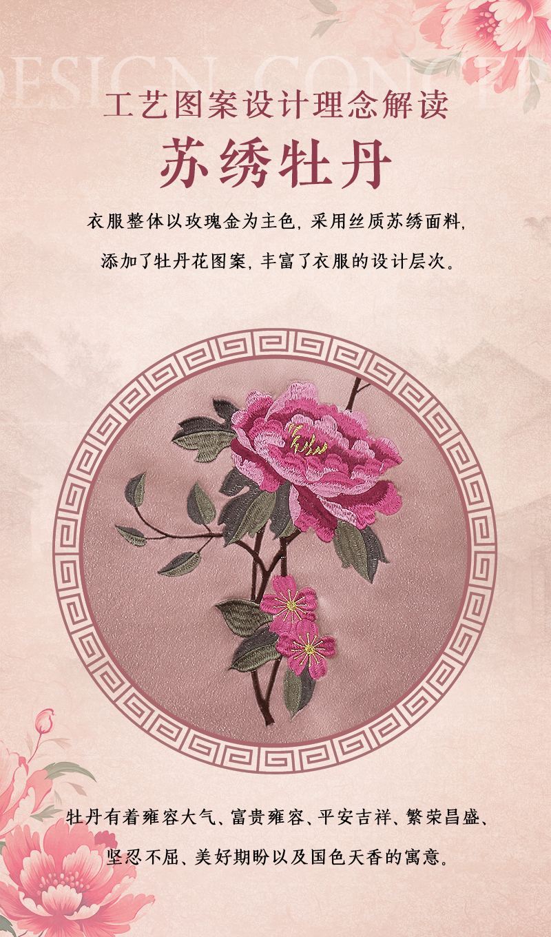 天禧-苏绣牡丹-玫瑰金小号腰围约3尺4