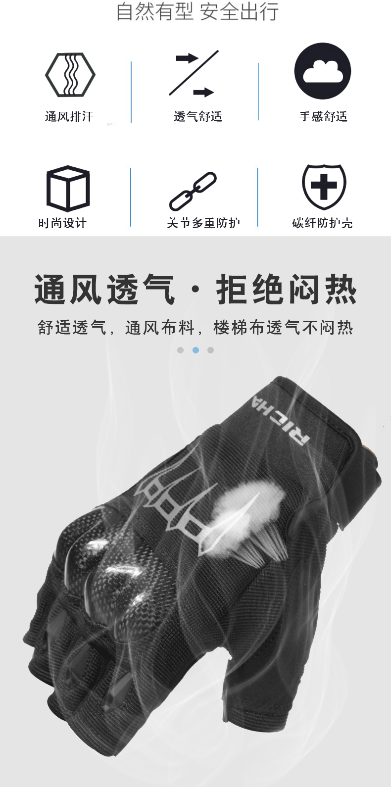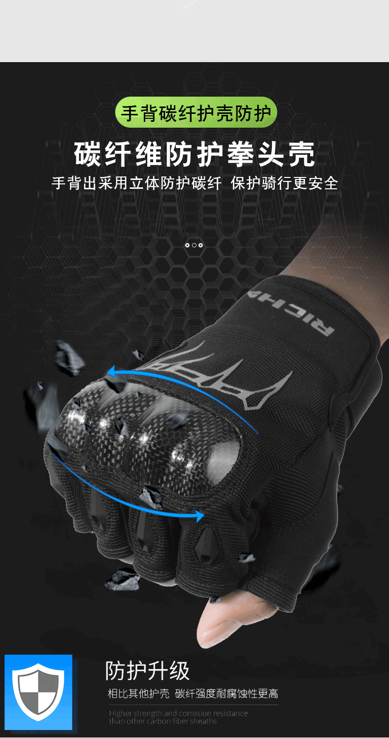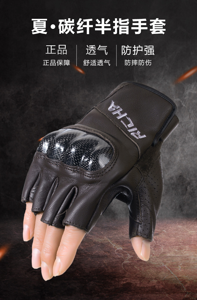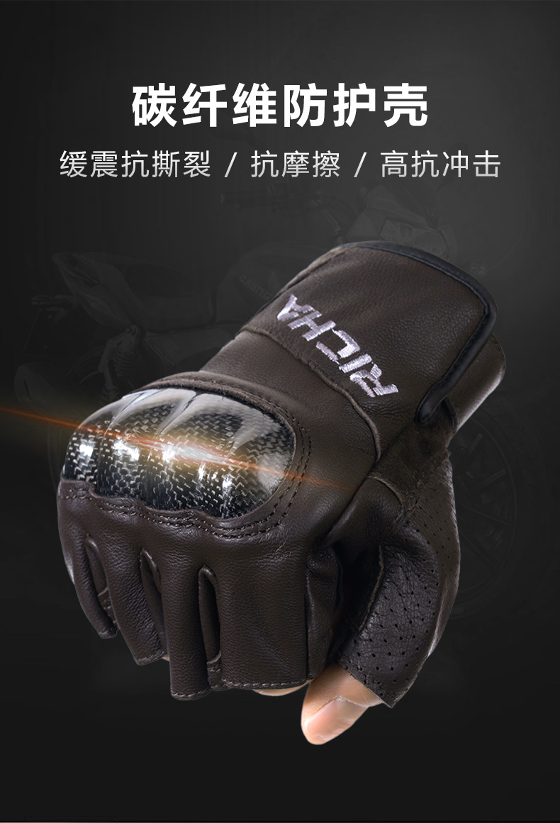 RICHA 半指摩托车手套夏季半指碳纤维防摔透气手套