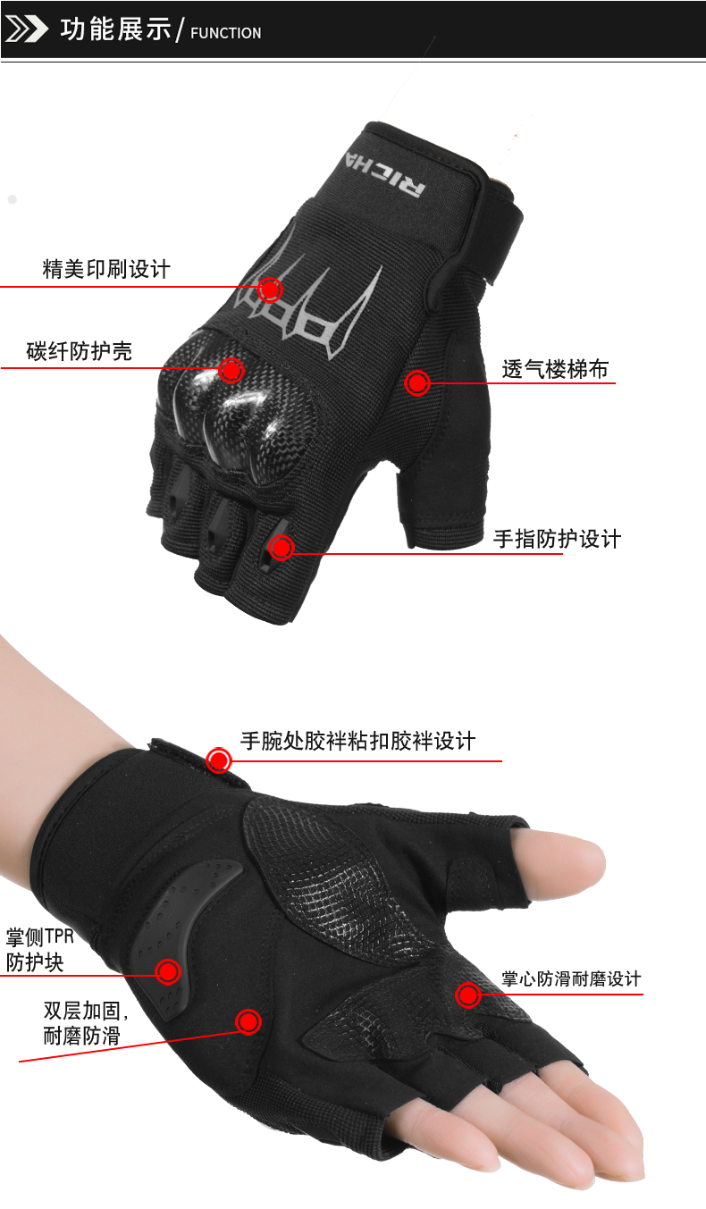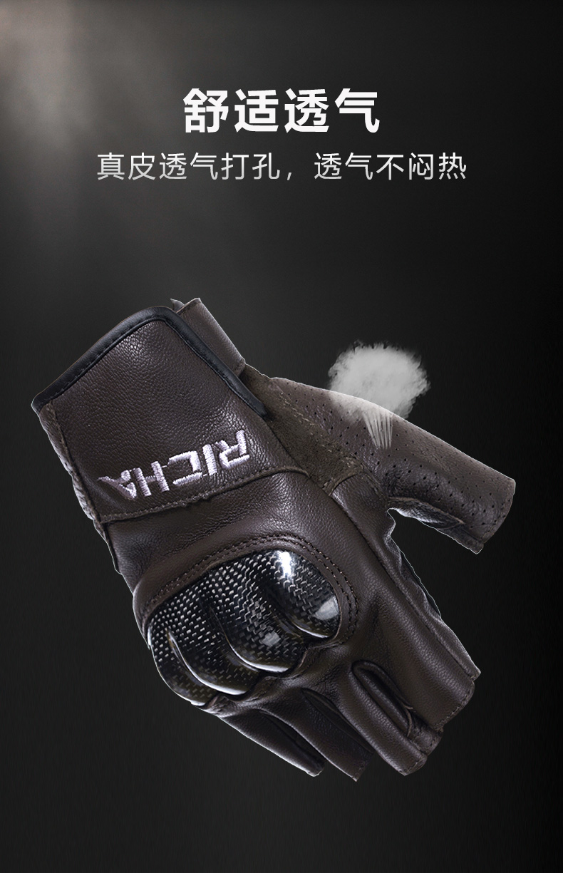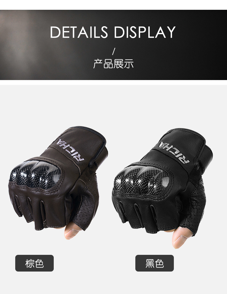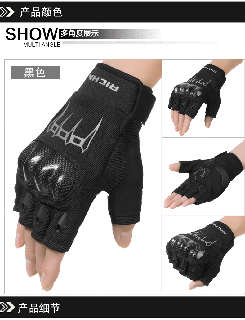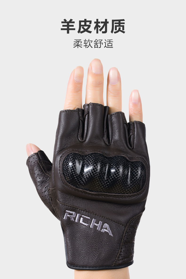RICHA 半指摩托车手套夏季半指碳纤维防摔透气手套