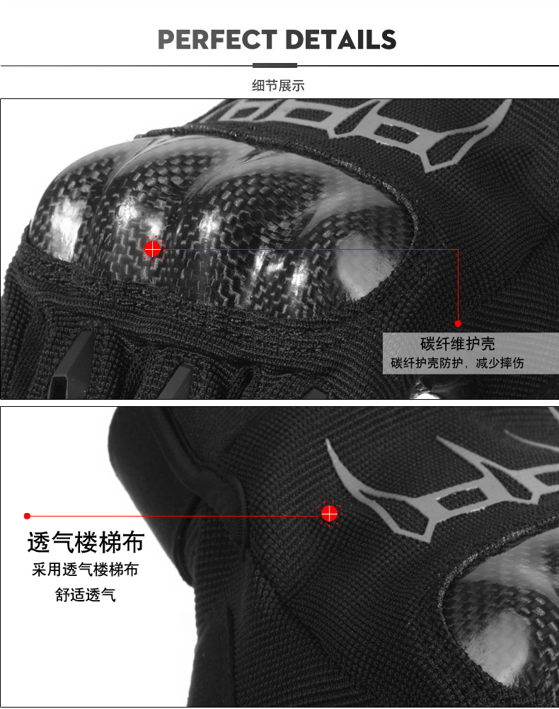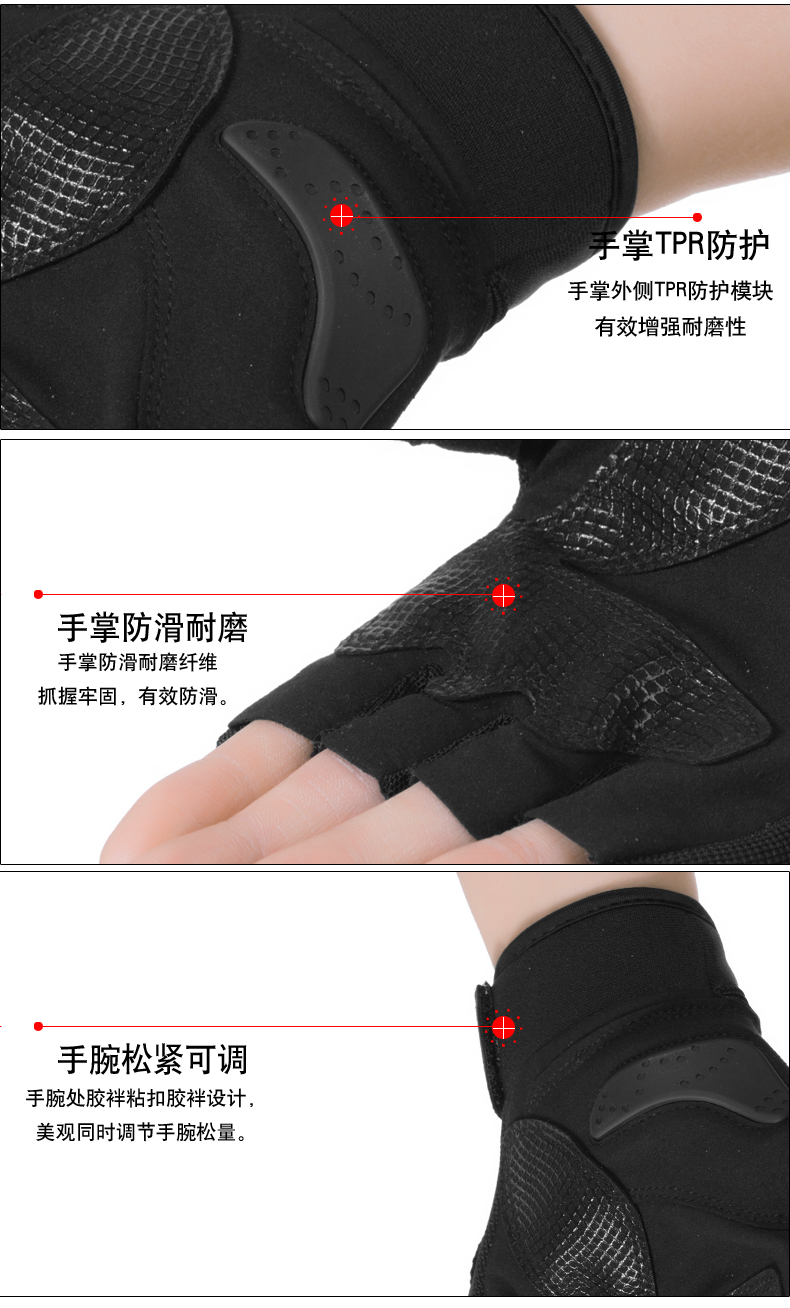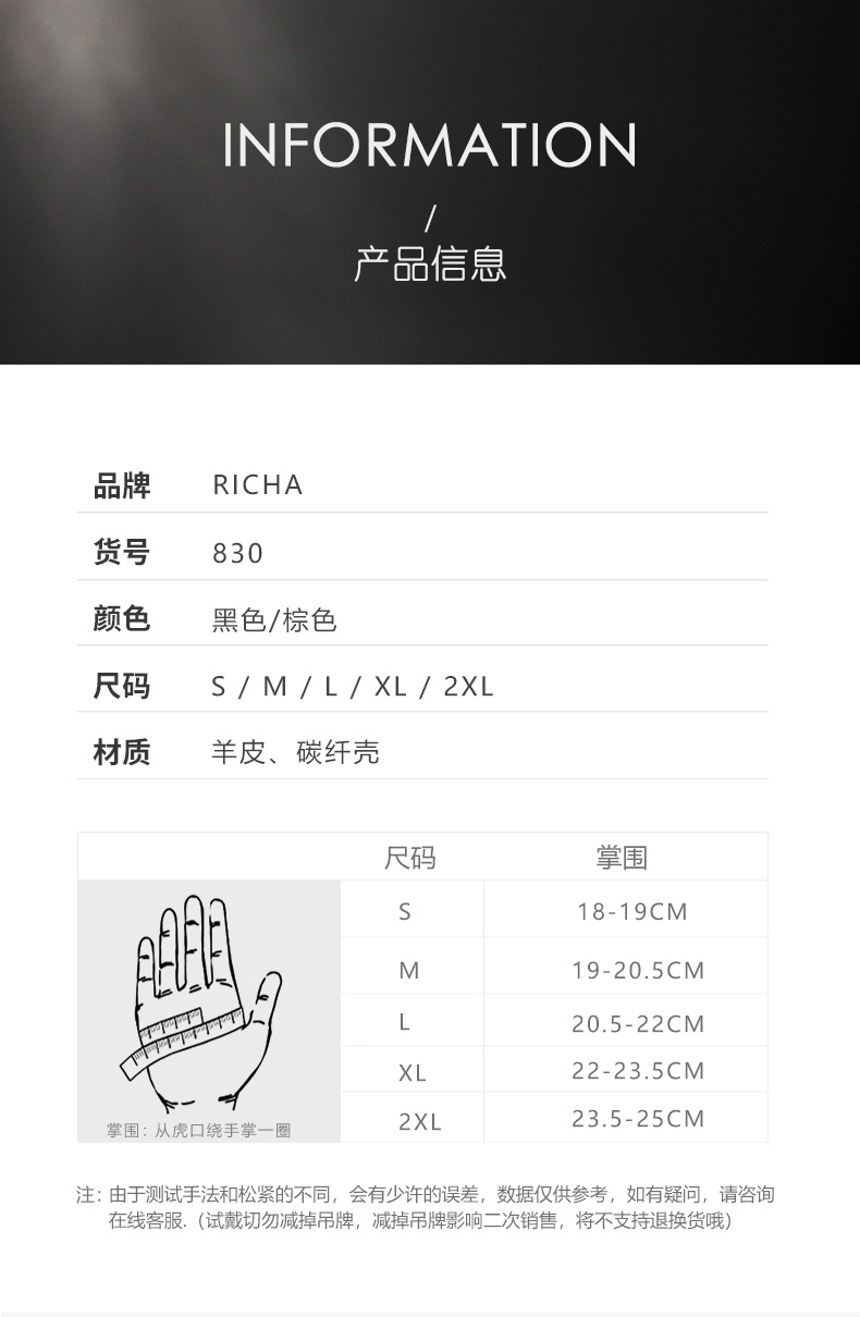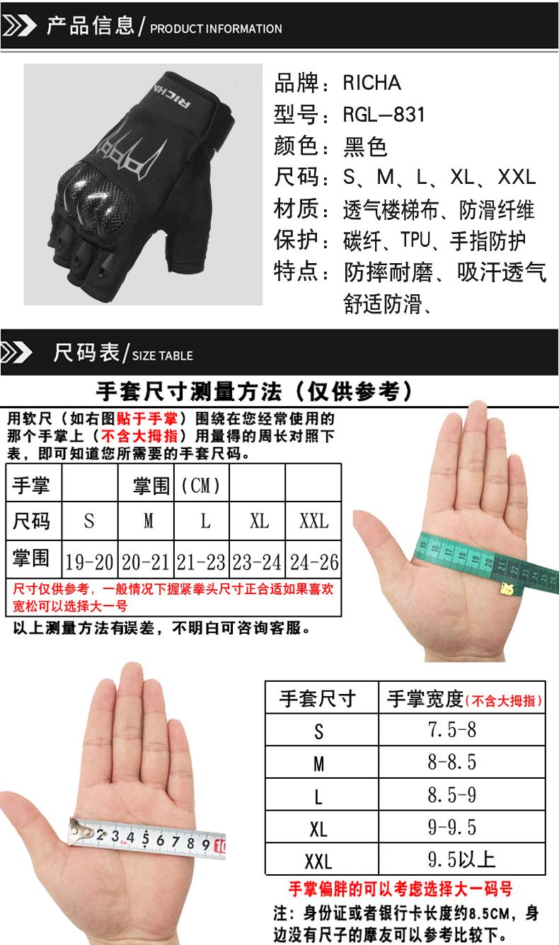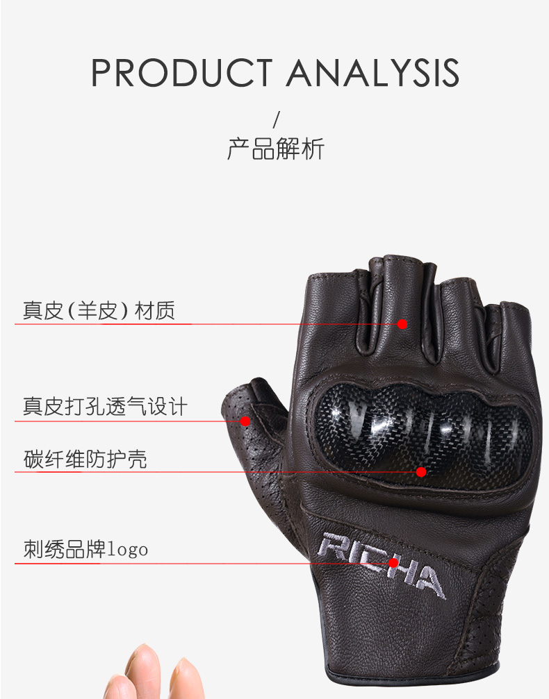 RICHA 半指摩托车手套夏季半指碳纤维防摔透气手套
