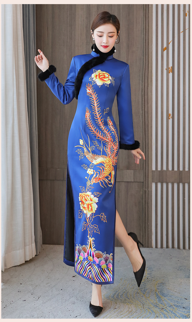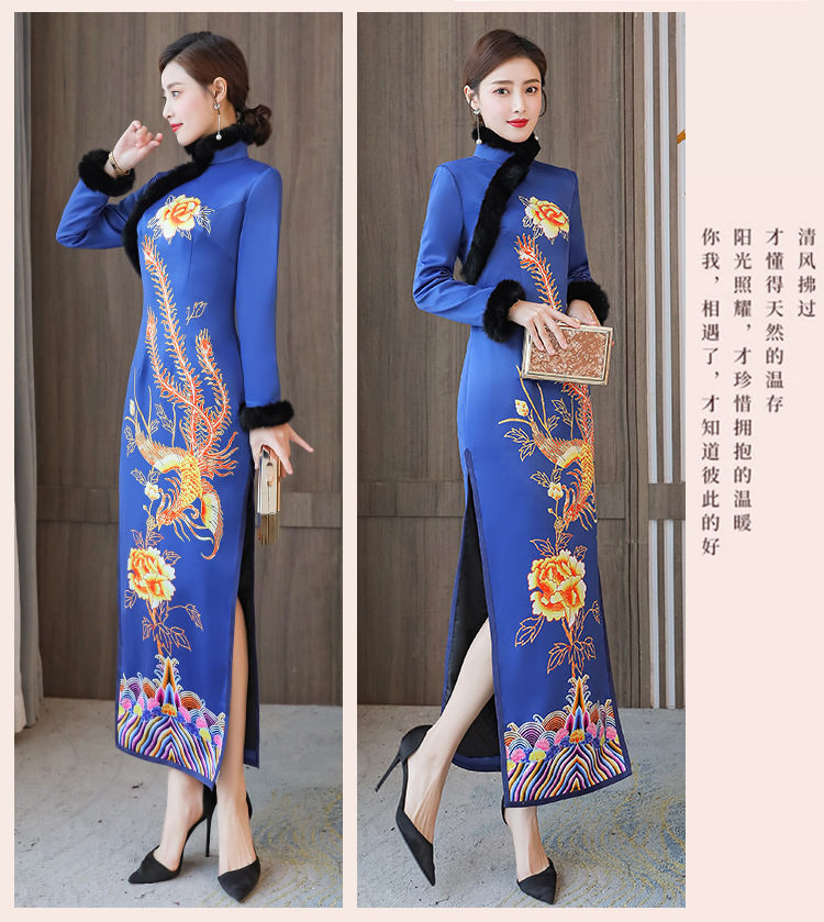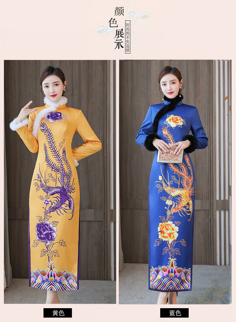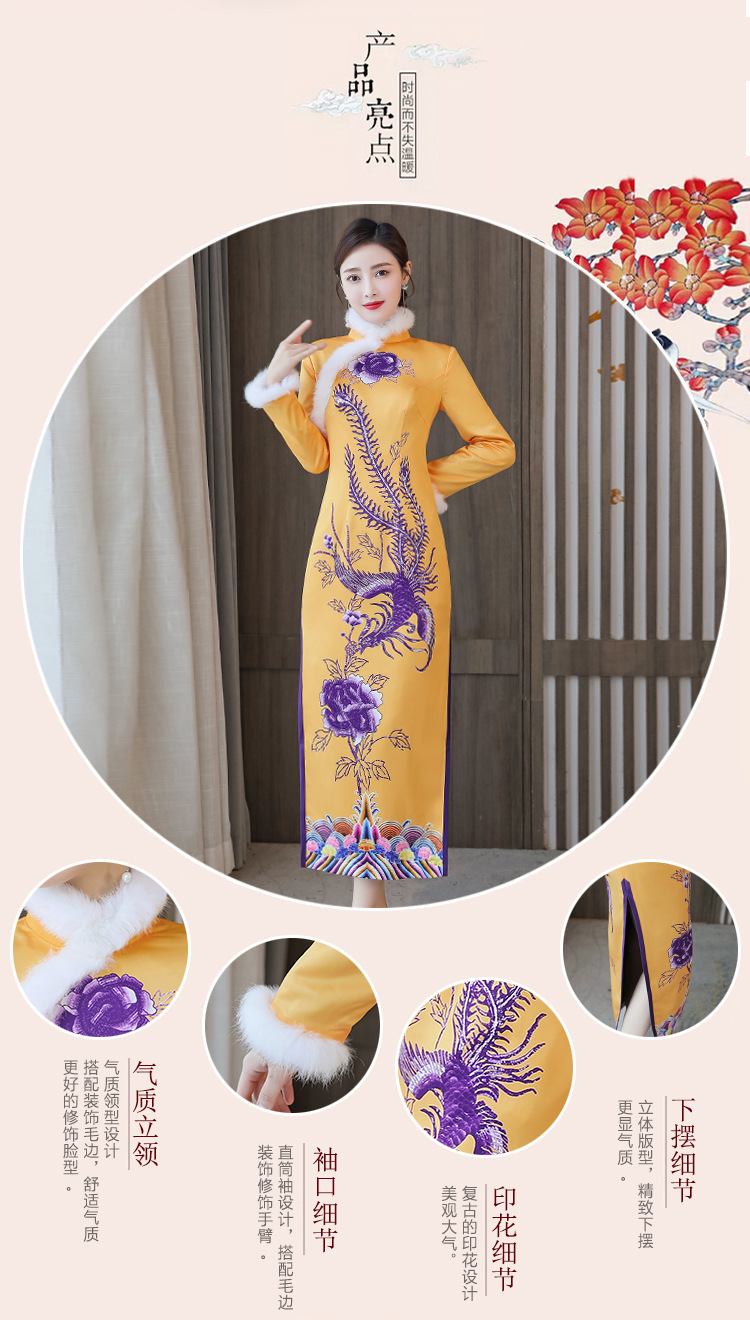 AHM thfs9207复古印花加厚旗袍改良毛毛夹棉连衣裙 商品图1