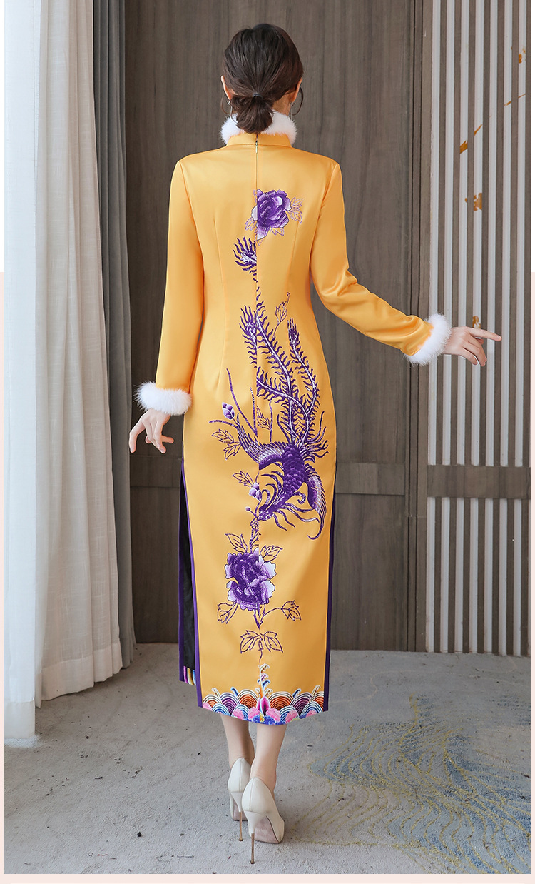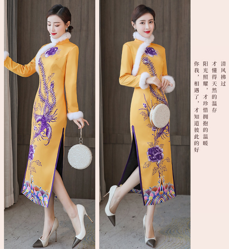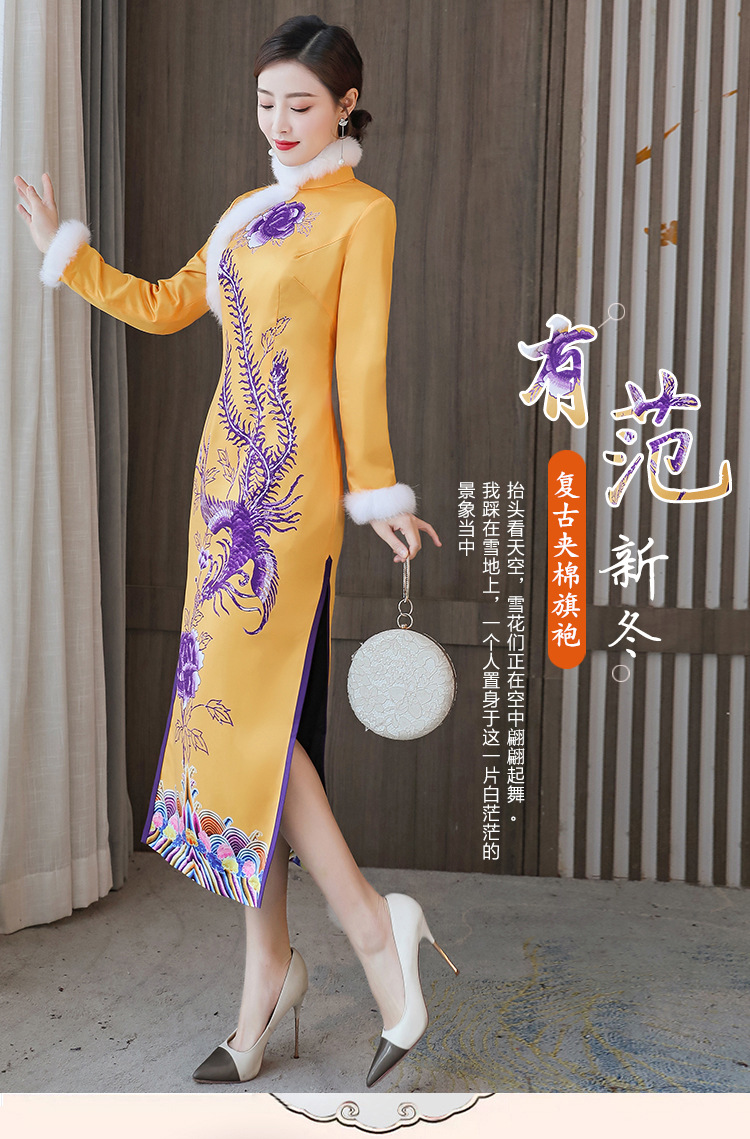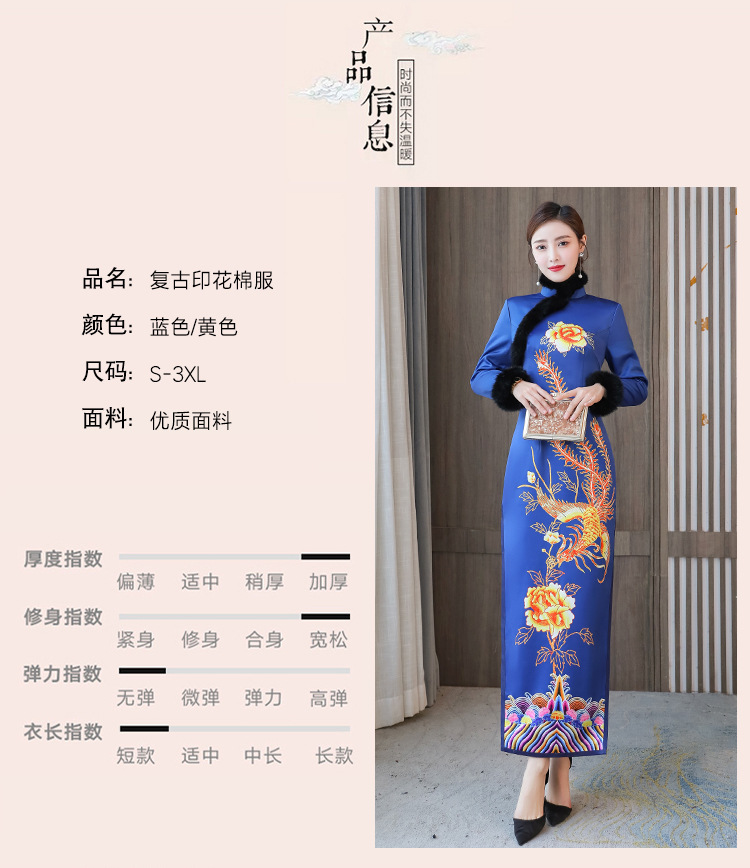AHM thfs9207复古印花加厚旗袍改良毛毛夹棉连衣裙 商品图0