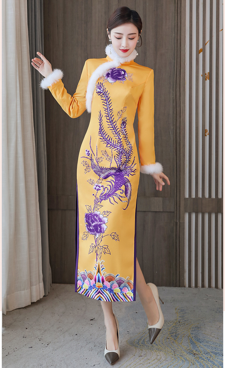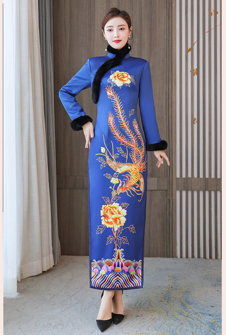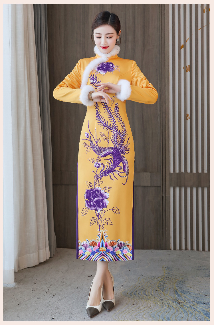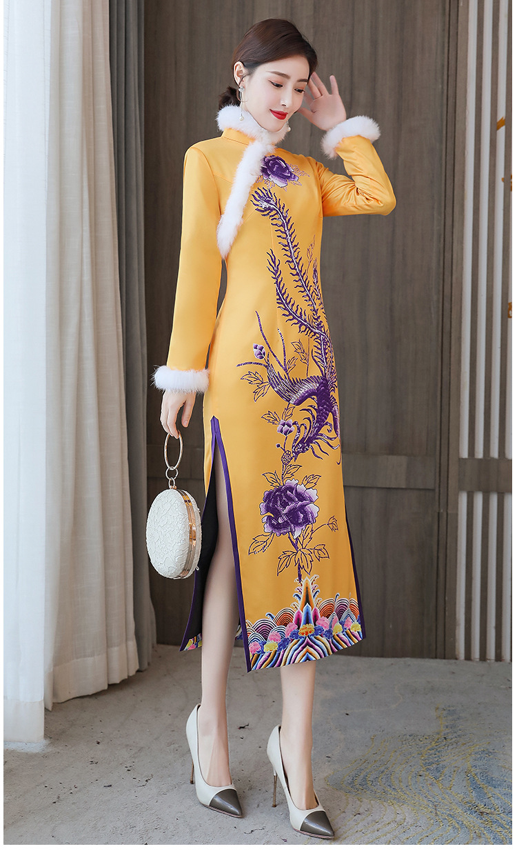 AHM thfs9207复古印花加厚旗袍改良毛毛夹棉连衣裙 商品图0