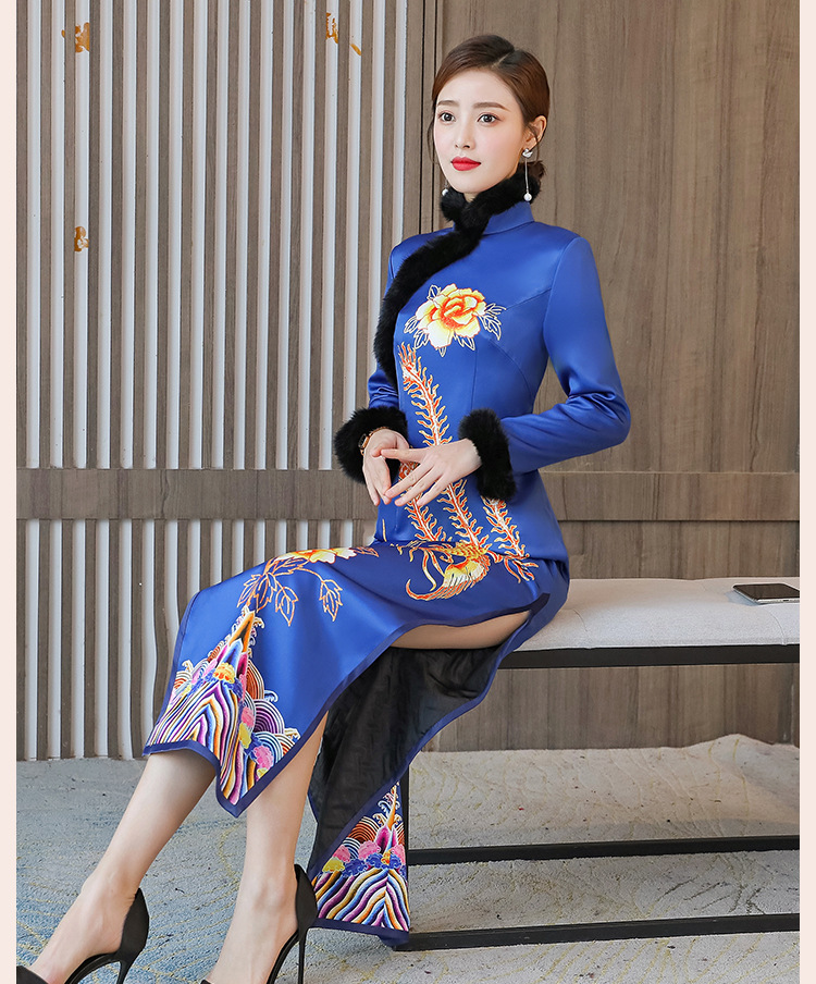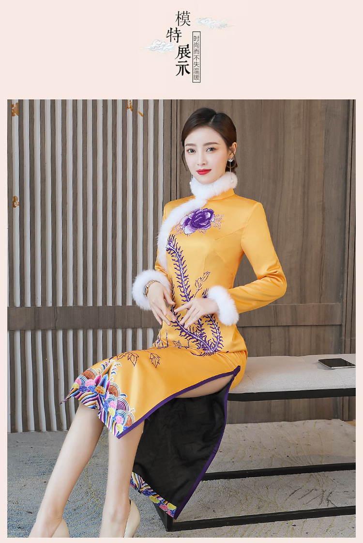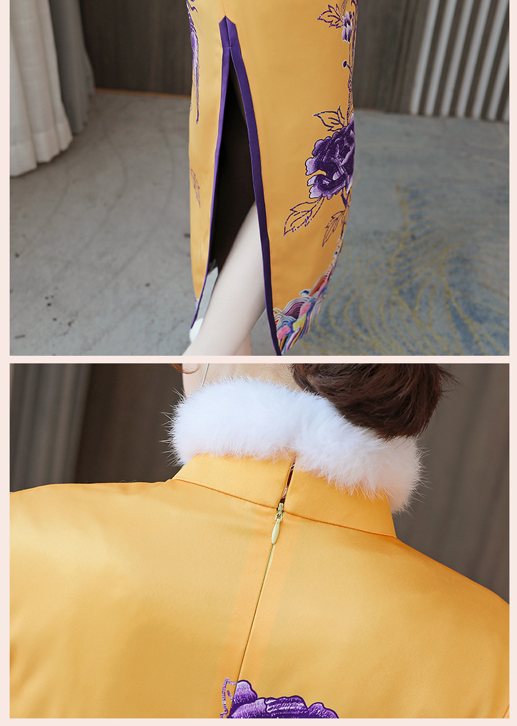 AHM thfs9207复古印花加厚旗袍改良毛毛夹棉连衣裙 商品图4