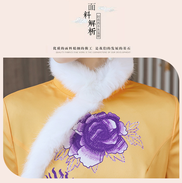 AHM thfs9207复古印花加厚旗袍改良毛毛夹棉连衣裙 商品图3