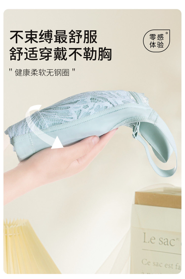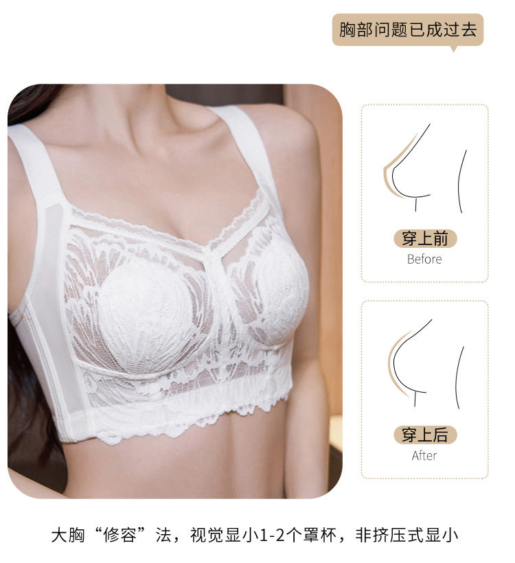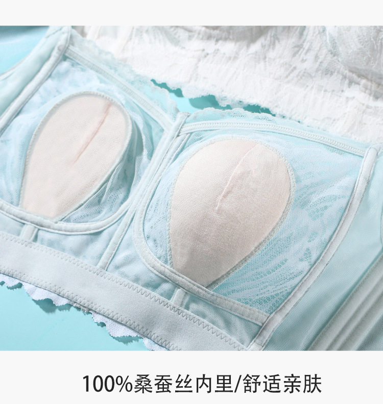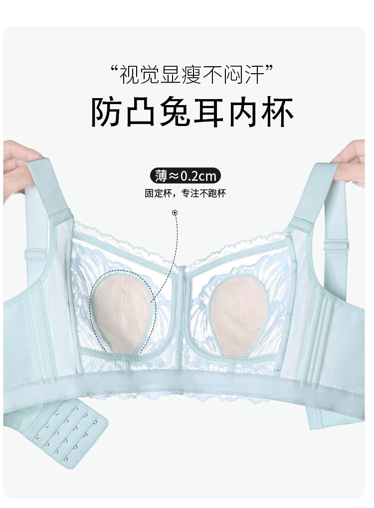 QC-W6689* 100%桑蚕丝内衣女薄款大胸显小收副乳防下垂超薄兔耳杯无钢圈文胸(单件)