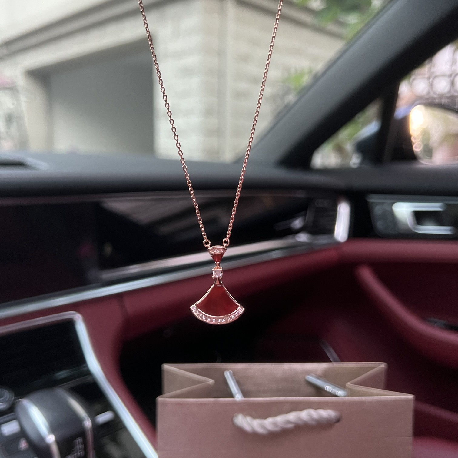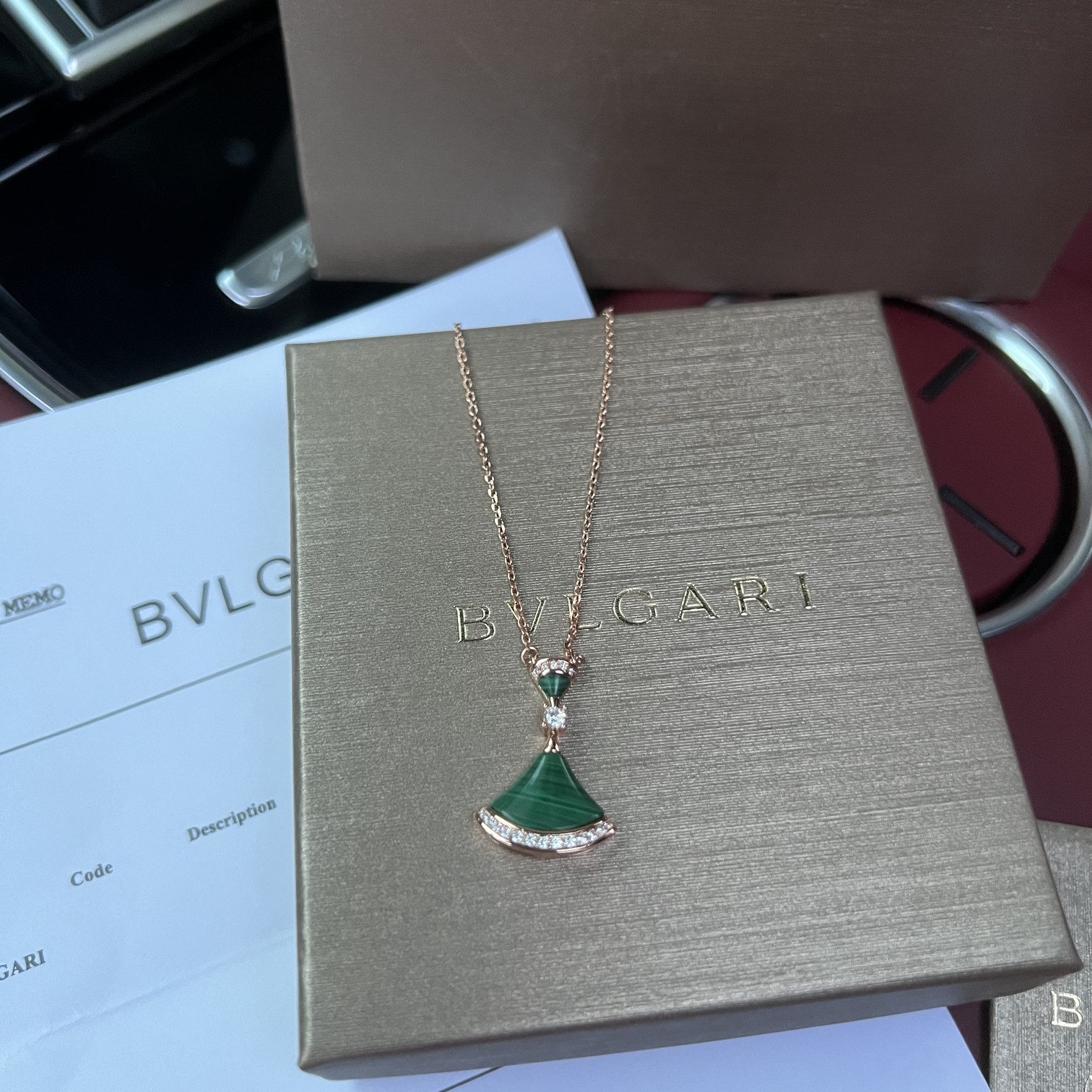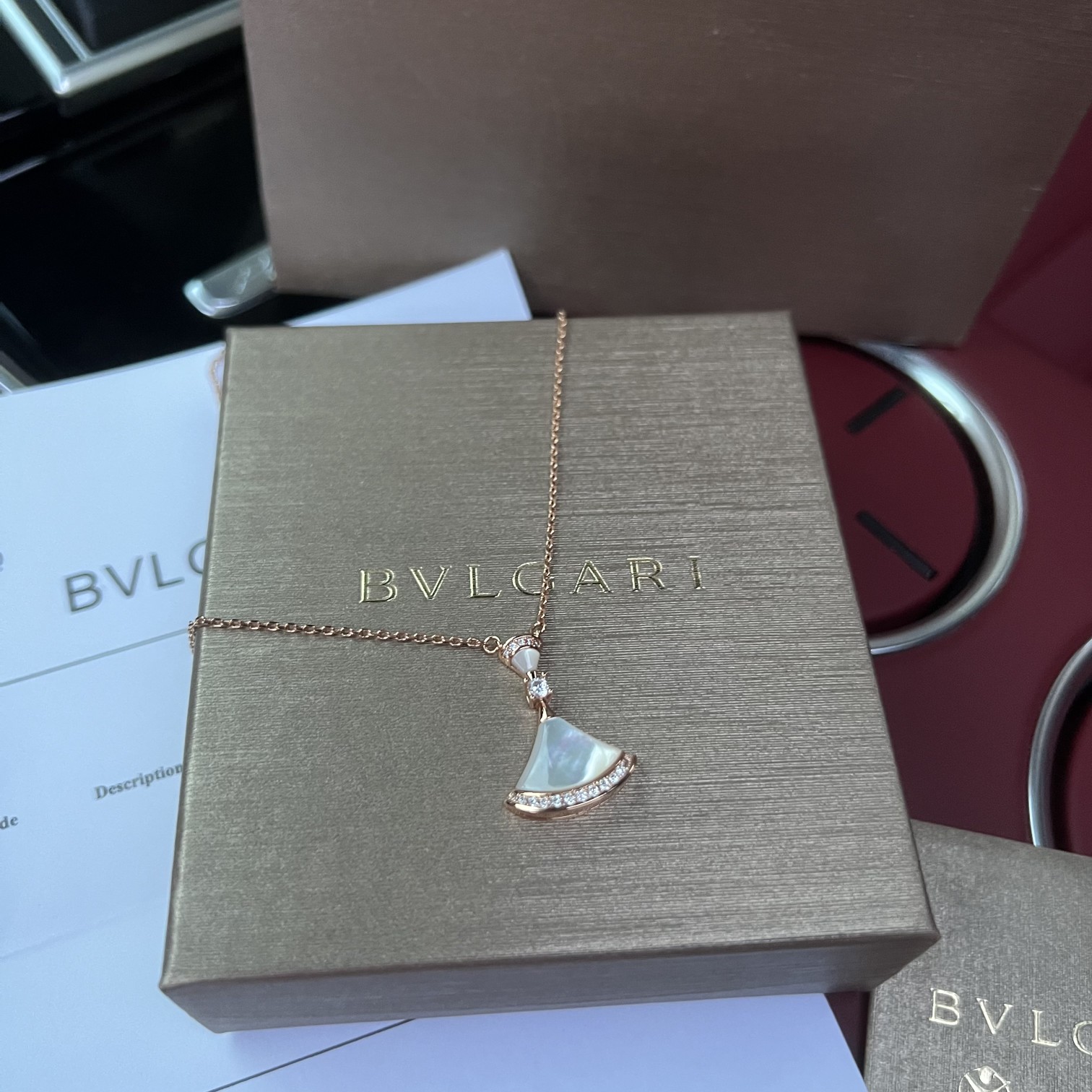 女神必备,1:1精工代购版本,BVLGARI宝格DIVAS' DREAM系列项链,宝格丽带钻小裙子扇子项链,全套专柜包装。925纯银真空电镀玫瑰金,不易褪色不过敏!原版logo龙虾扣,钢印清晰,扇形裙子底部也带编码跟logo刻字,配上一颗闪亮钻石,超美腻!一年四季都是百搭的一款项链。