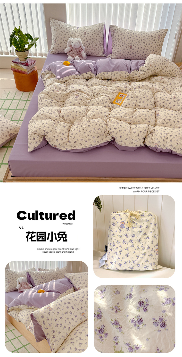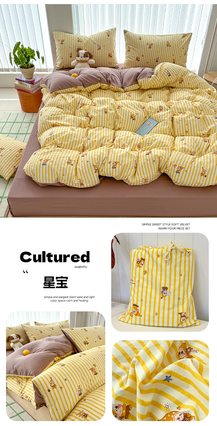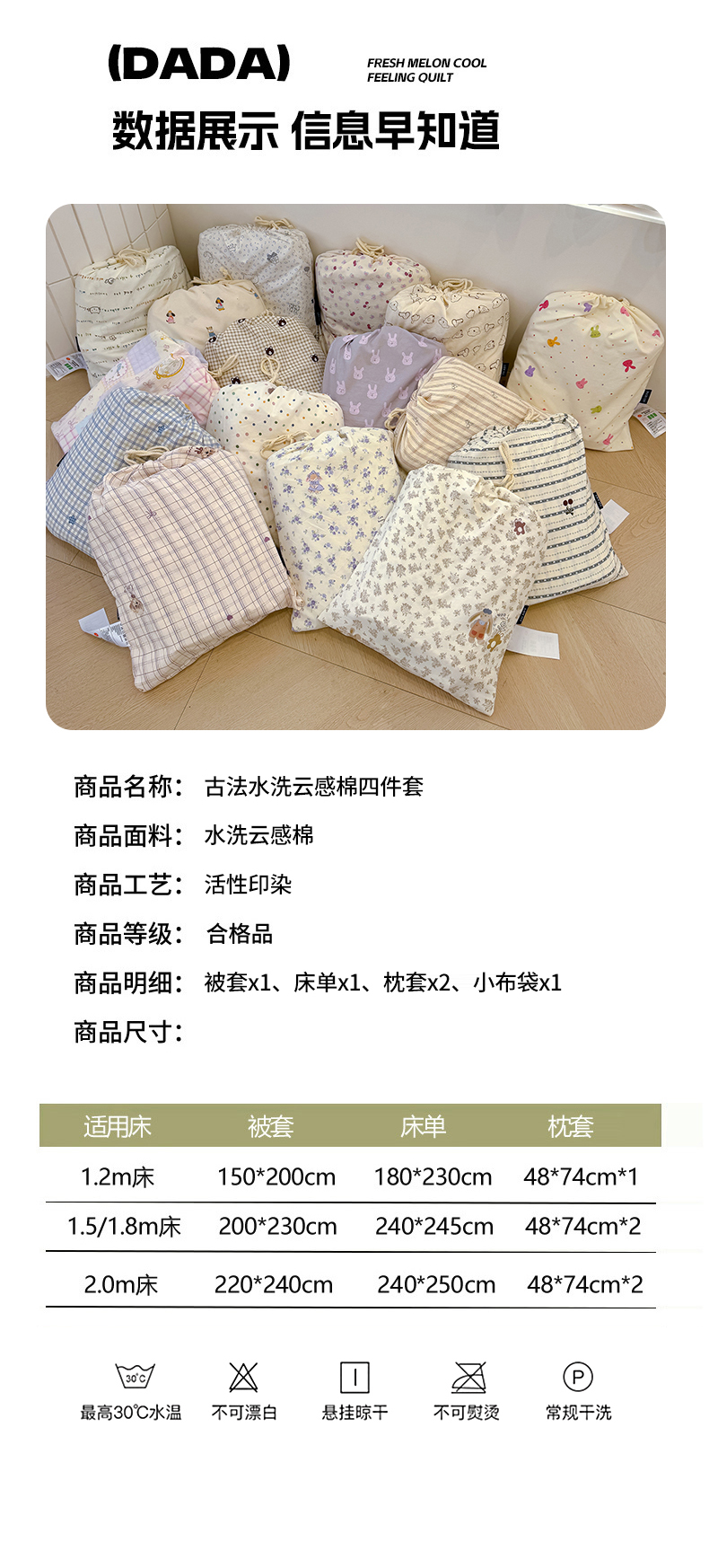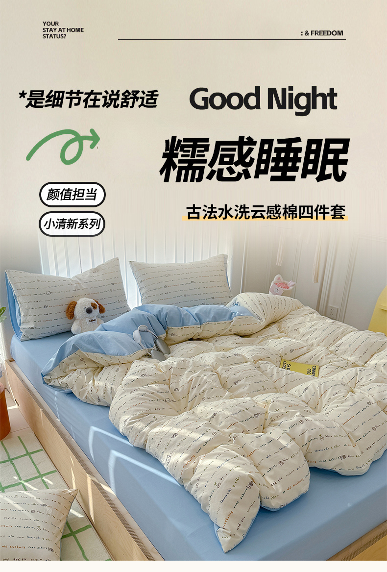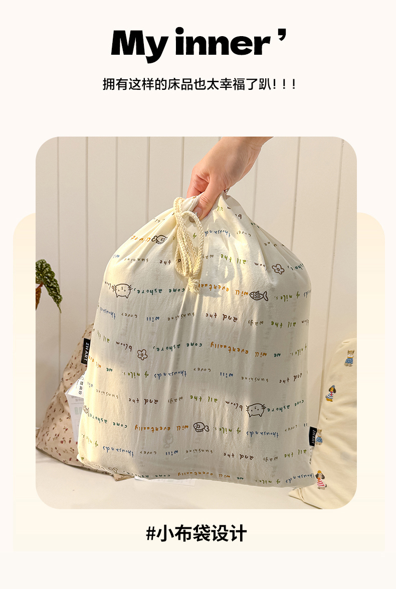 萌可兔 春夏款小布袋四件套 ins风 超柔古法水洗仿云感棉 A类母婴级 10款可选