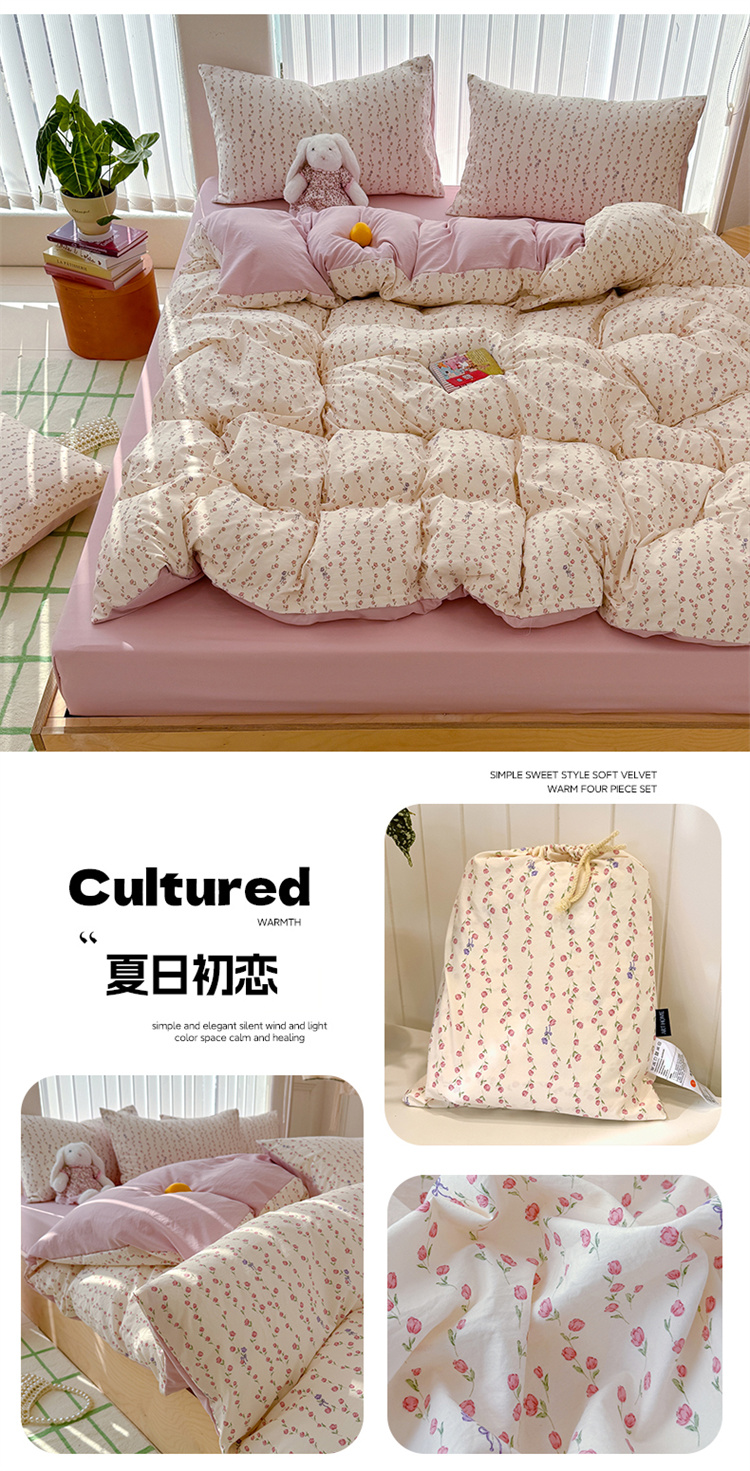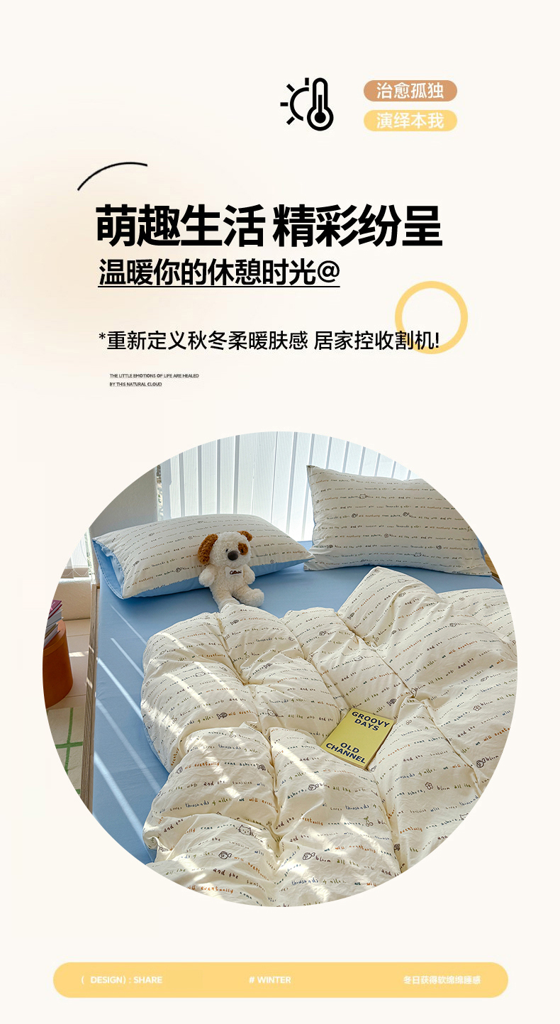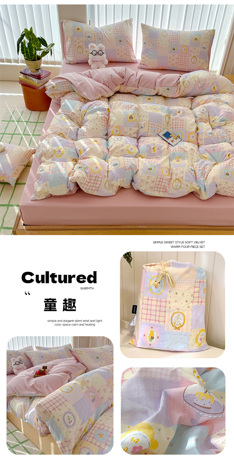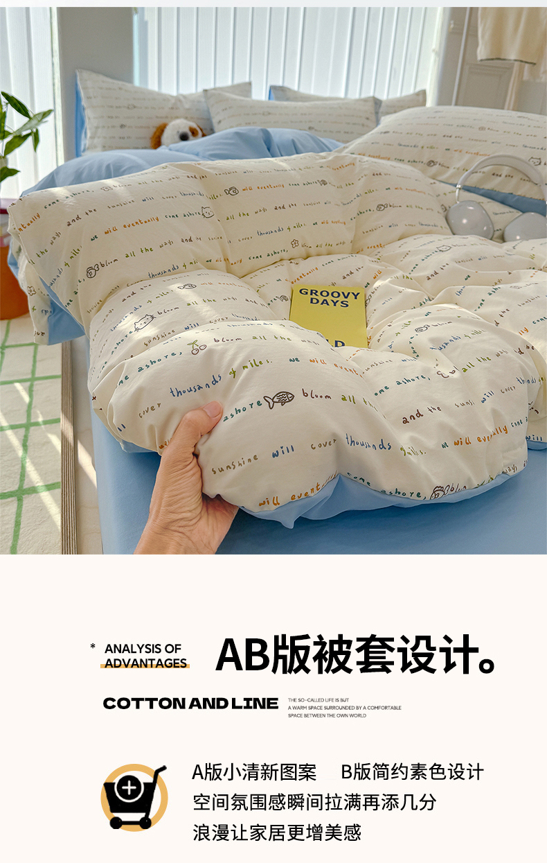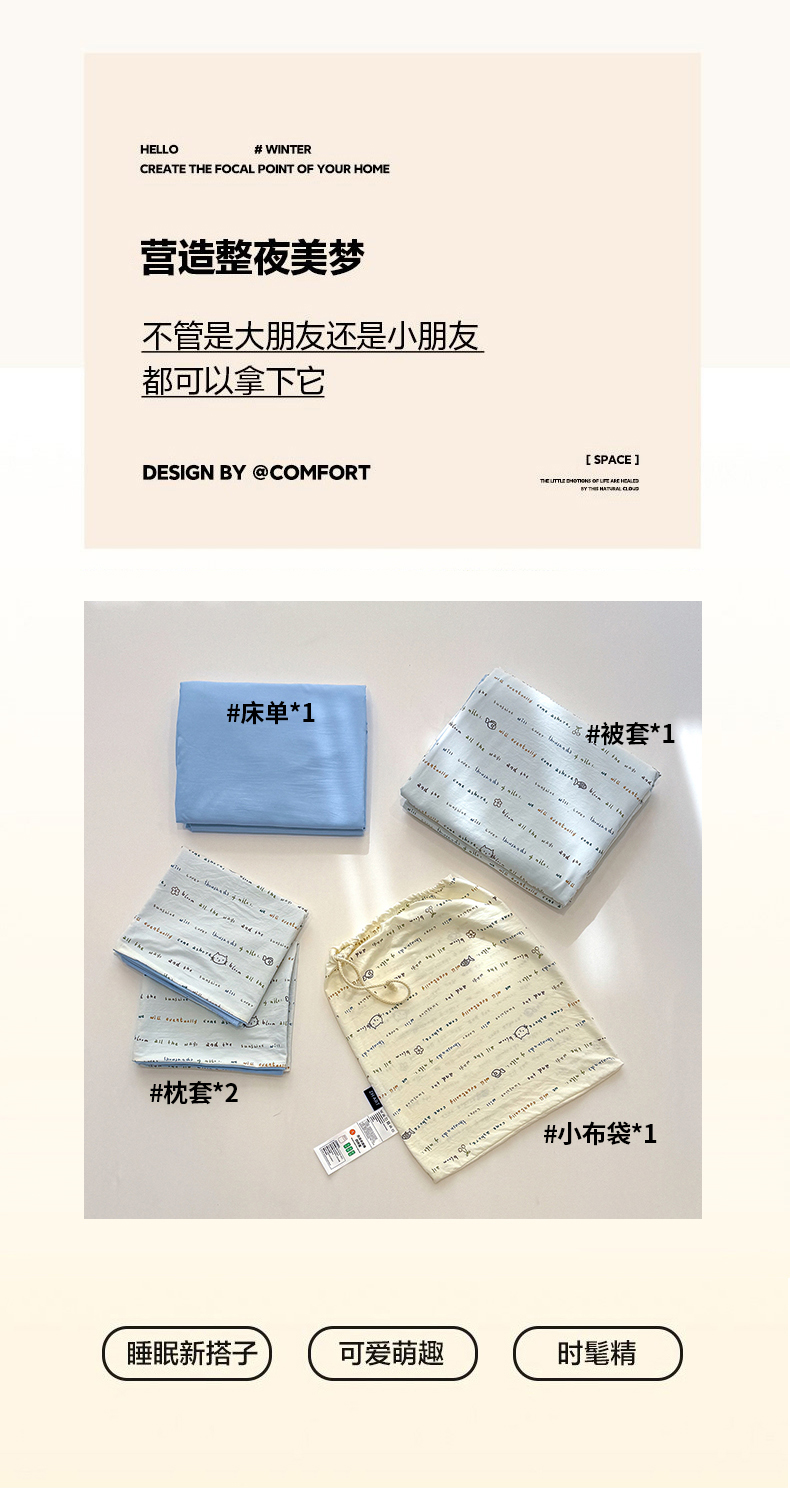 【品名】萌可兔 春夏款小布袋四件套 ins风 超柔古法水洗仿云感棉 A类母婴级 10款可选 【规格】阳光花园、夏日初恋、花园小兔、卡吉米、KT小鱼、云谣、蜜恋樱桃、格子小熊、童趣、星宝 【尺寸】 小号-150cm*200cm 标准-2200cm*230cm 大号-220cm*240cm 【产地】国内 【材质】聚酯纤维100% 【发货包装】独立包装 【发货地】南通 【发货快递】极兔、韵达、申通随机发 【不发货区域】新疆、西藏、港澳台 【补邮费地区】内蒙,甘肃,宁夏,青海,海南+3元 北京、上海+2元 【发货时效】48-72小时,周末节假日顺延 |