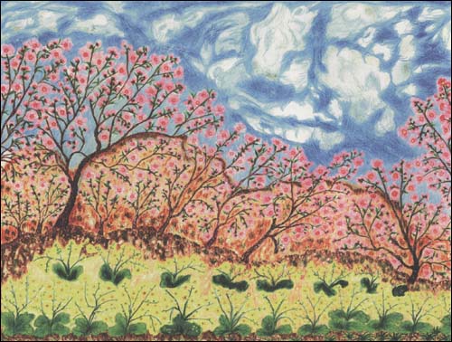 奶奶的画有质朴的震撼和心灵纯净的体现。尽管人们说她像梵高,但我认为,她内心的表现,更如法国卓越的画家卢梭,他们都是用纯真无瑕的眼睛,去观察和感受生活的真谛。