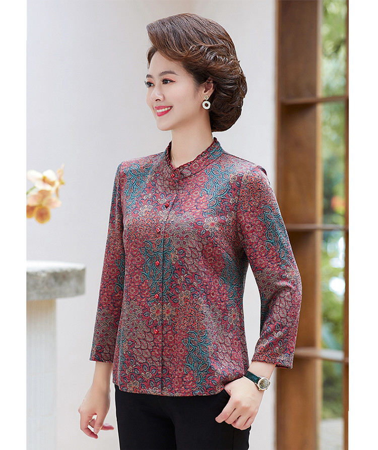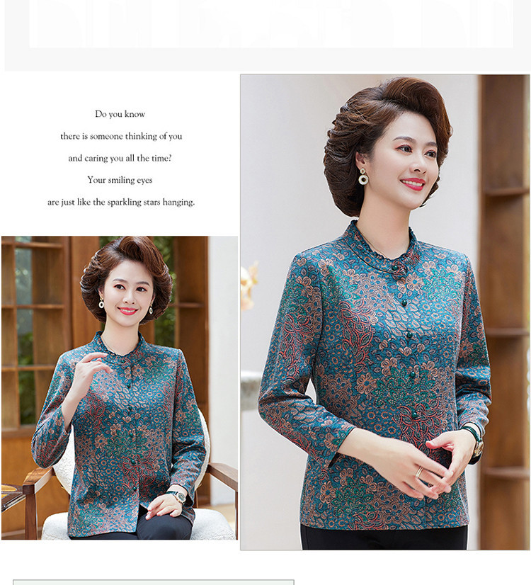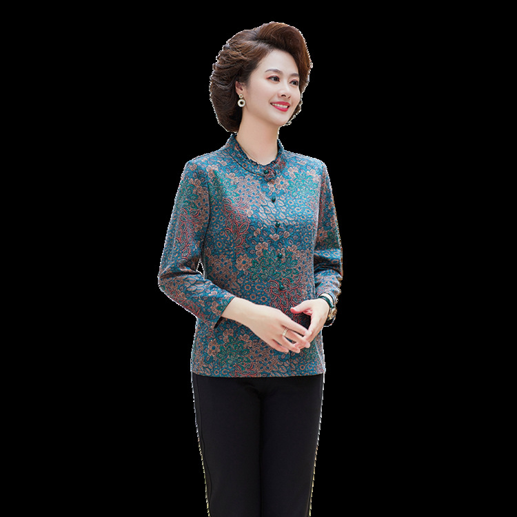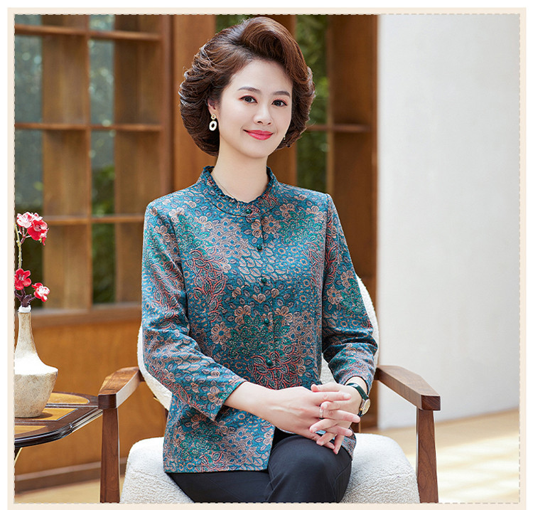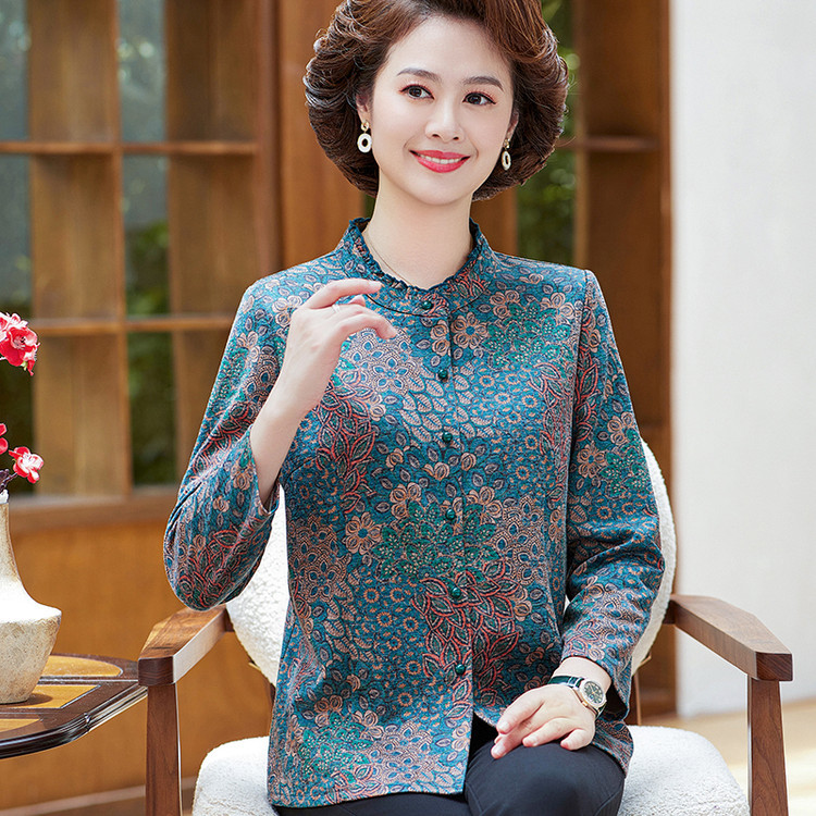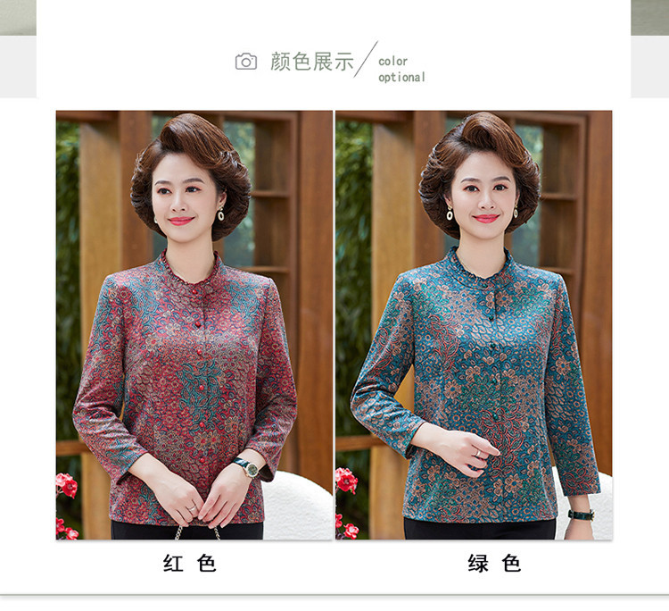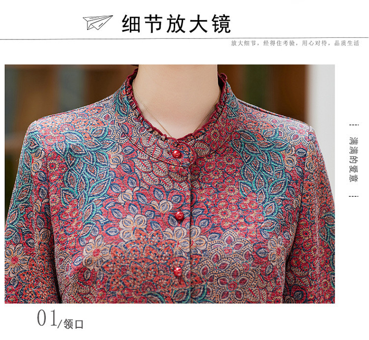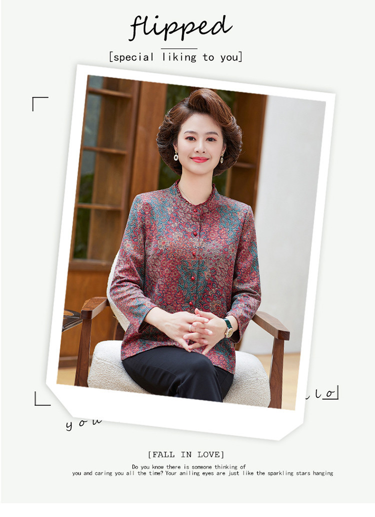 洋气款衬衫妈妈装 长袖秋款衬衫中老年女装妈妈装上衣宽松丝缎