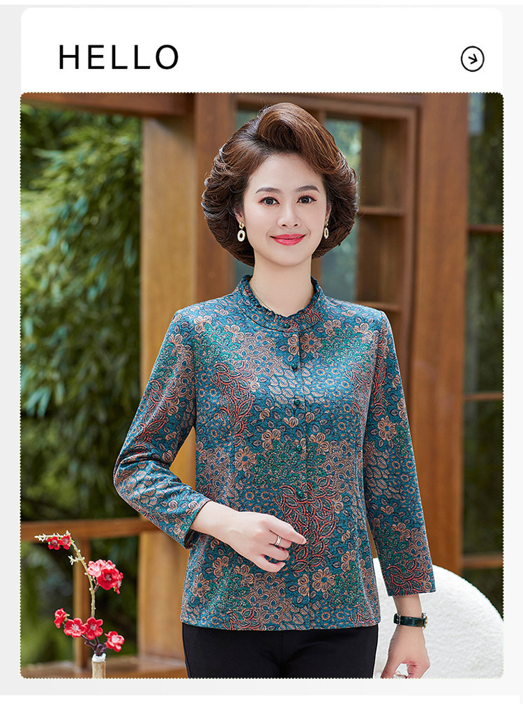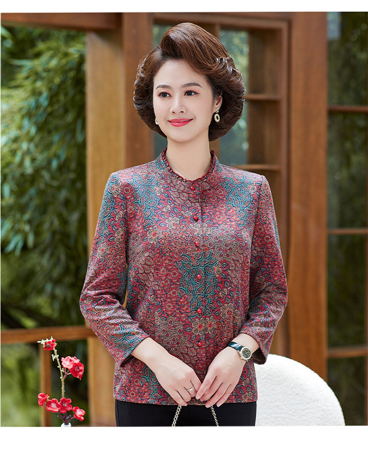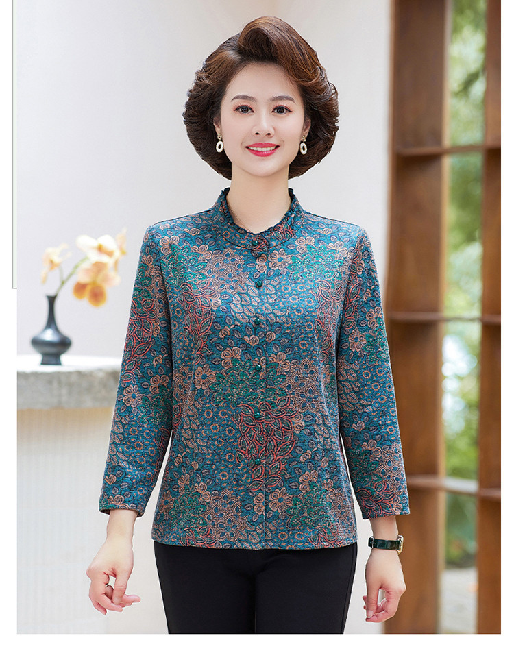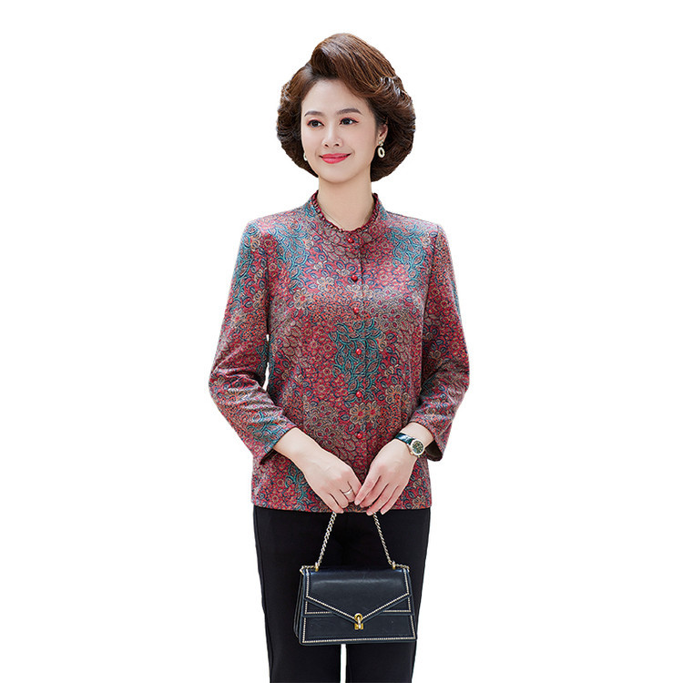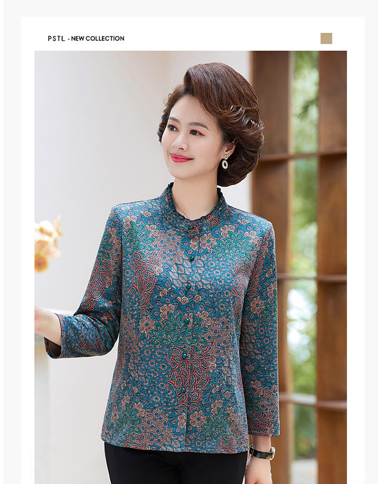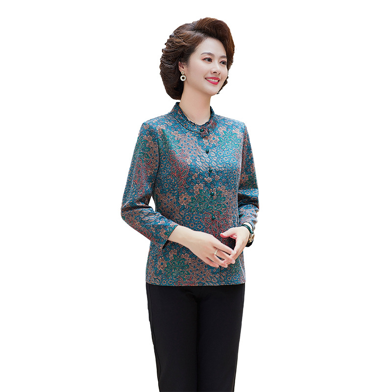 洋气款衬衫妈妈装 长袖秋款衬衫中老年女装妈妈装上衣宽松丝缎