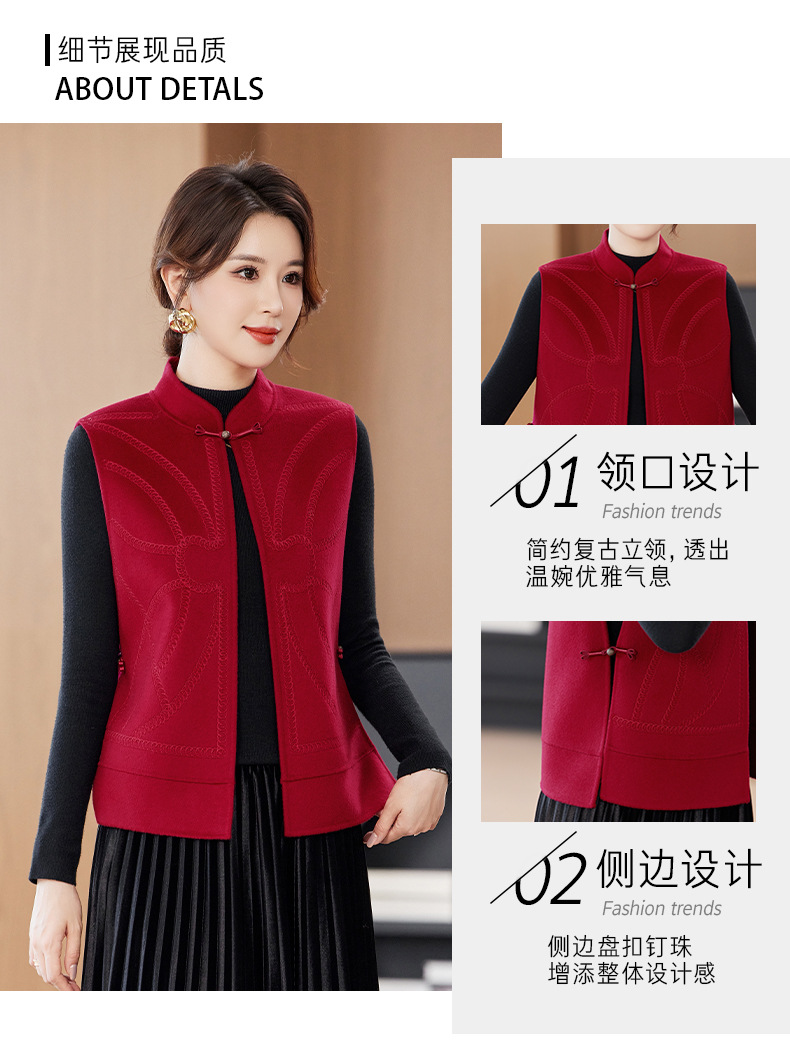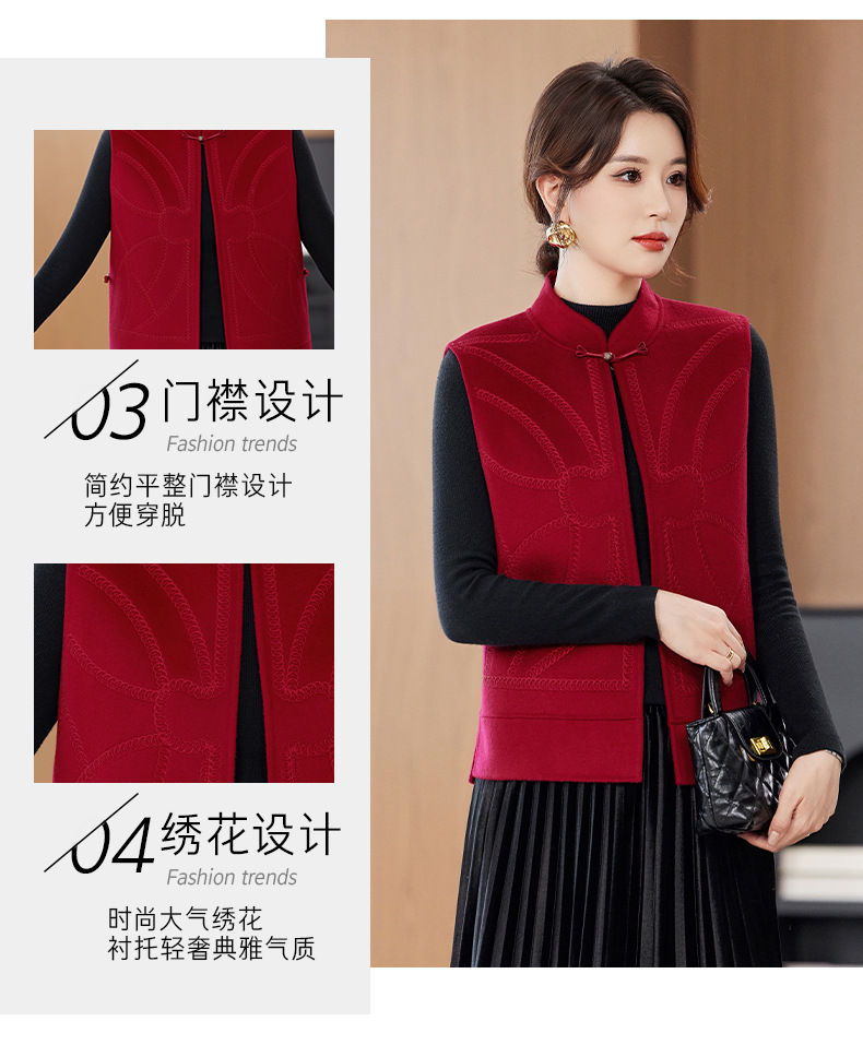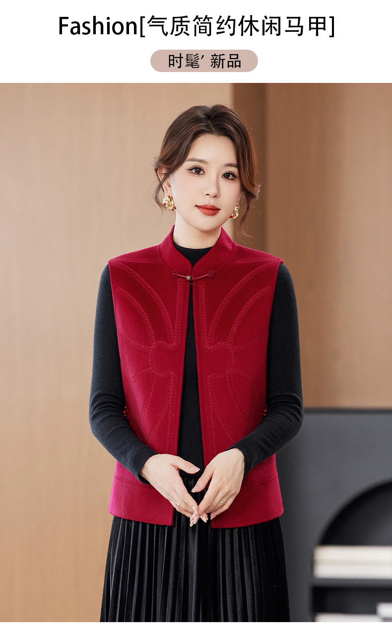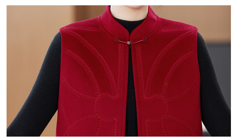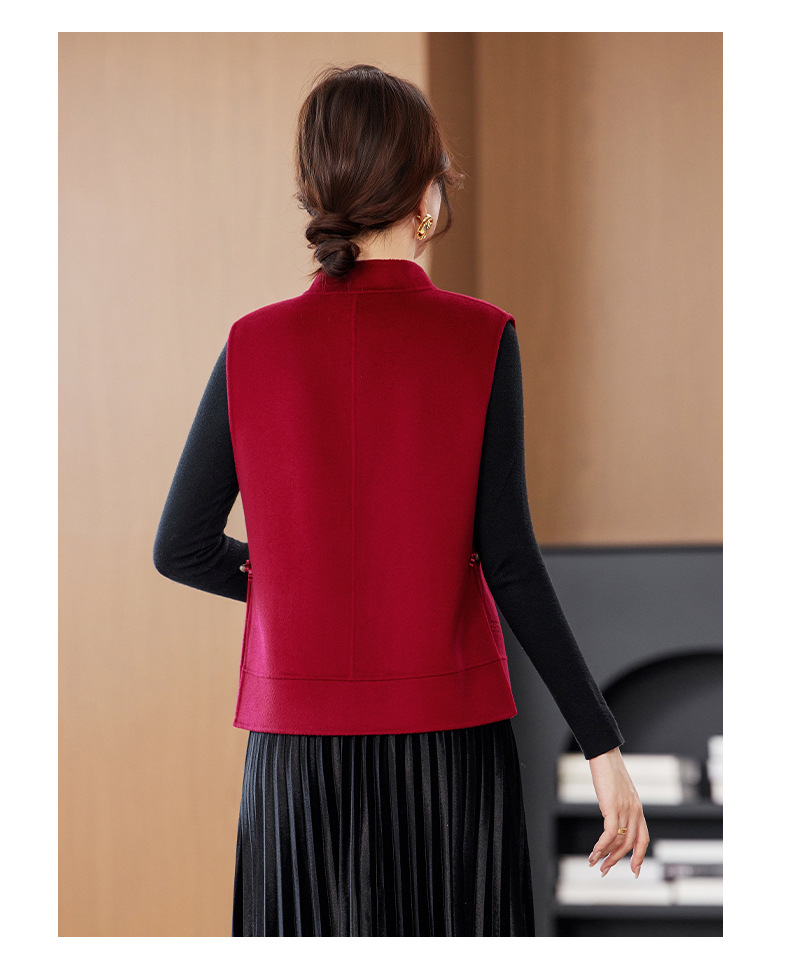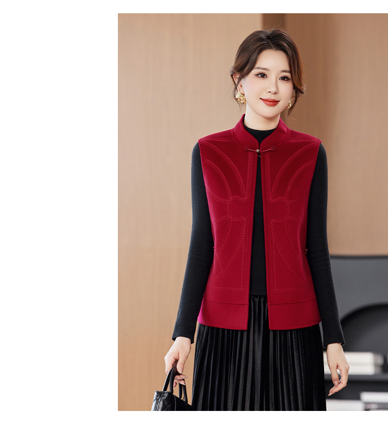 KQ2025秋新款新中式国风毛呢马夹女士复古盘扣无袖上衣妈妈羊毛外套