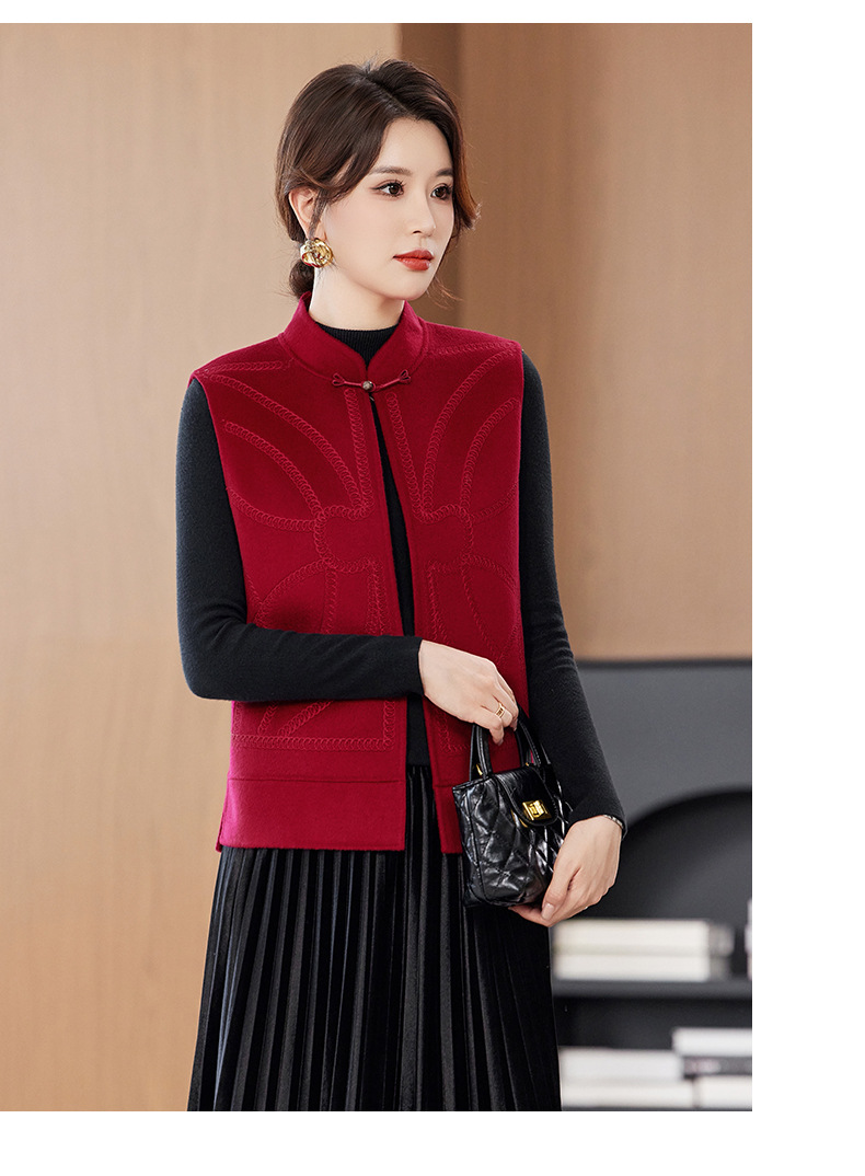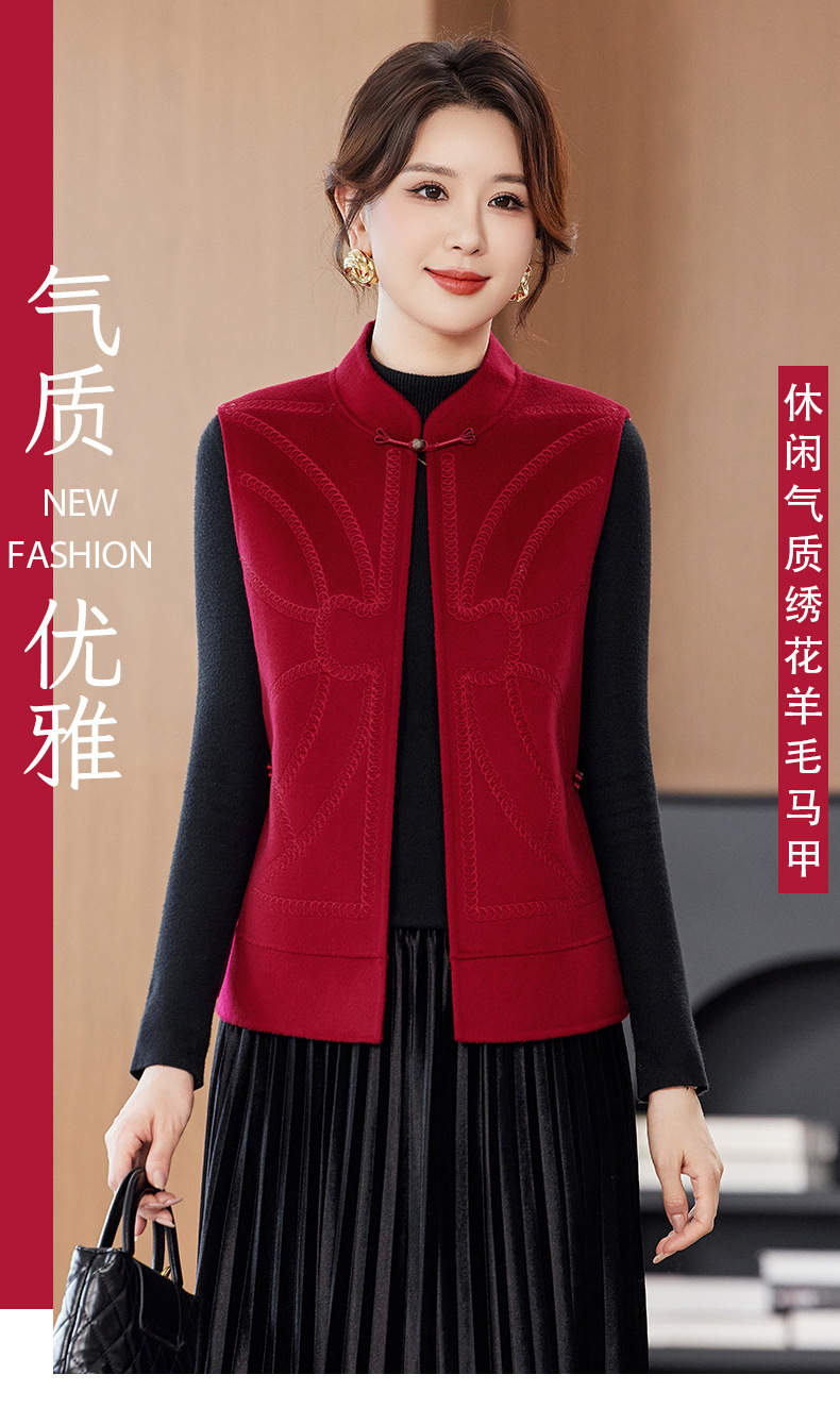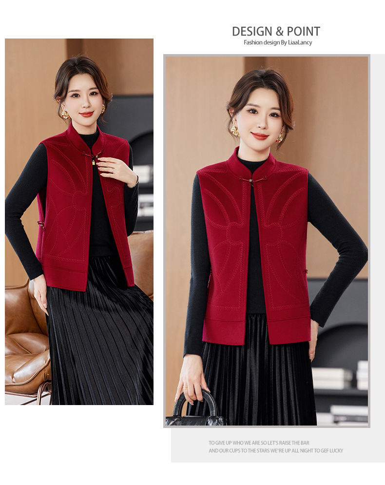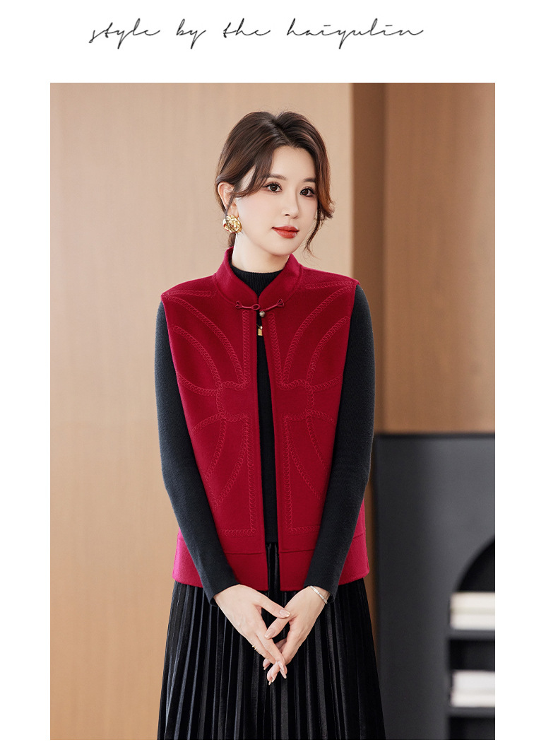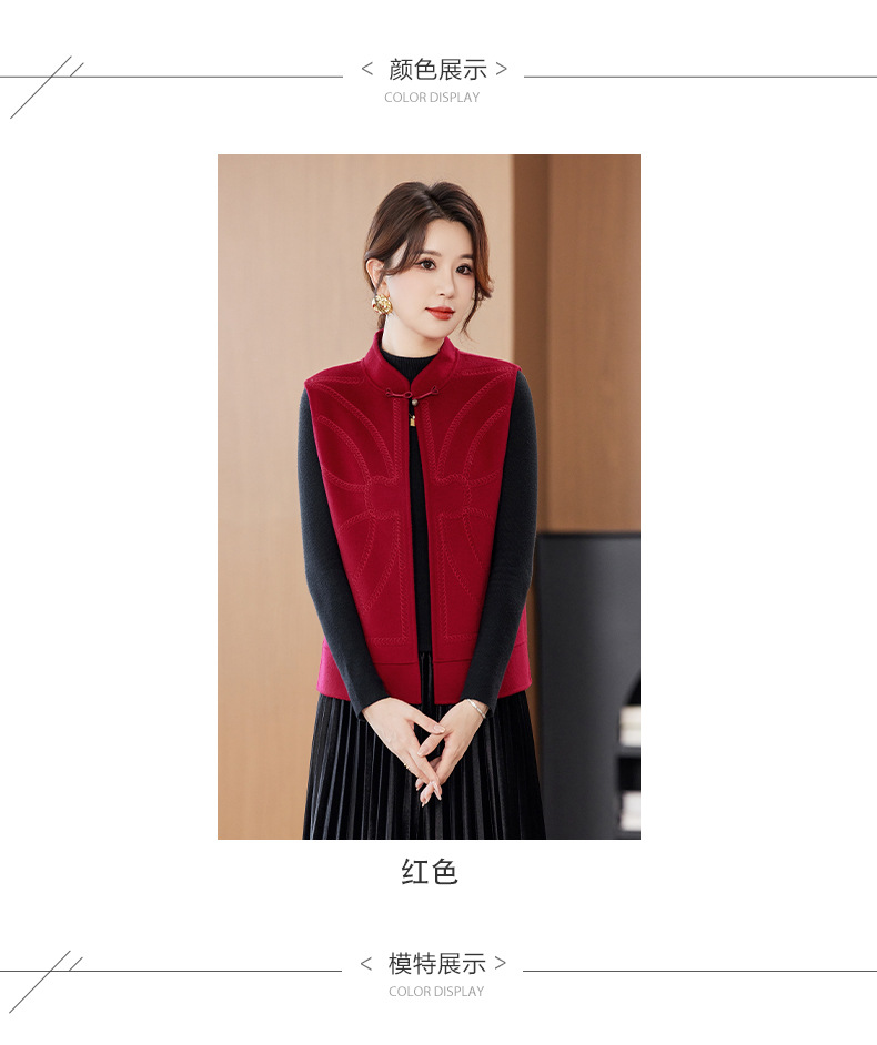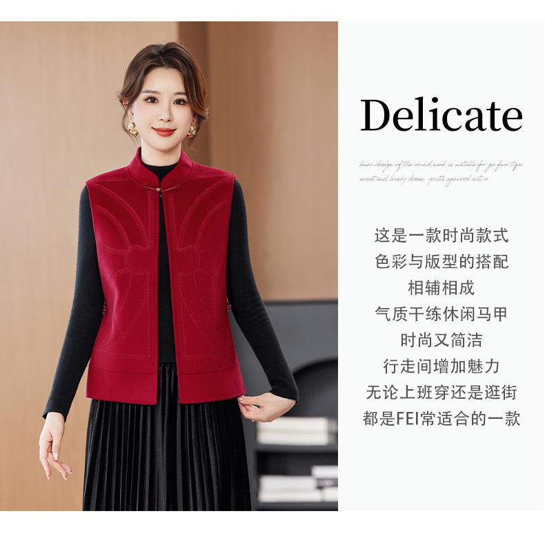 KQ2025秋新款新中式国风毛呢马夹女士复古盘扣无袖上衣妈妈羊毛外套