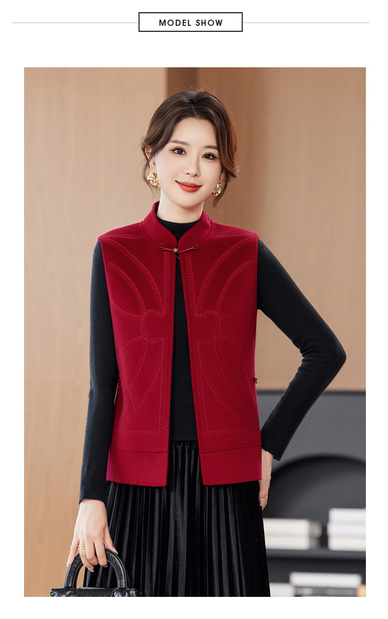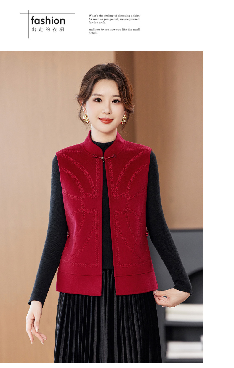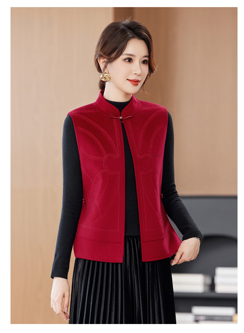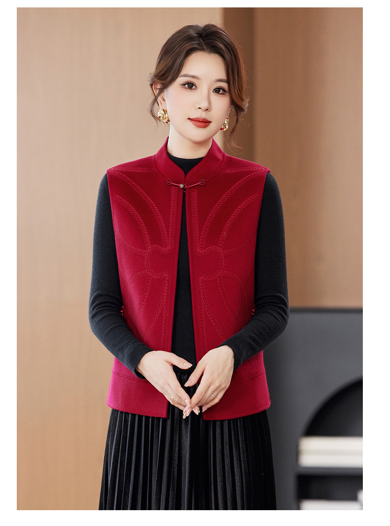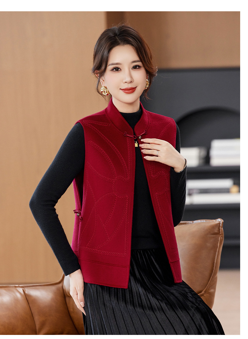KQ2025秋新款新中式国风毛呢马夹女士复古盘扣无袖上衣妈妈羊毛外套