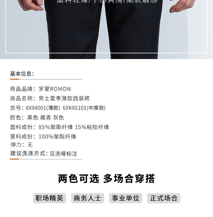【冰丝凉爽】罗蒙西裤男夏季薄款免烫抗皱商务休闲男士长裤男式西裤