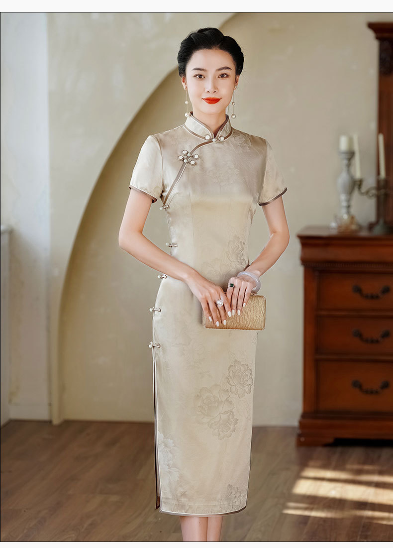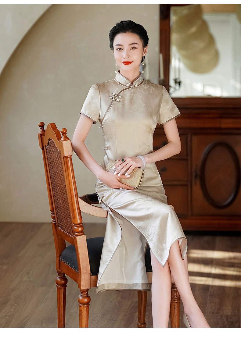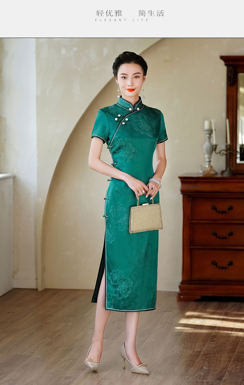 HQ-JYJ-211老上海真丝2025年新款夏季改良中国风桑蚕丝年轻款手工旗袍连衣裙