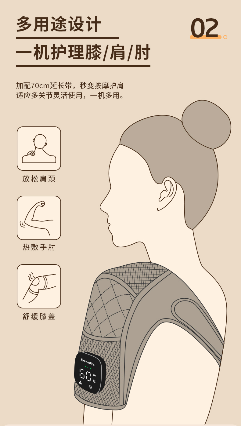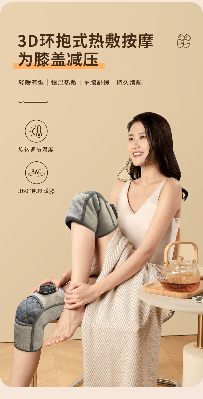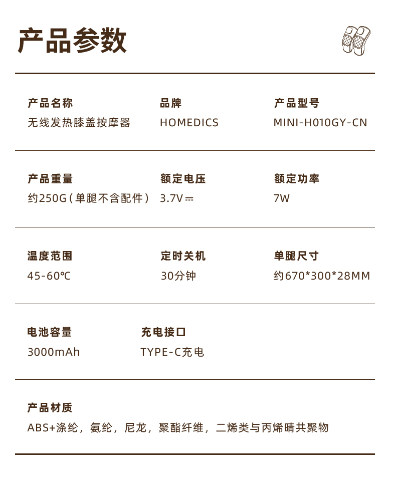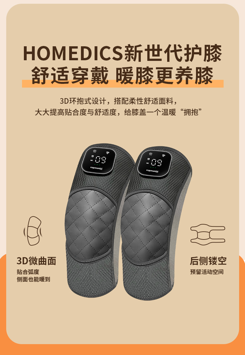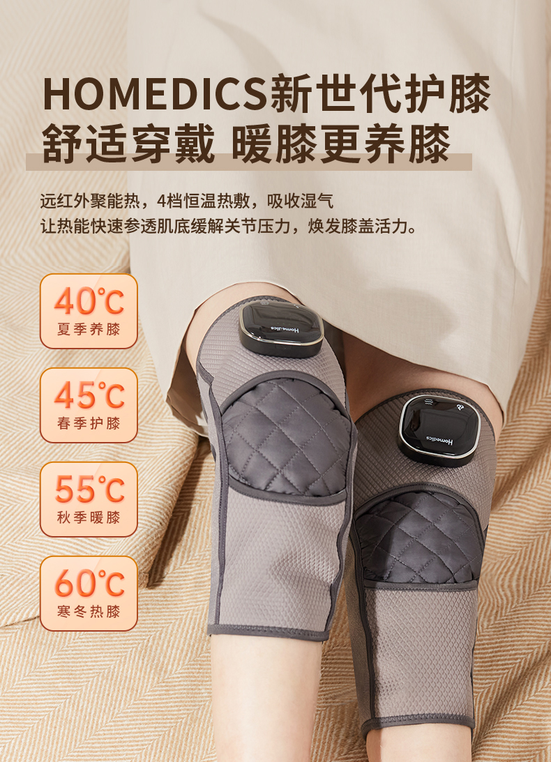 【送长辈 推荐 !】(一对/盒)HOMEDICS无线发热膝盖按摩器 四档热敷+五档震动,满足不同需求 加配70cm延长带,肩、肘、膝均可用