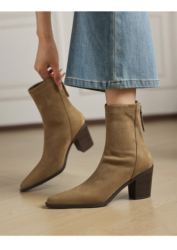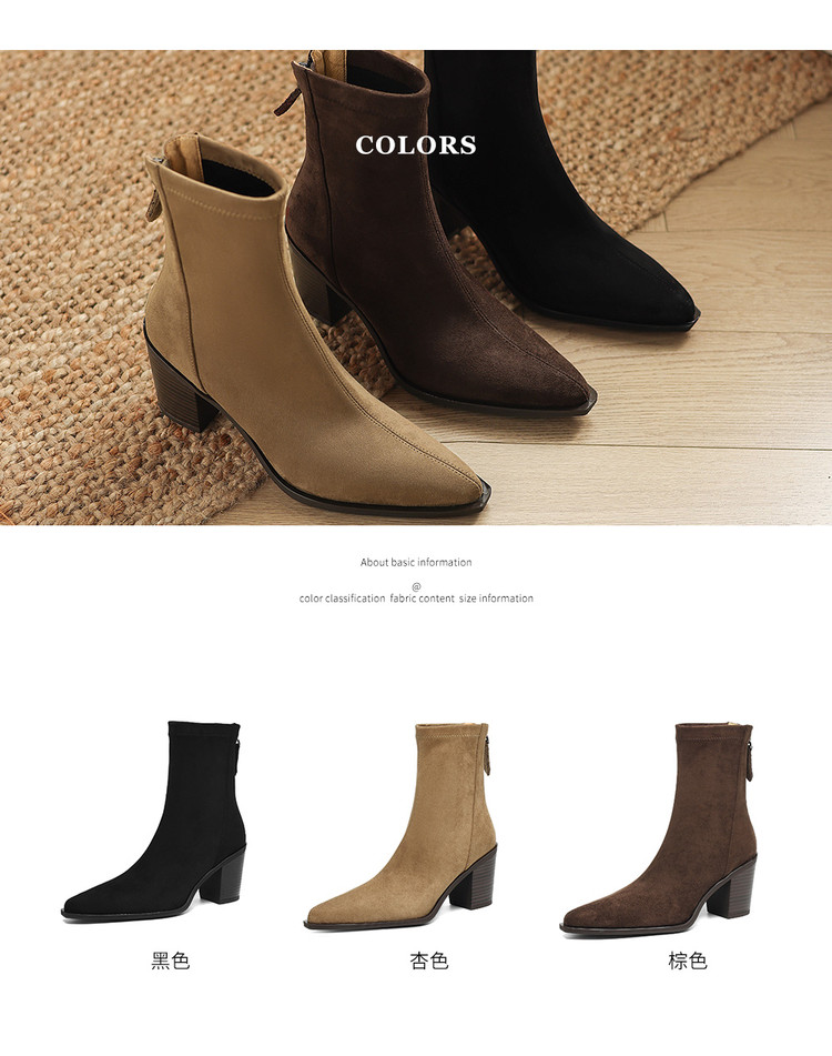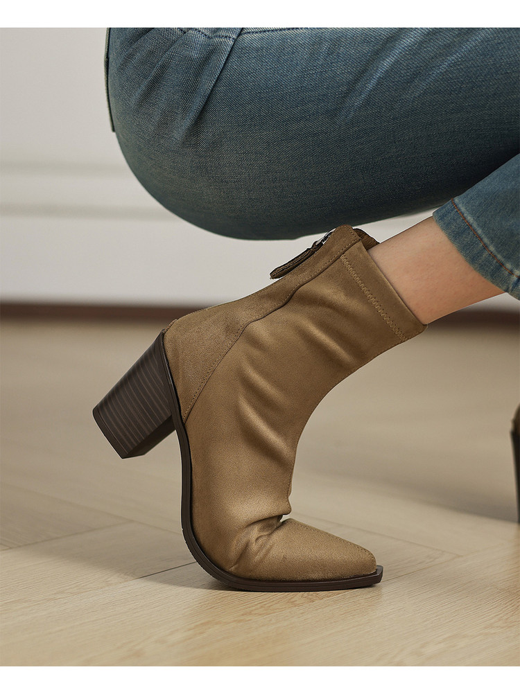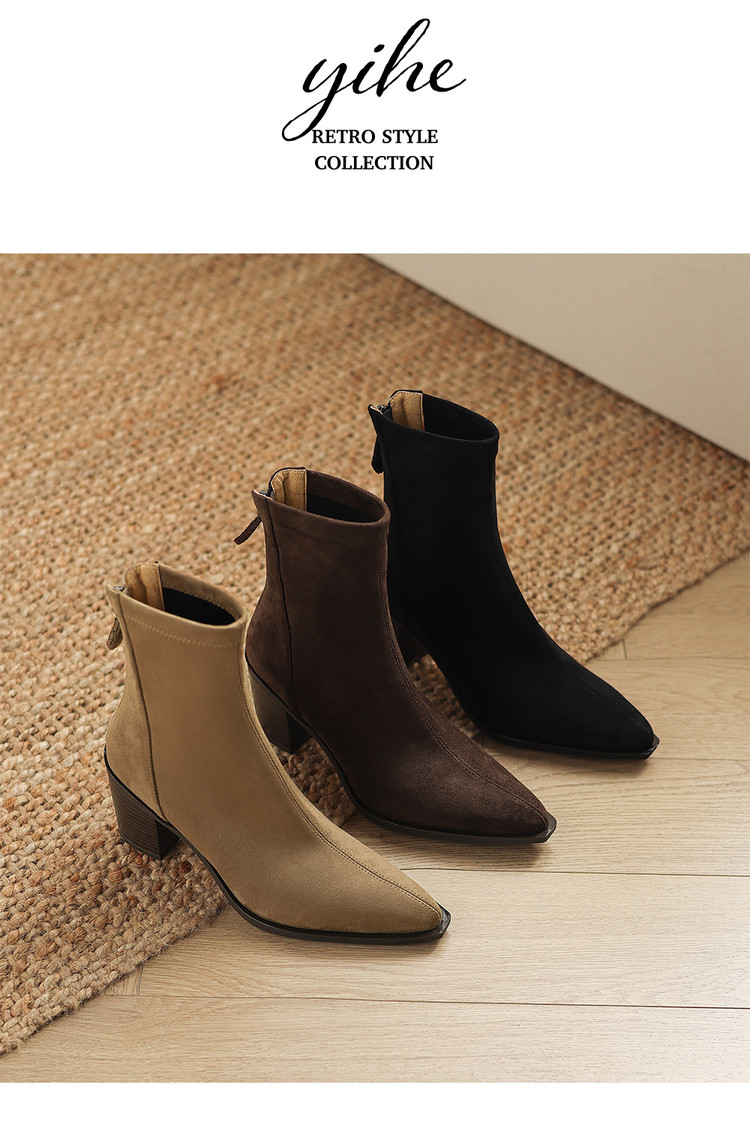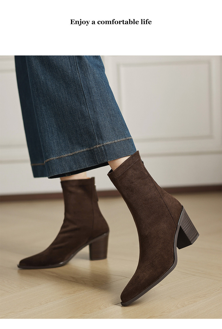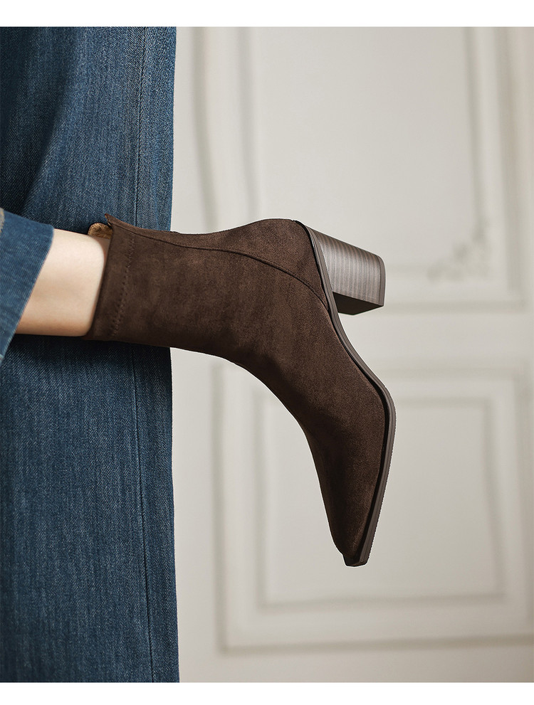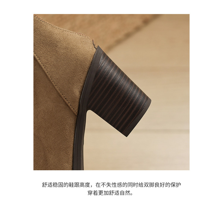 【预售5天】静音底瘦瘦靴秋冬复古舒适粗高跟鞋女气质短靴单靴绒面瘦瘦靴裸靴HB&1280