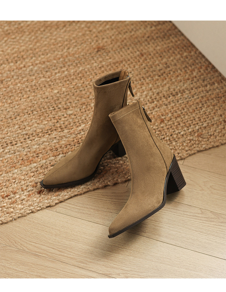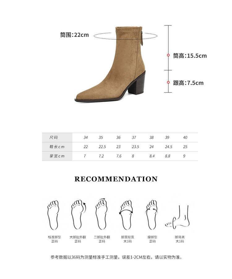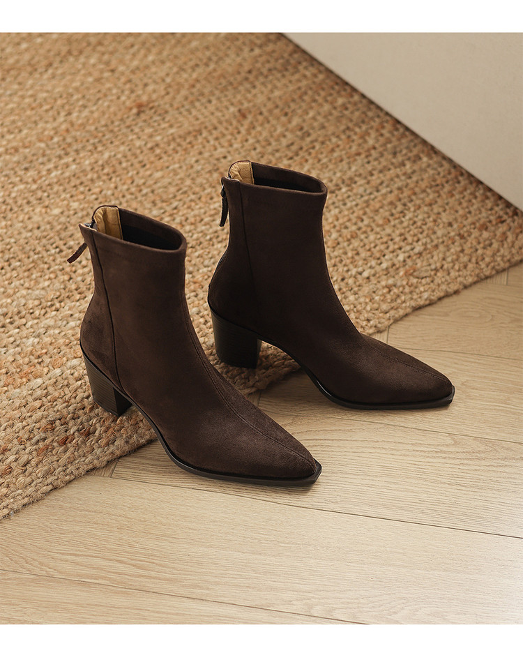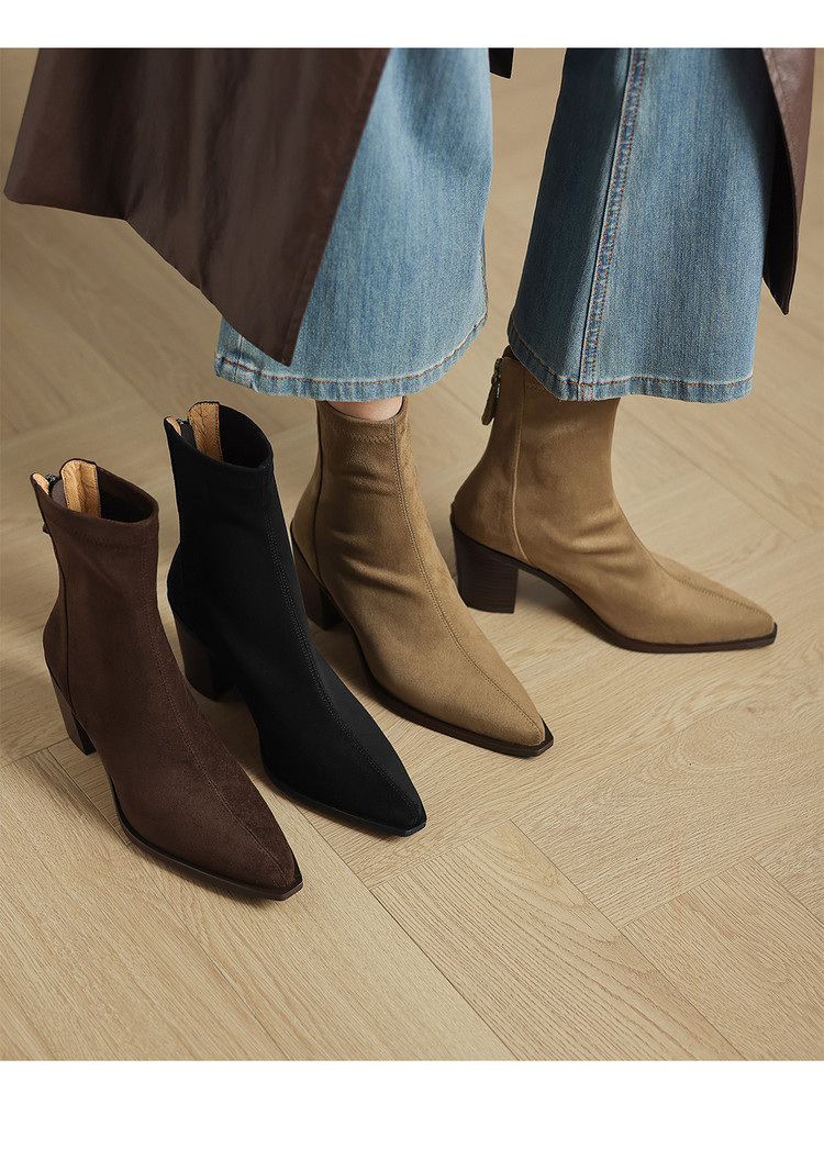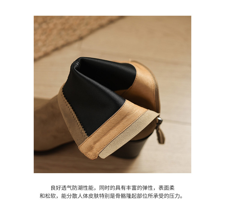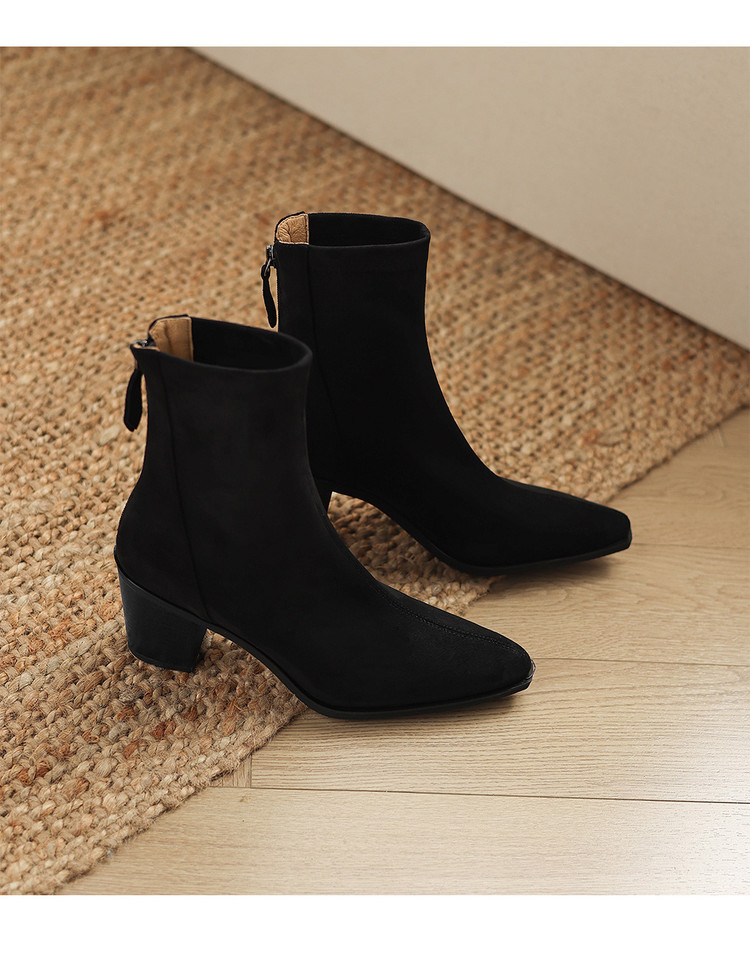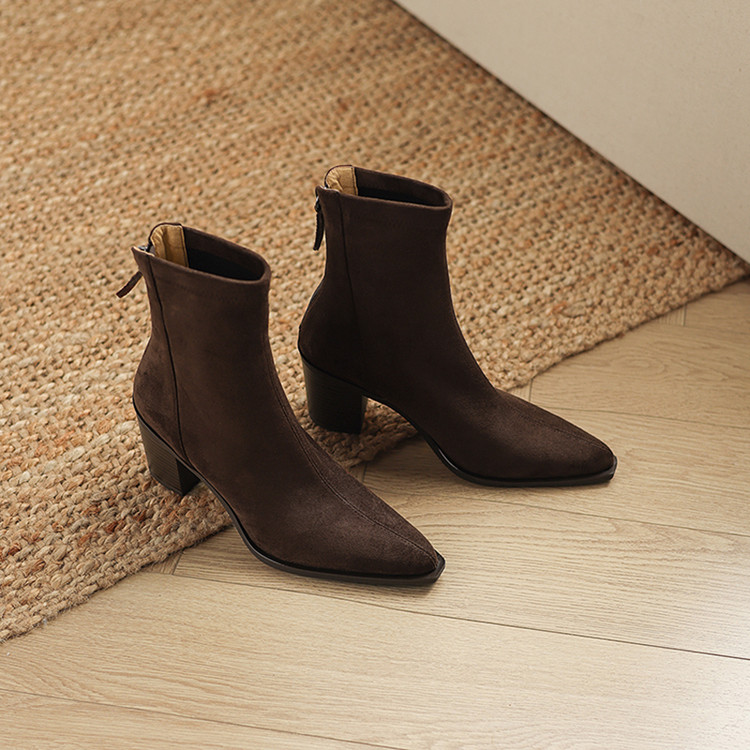 【预售5天】静音底瘦瘦靴秋冬复古舒适粗高跟鞋女气质短靴单靴绒面瘦瘦靴裸靴HB&1280