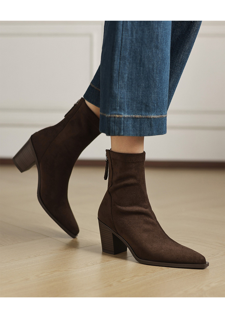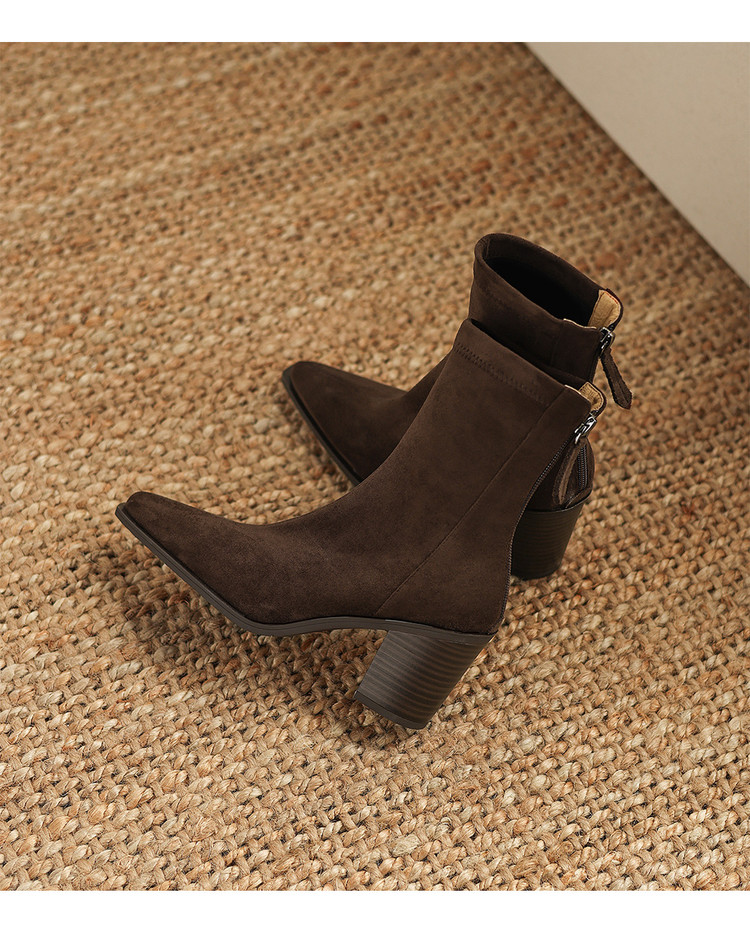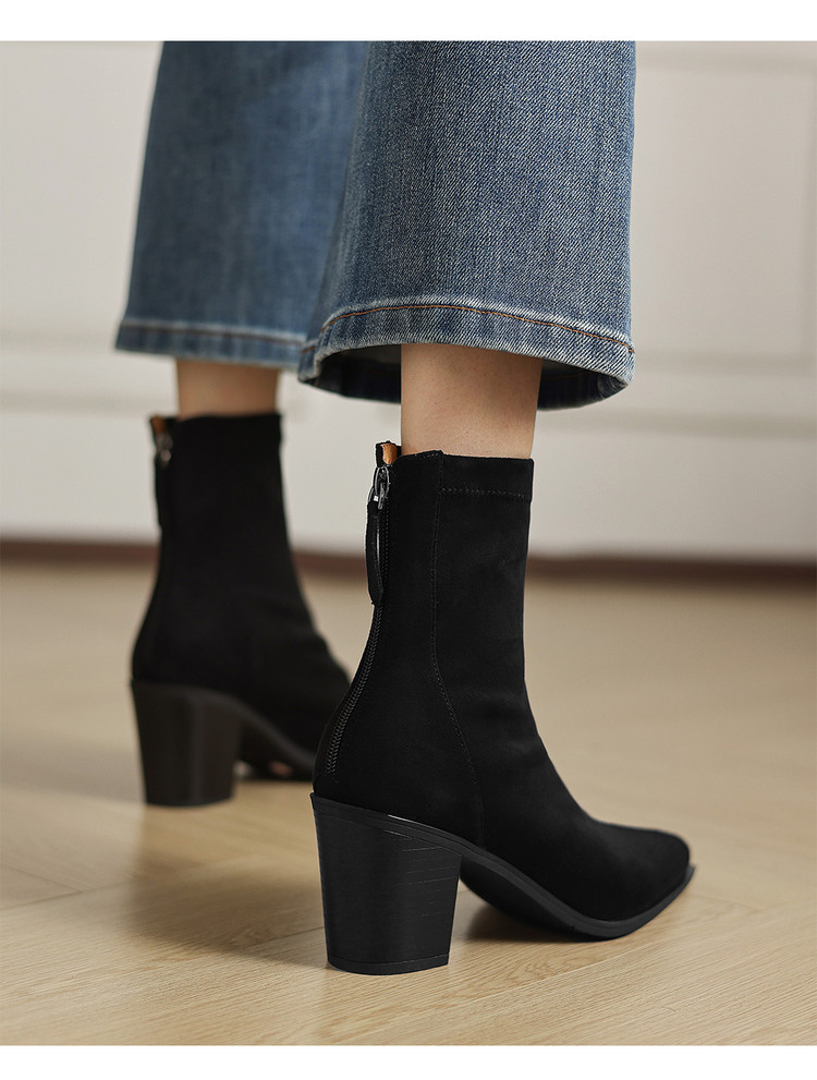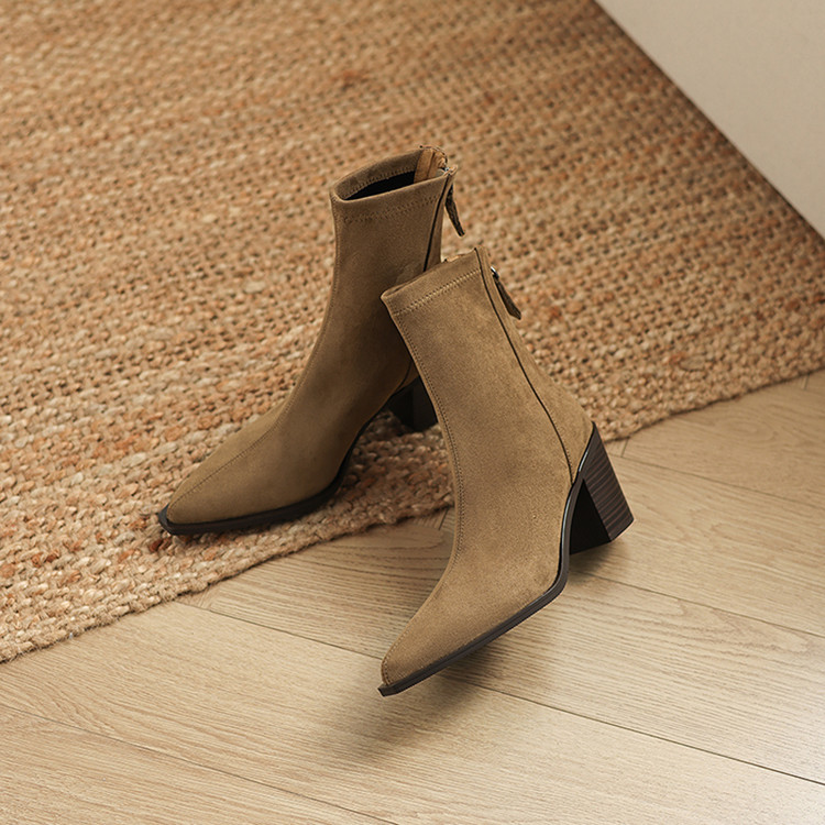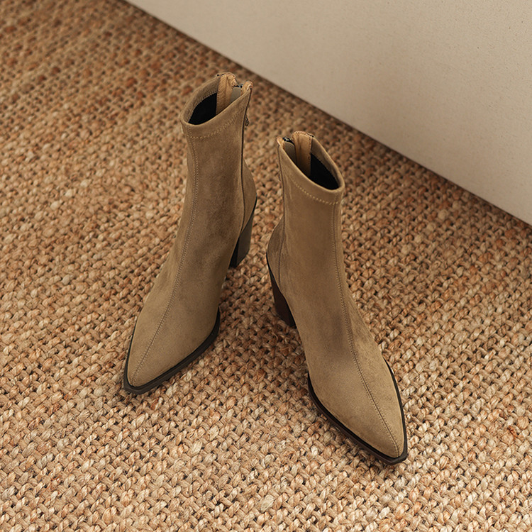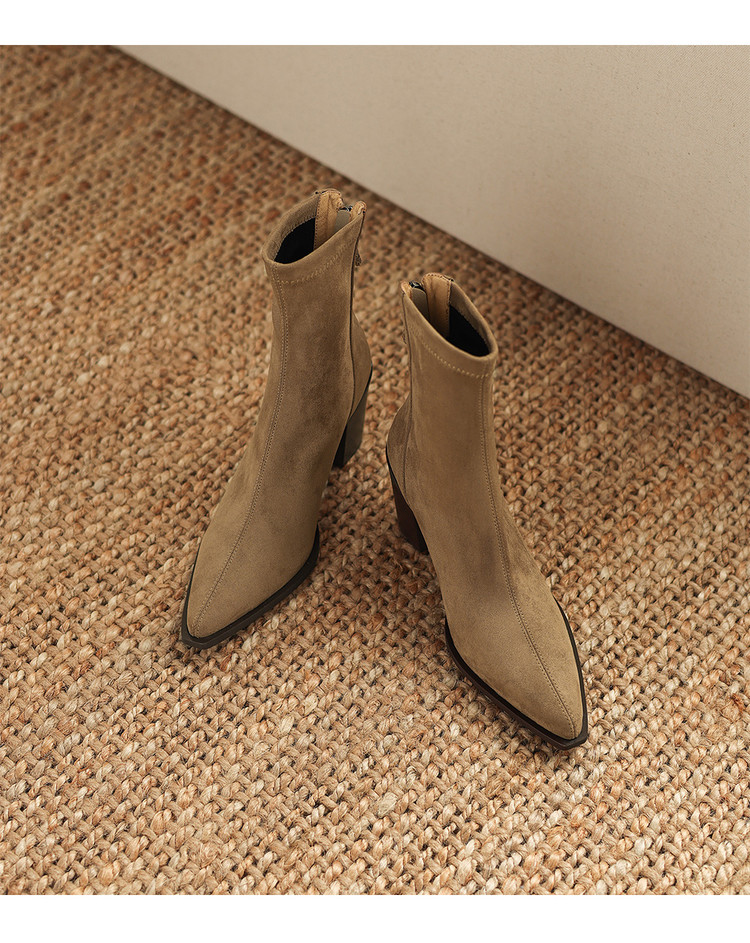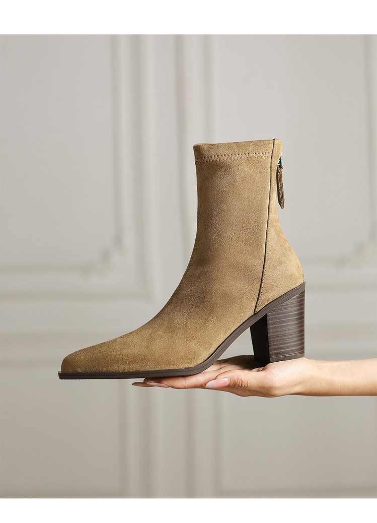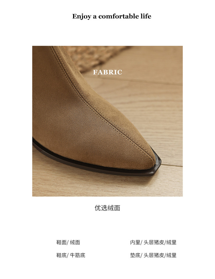 【预售5天】静音底瘦瘦靴秋冬复古舒适粗高跟鞋女气质短靴单靴绒面瘦瘦靴裸靴HB&1280