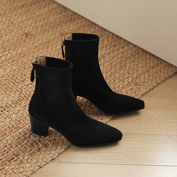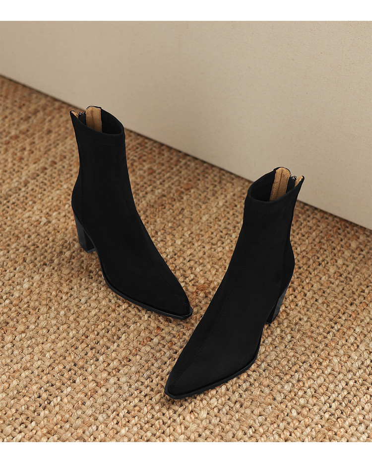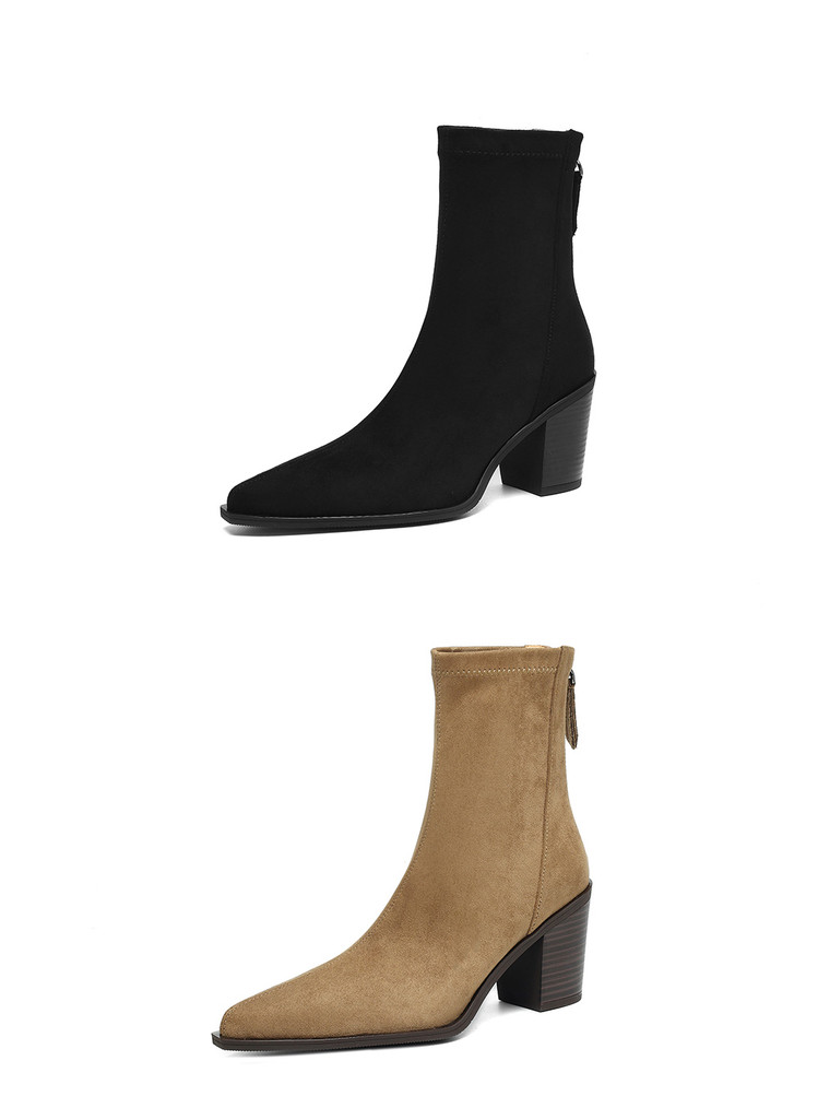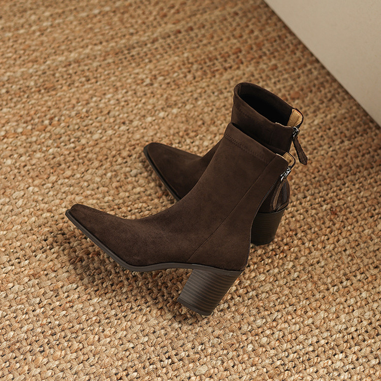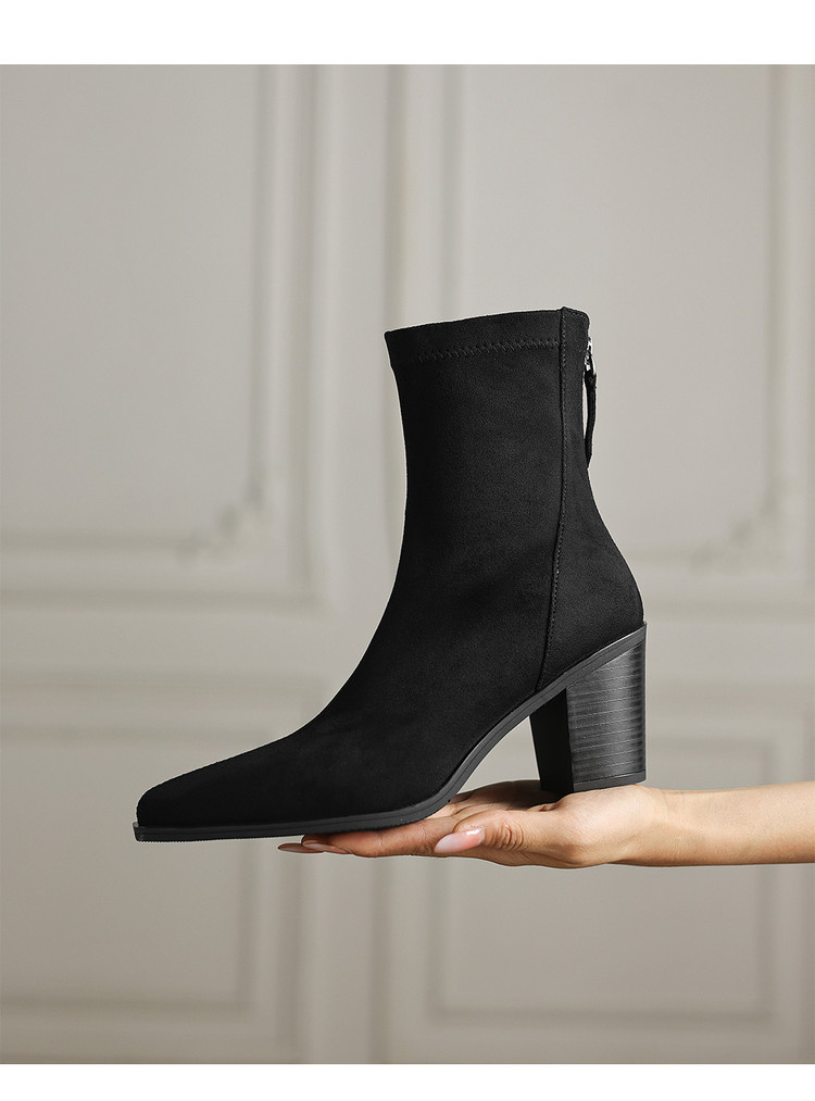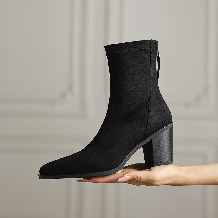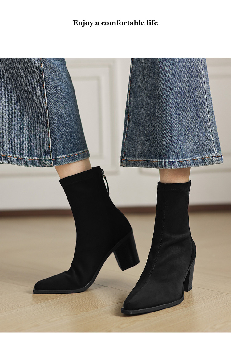 【预售5天】静音底瘦瘦靴秋冬复古舒适粗高跟鞋女气质短靴单靴绒面瘦瘦靴裸靴HB&1280
