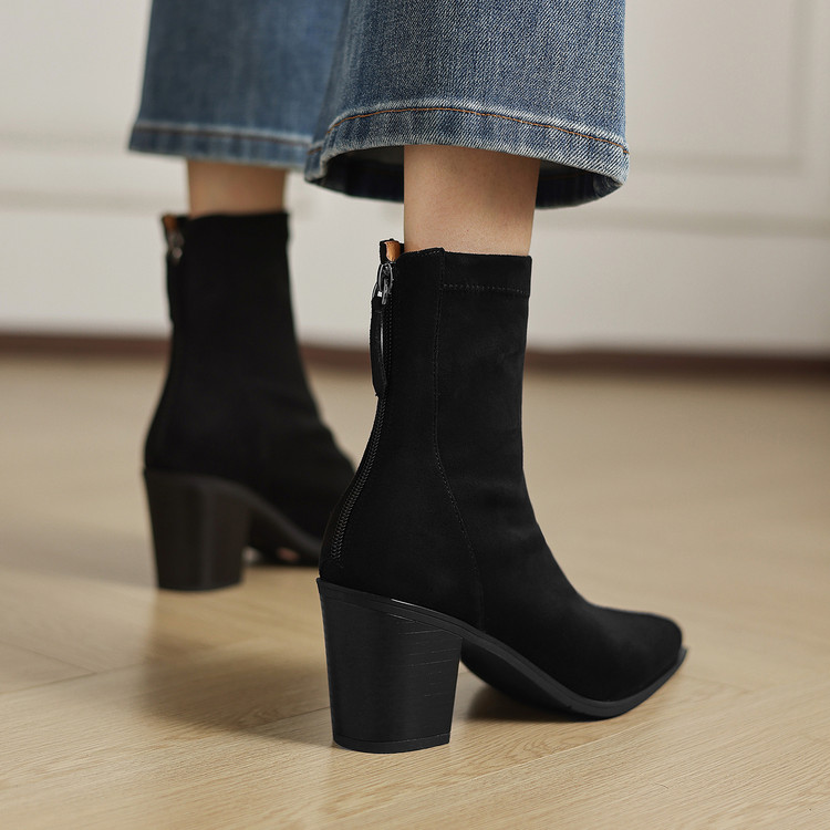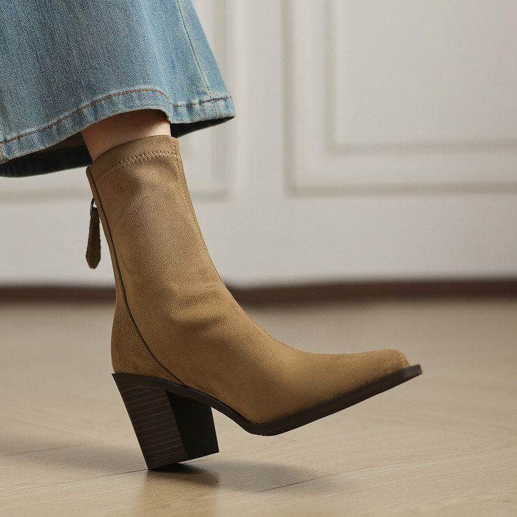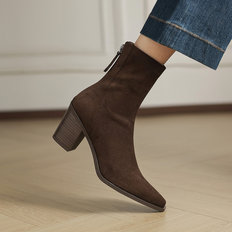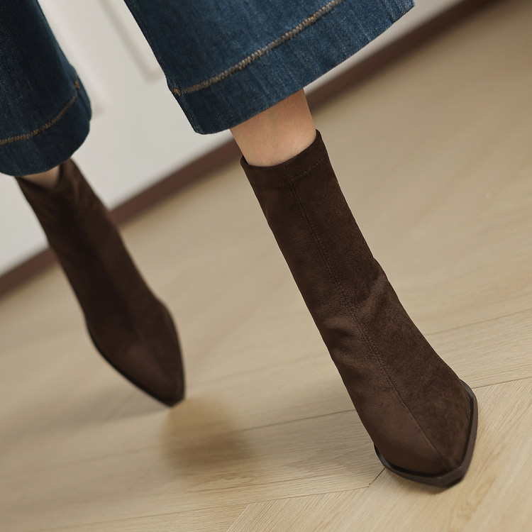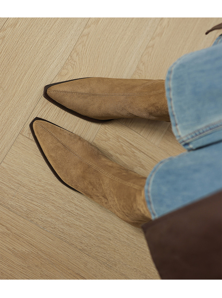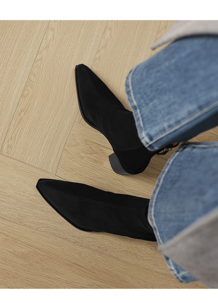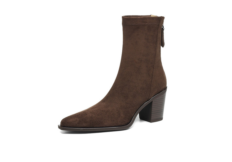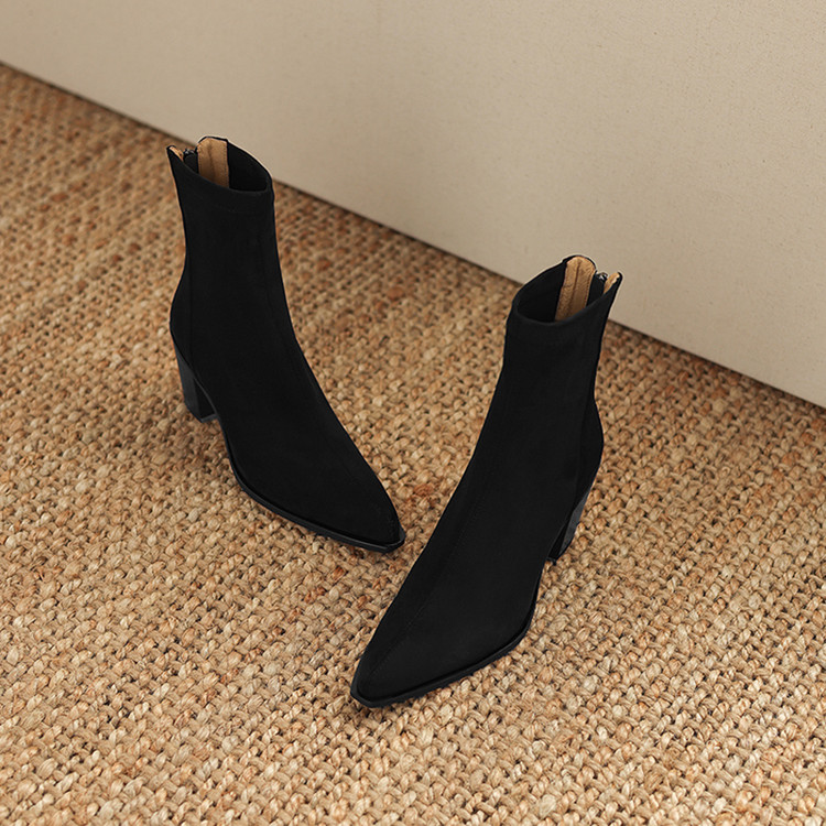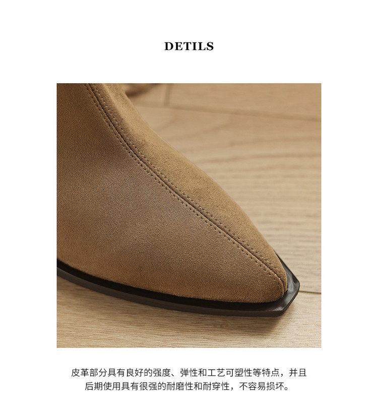 【预售5天】静音底瘦瘦靴秋冬复古舒适粗高跟鞋女气质短靴单靴绒面瘦瘦靴裸靴HB&1280
