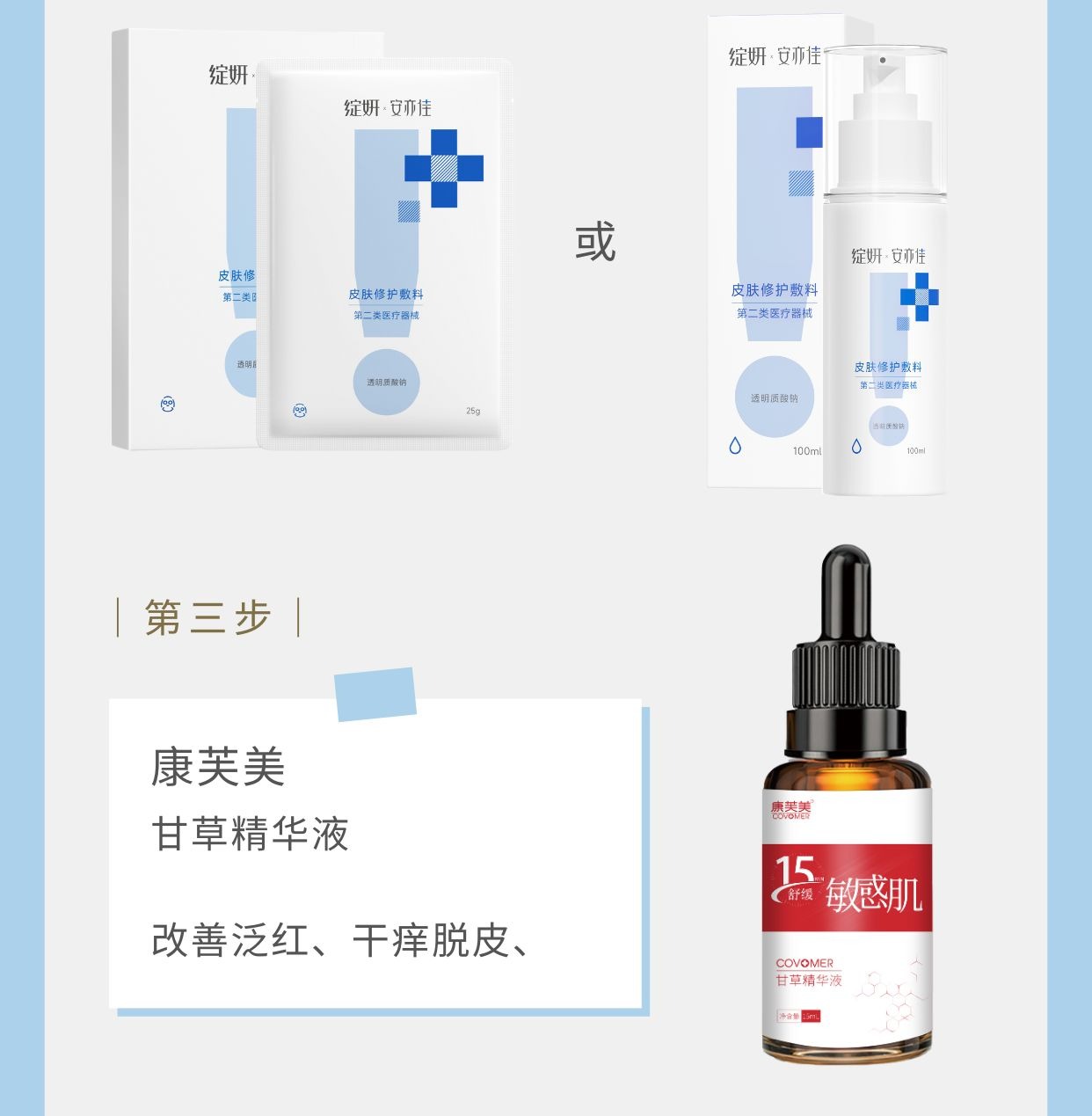 敏感肌、退红组合:绽妍面膜+喷雾+保湿水100ml+保湿乳50g+洁面泡沫+康芙美甘草精华液