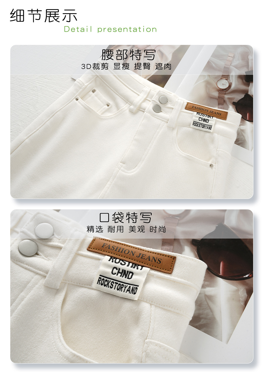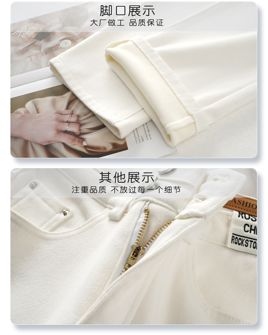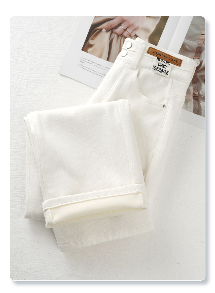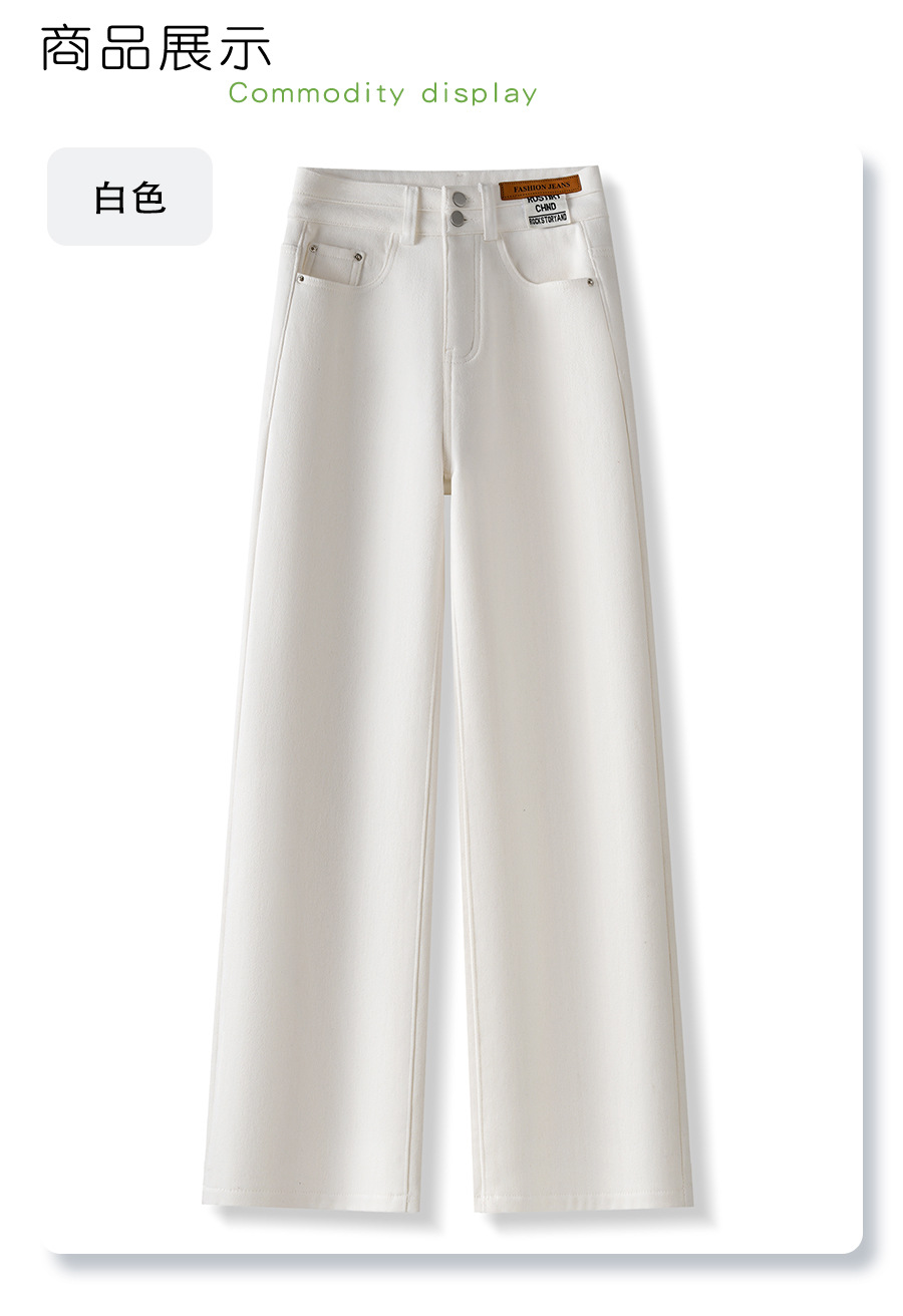 丁摩 白色加绒牛仔裤女秋冬款新款宽松阔腿裤冬季加厚高腰直筒裤子5ZF-705
