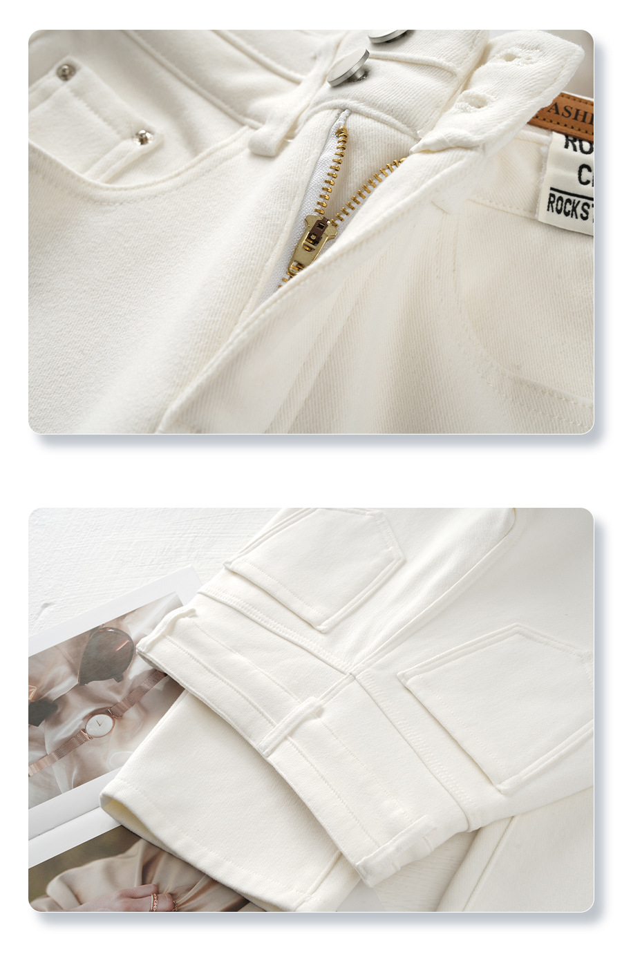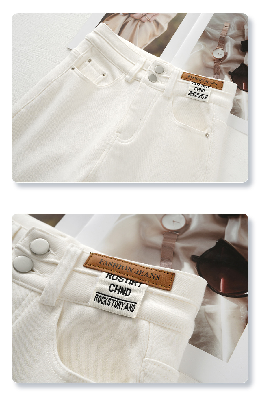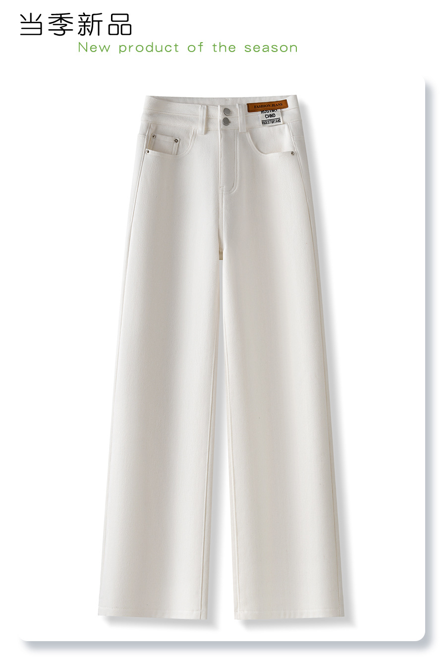 丁摩 白色加绒牛仔裤女秋冬款新款宽松阔腿裤冬季加厚高腰直筒裤子5ZF-705