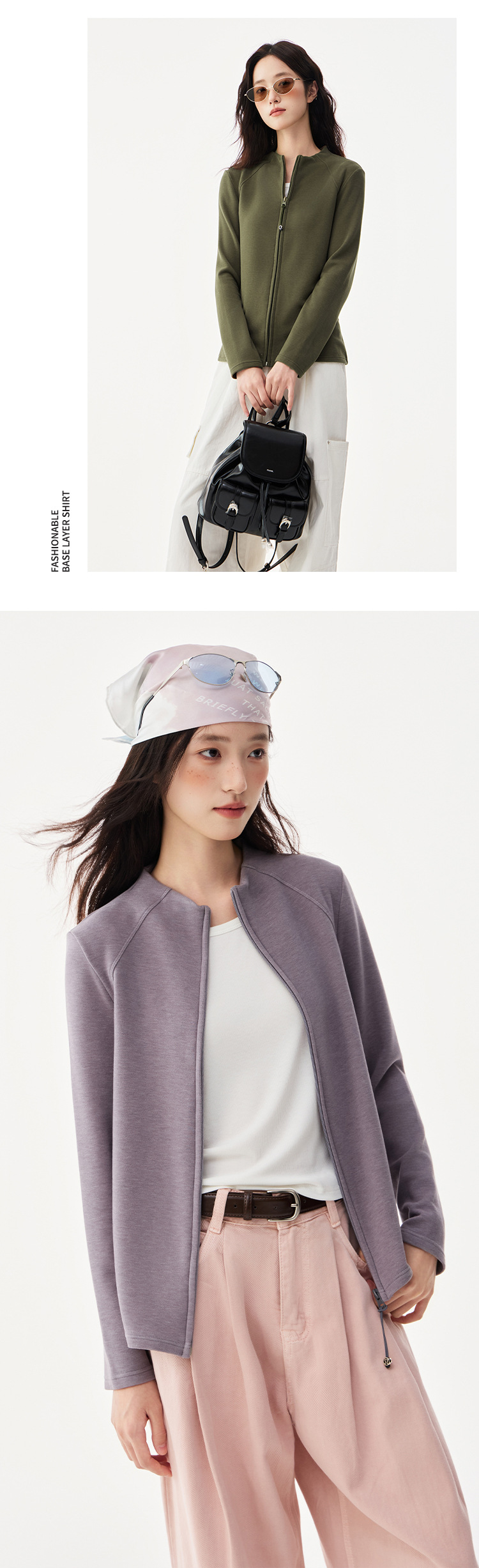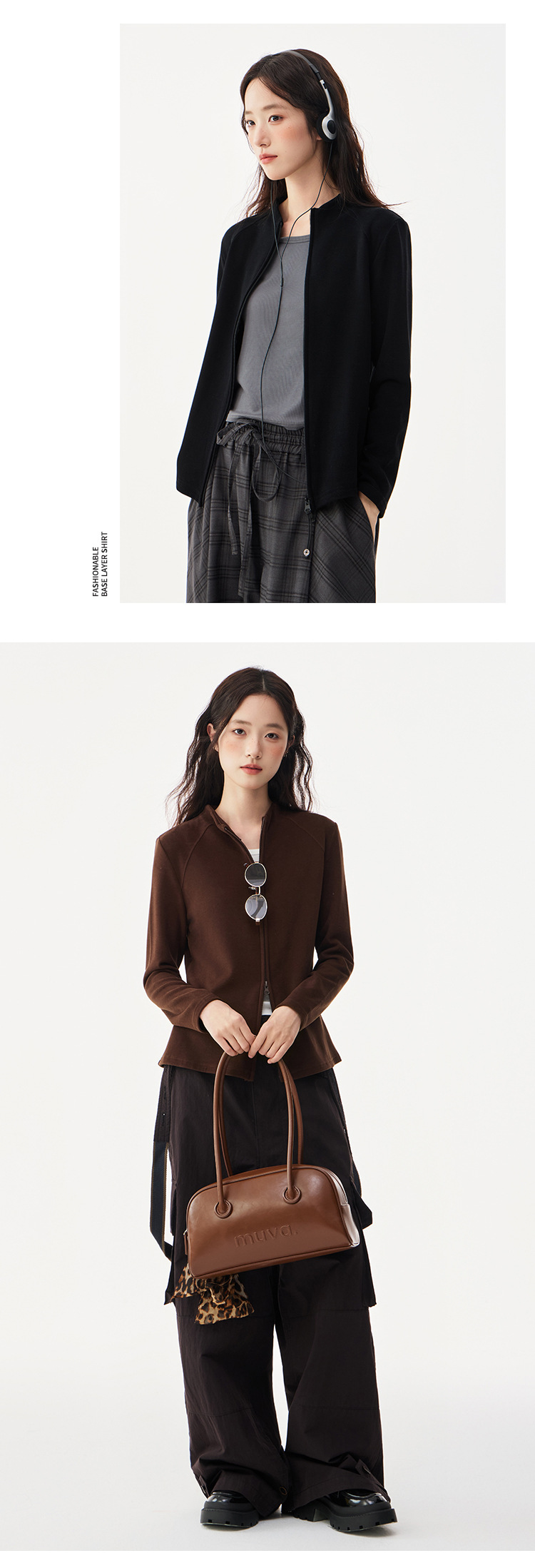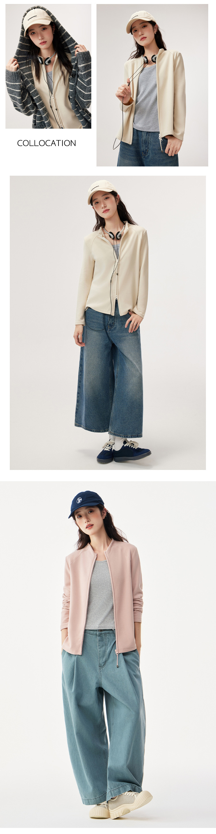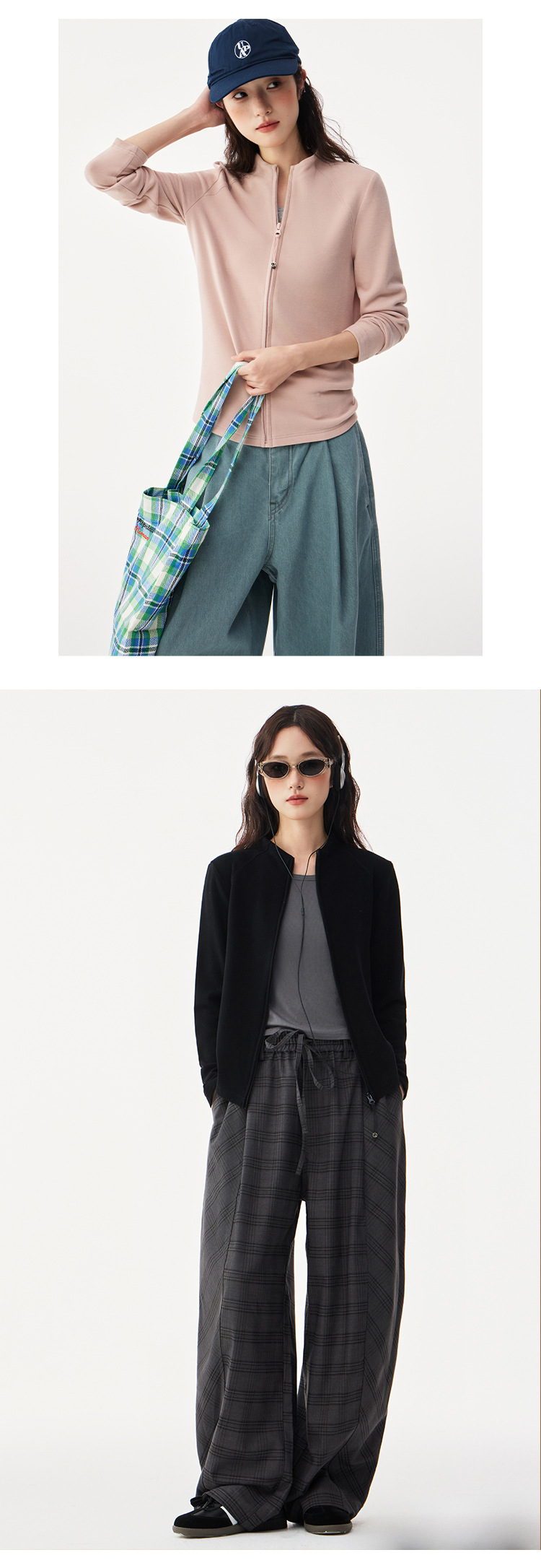 丁摩 复古休闲外套秋季新款蚕丝羊毛通勤简拉链正肩上衣5ZF-786