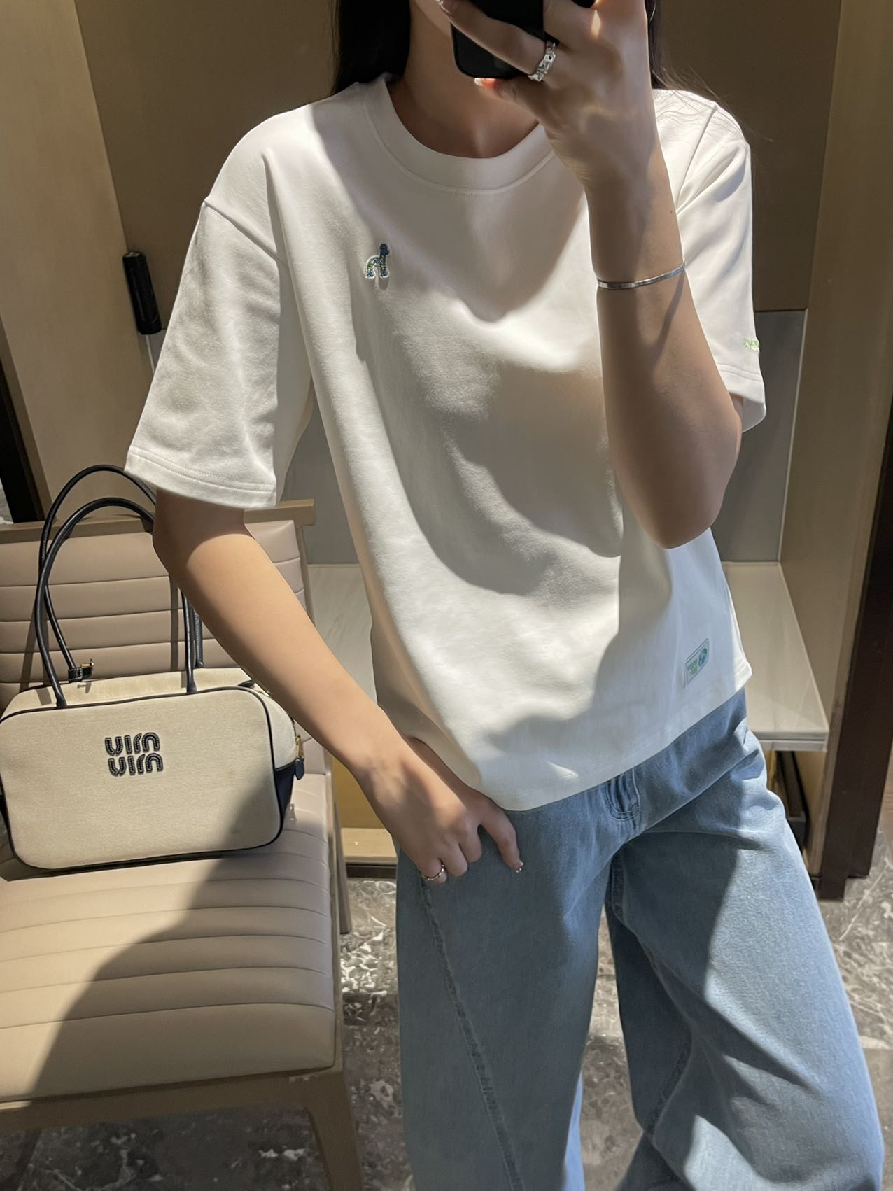 胸前和袖子刺绣工艺是这款T恤的一大亮点,
