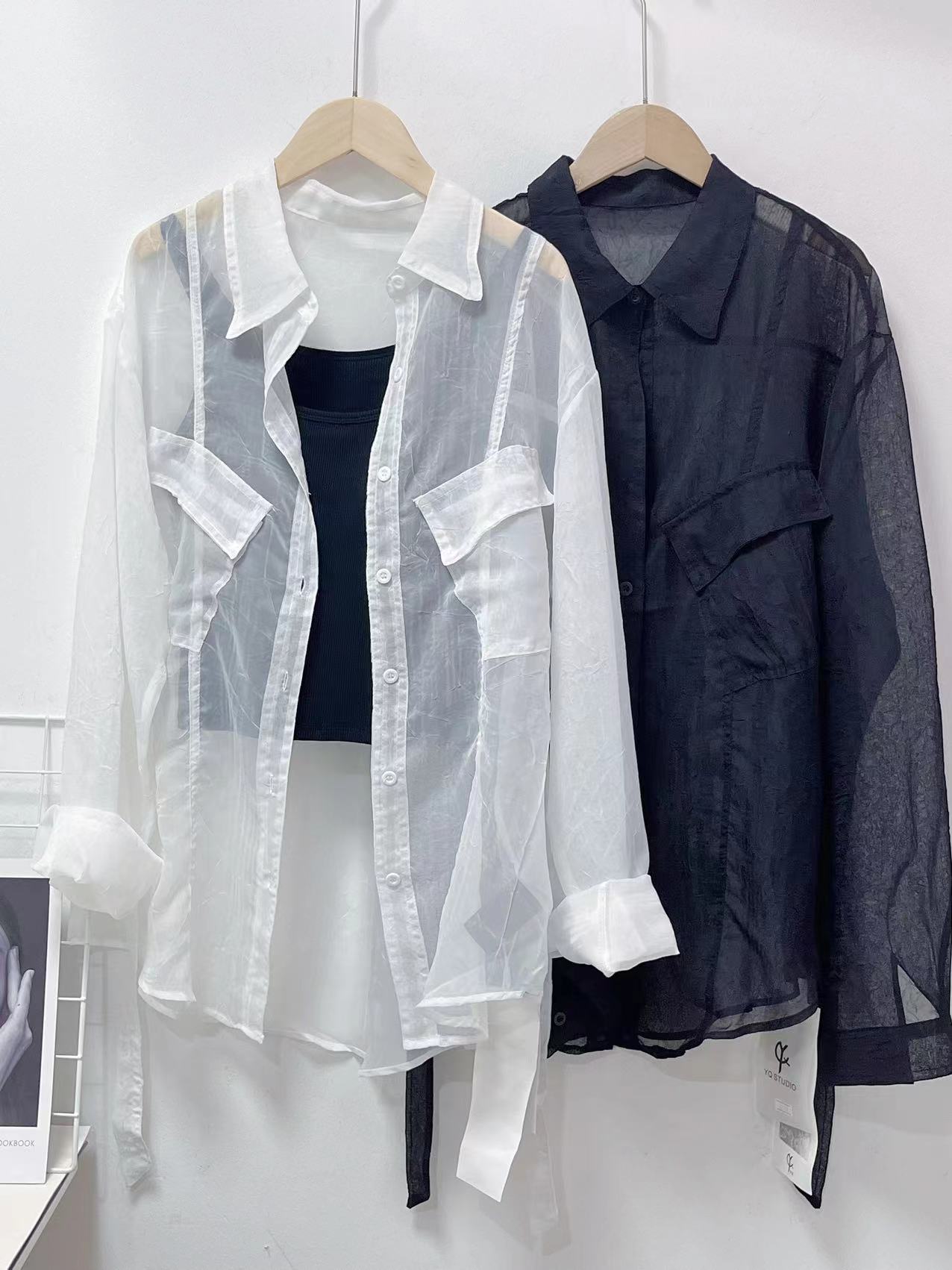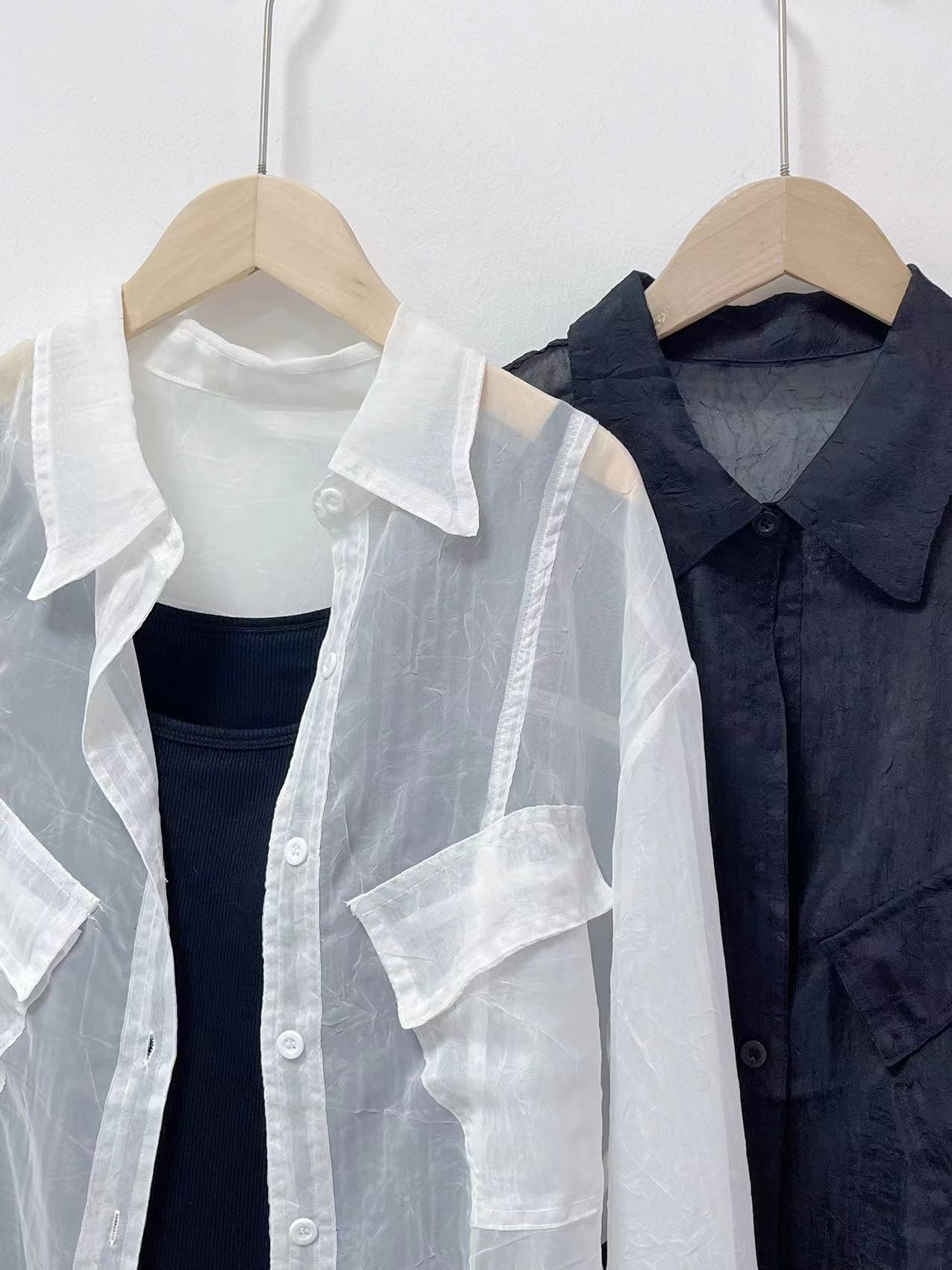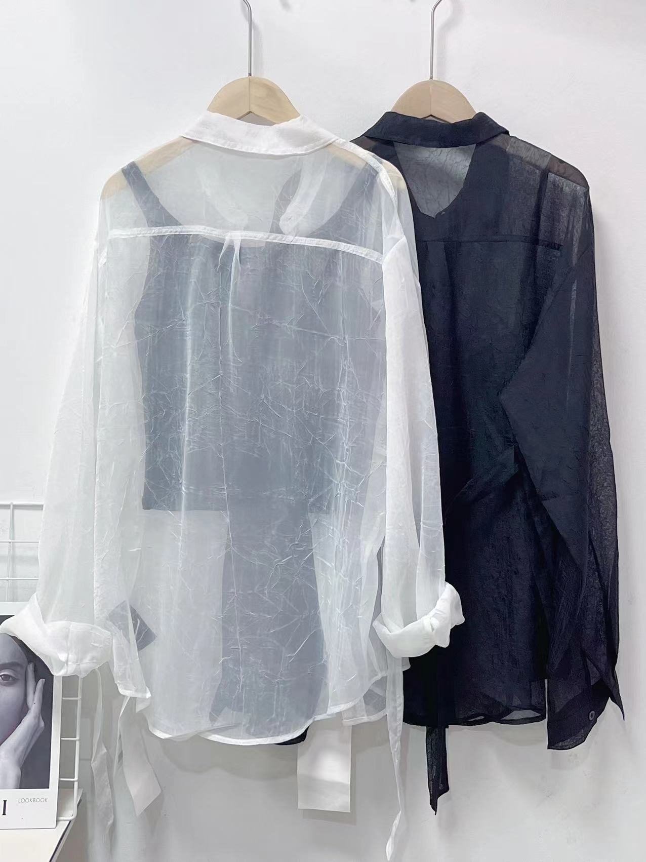 中秋大力度清仓~(不支持退)(NO退,能接受拍)原创设计师-多穿款 22159冰裂纹薄纱上衣衬衫外套(单件)-喜出